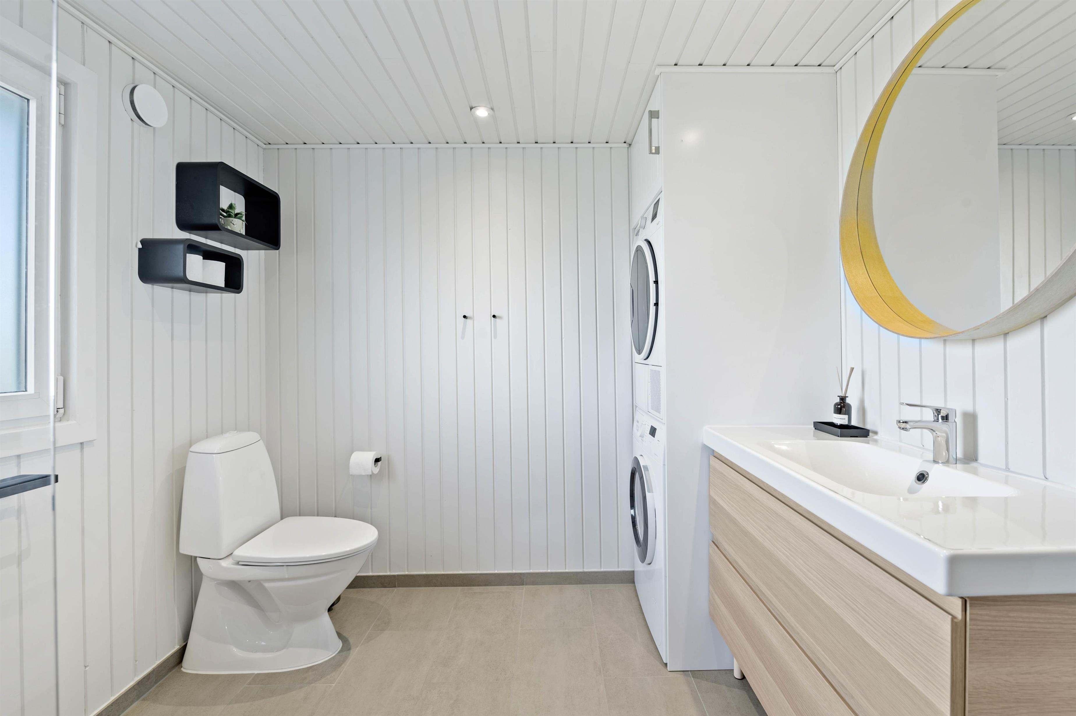 I sommerhuset er der et badeværelse samt et gæstetoilet. Begge badeværelser har behagelig gulvvarme, som er skønt at betræde en kold efterårsmorgen.