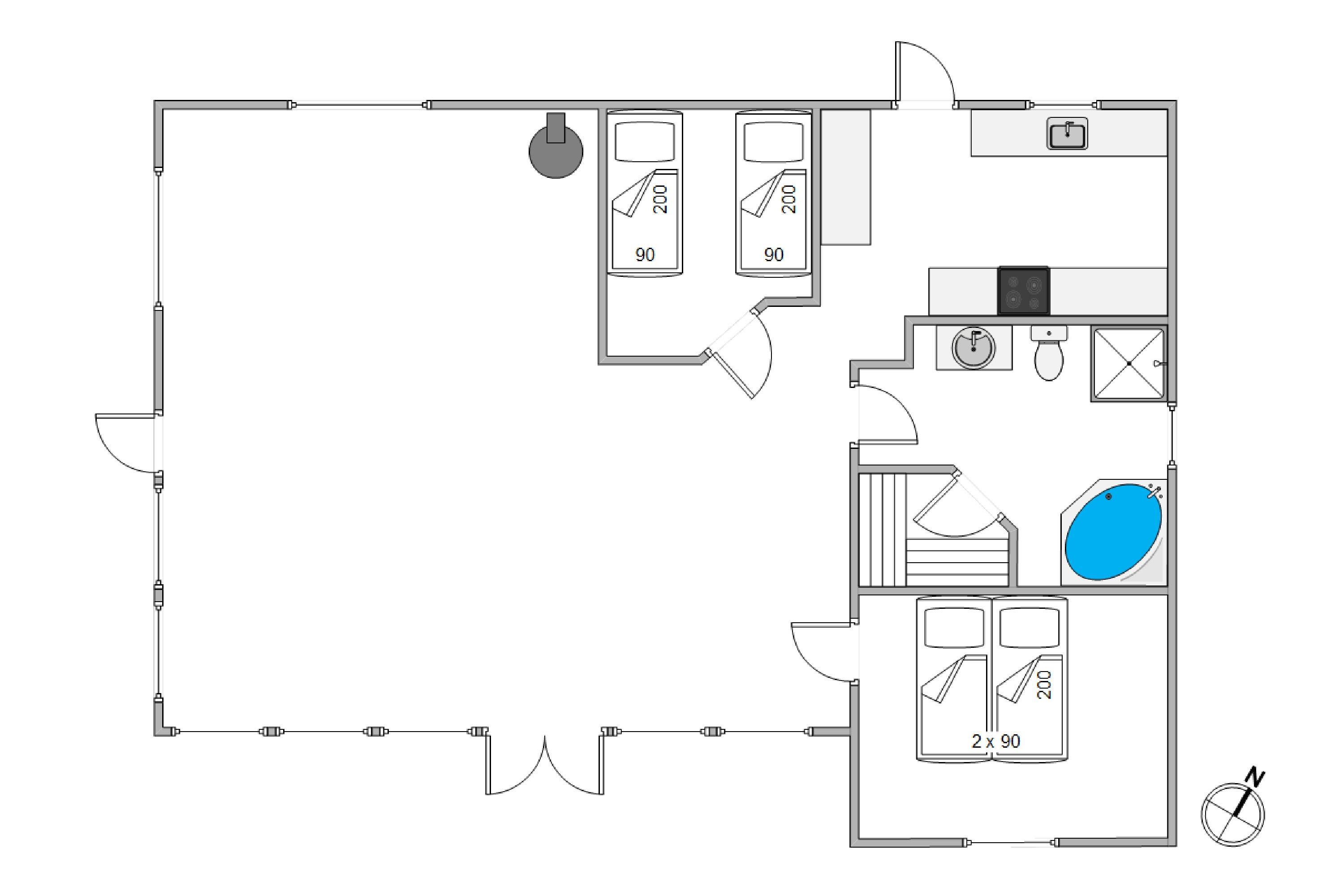 I sommerhuset finder I 2 soveværelser, hvor I kan få en god nats søvn efter en dejlig dag. Badeværelset har gulvvarme, og efter en dejlig dag kan I nyde roen i den infrarøde sauna eller slappe af i spaen på badeværelset. Hvis I får brug for at vaske jeres tøj under ferien, er der også en vaskemaskine til rådighed i sommerhuset.