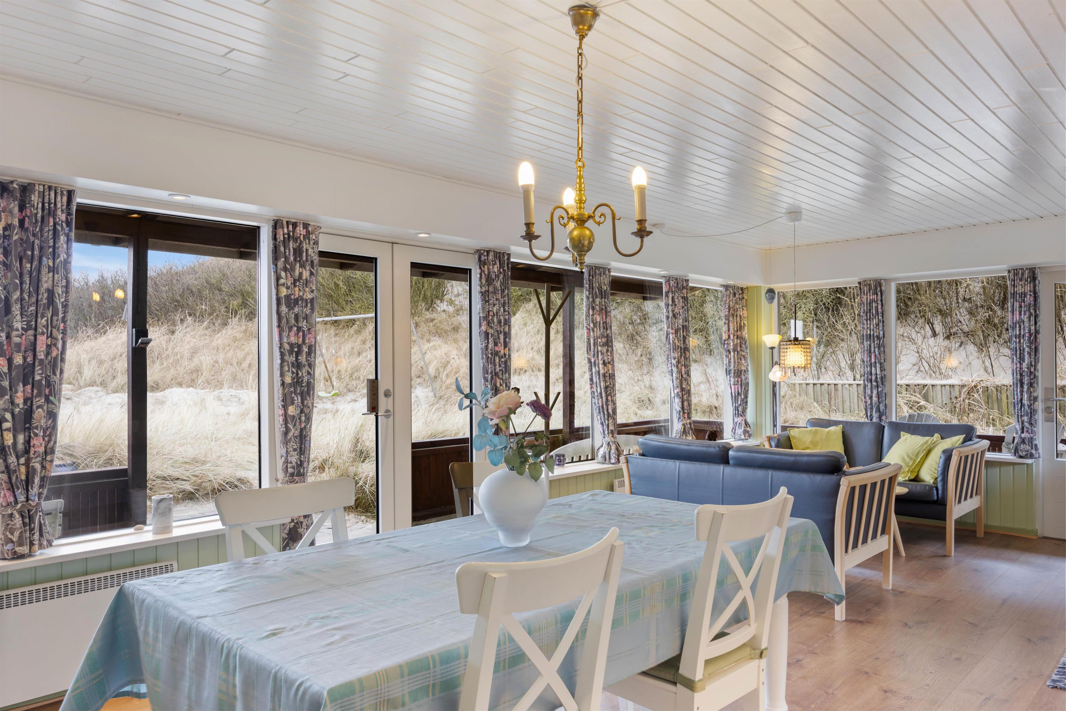 Feriehuset har en hyggelig atmosfære, hvor I straks vil føle jer hjemme. Stuen er indrettet med en sofa, et TV og en brændeovn, der skaber en hyggelig stemning på kølige dage. Udover brændeovnen er der også en varmepumpe, som skaber en dejlig temperatur hele året rundt. De store vinduespartier lukker lyset ind og giver en fantastisk udsigt til den smukke klitnatur. I køkkenet finder I bl.a. en opvaskemaskine, så I ikke skal bruge tid på opvasken.
