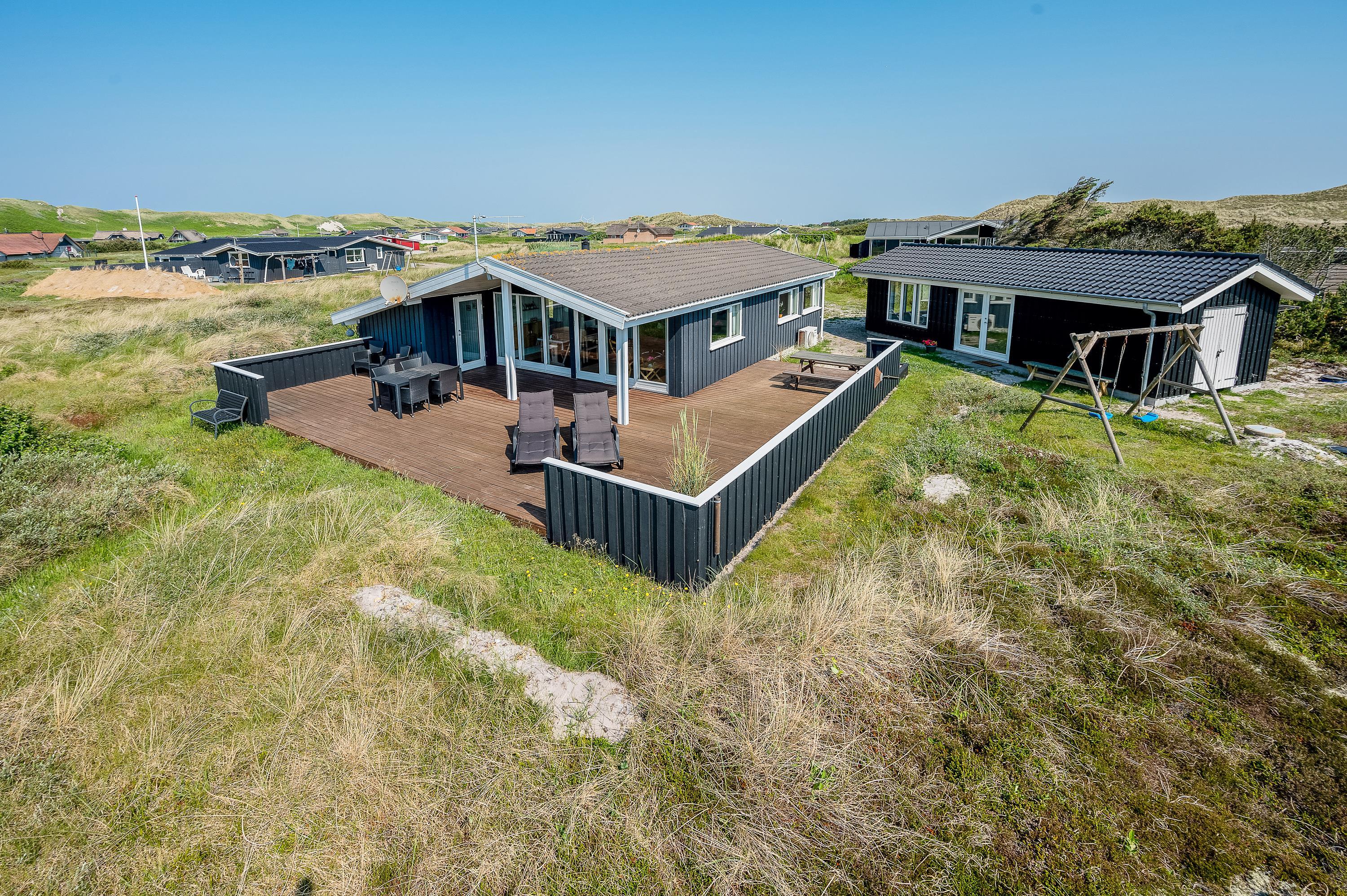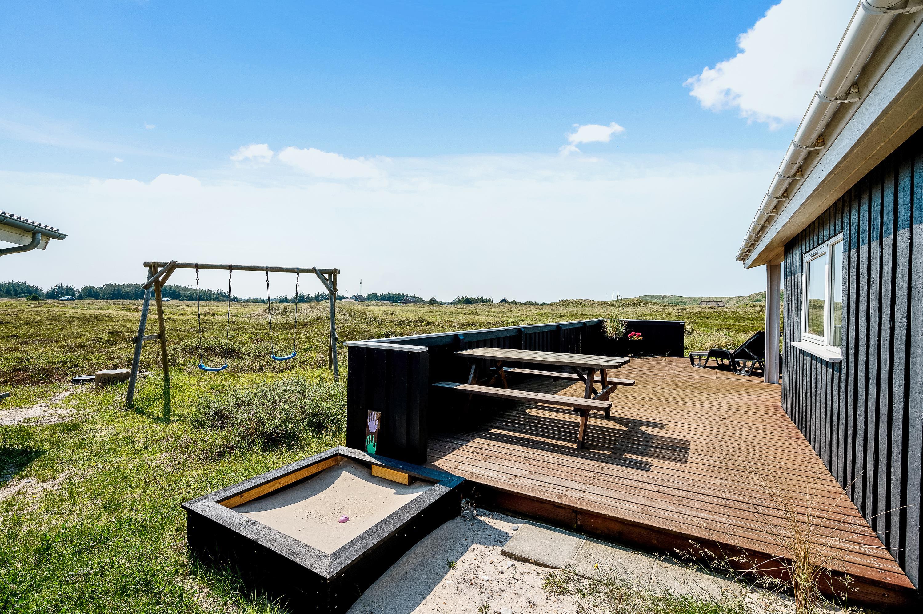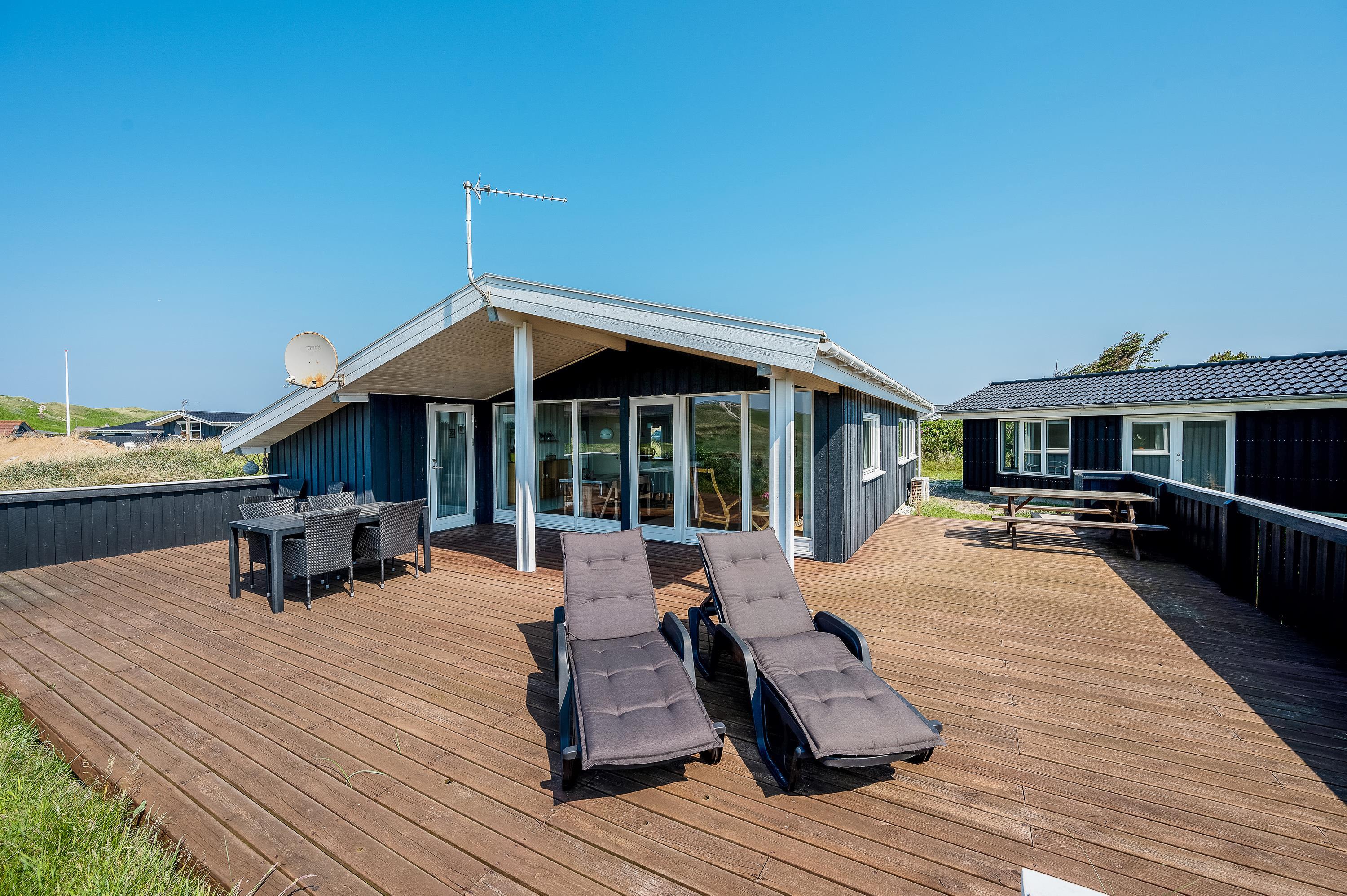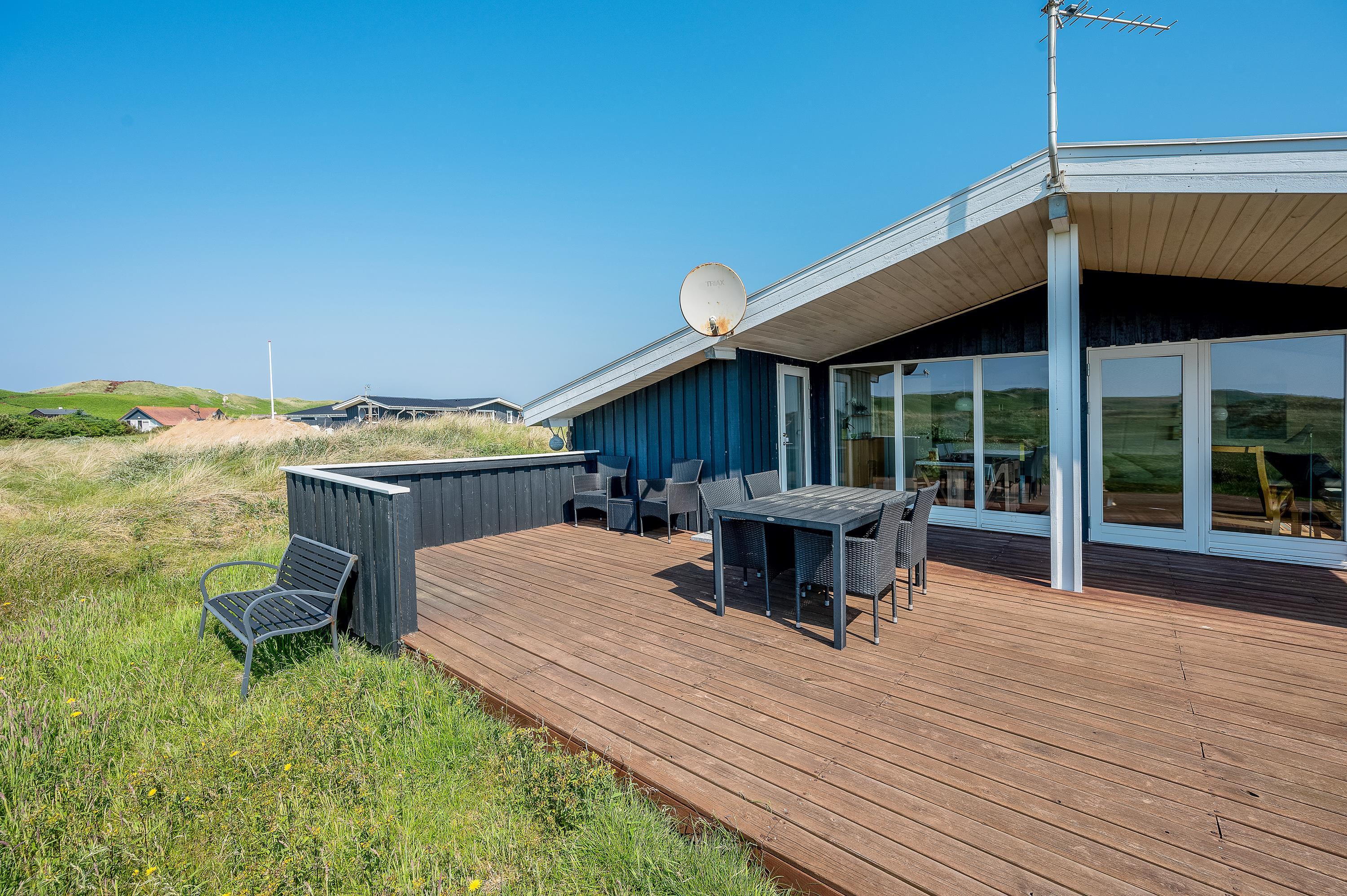 Sommerhuset har gode terrasseforhold rundt om huset. Fra terrassen har du fantastisk udsigt over hede og klitter. Her kan I nyde morgenkaffen eller en god middag fra grillen sammen med venner og familie. I kan også tage en tur til stranden og samle sten eller lede efter rav. Vesterhavet er magisk hele året rundt. Her er der højt til loftet og masser af frisk luft.