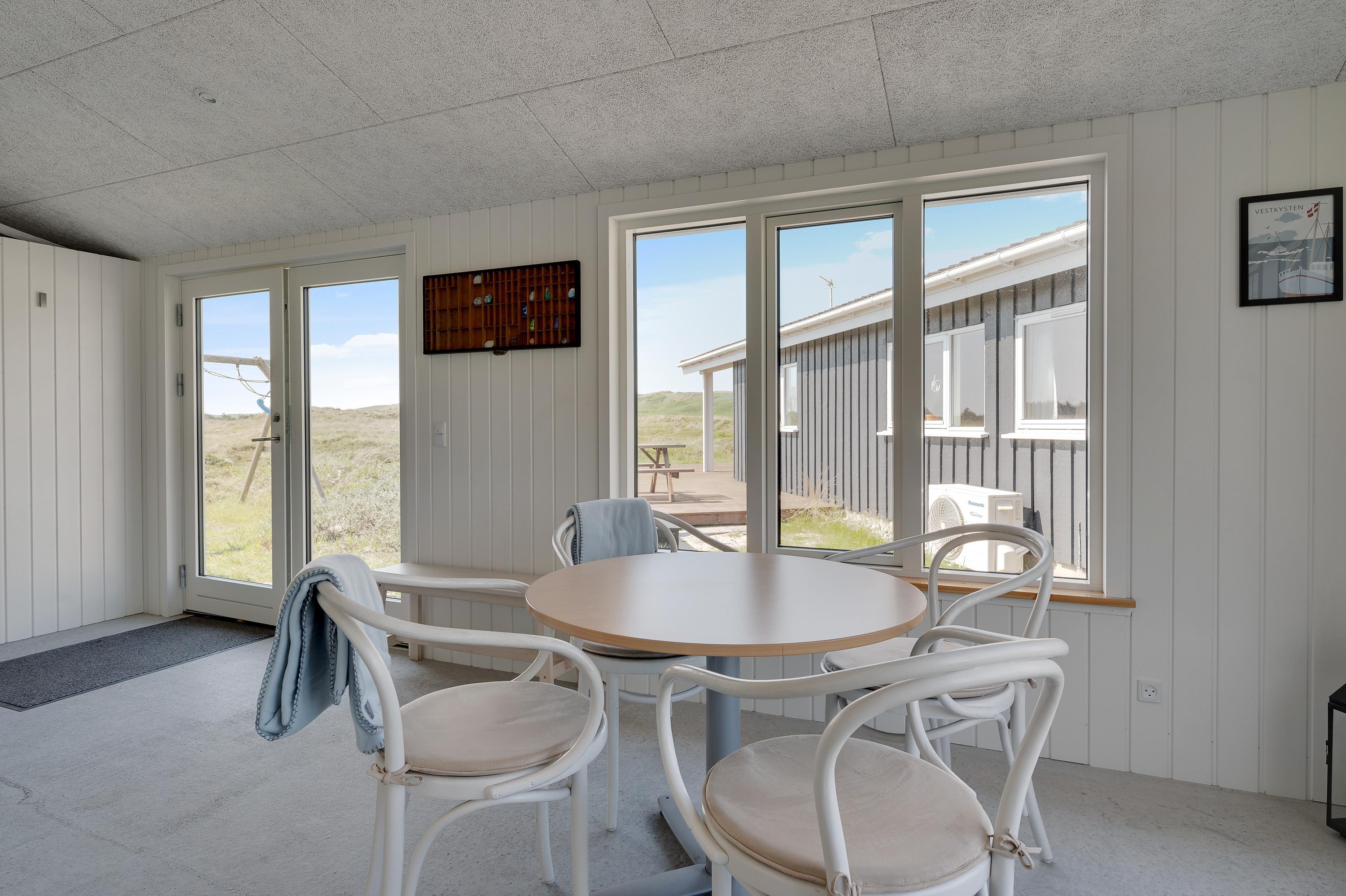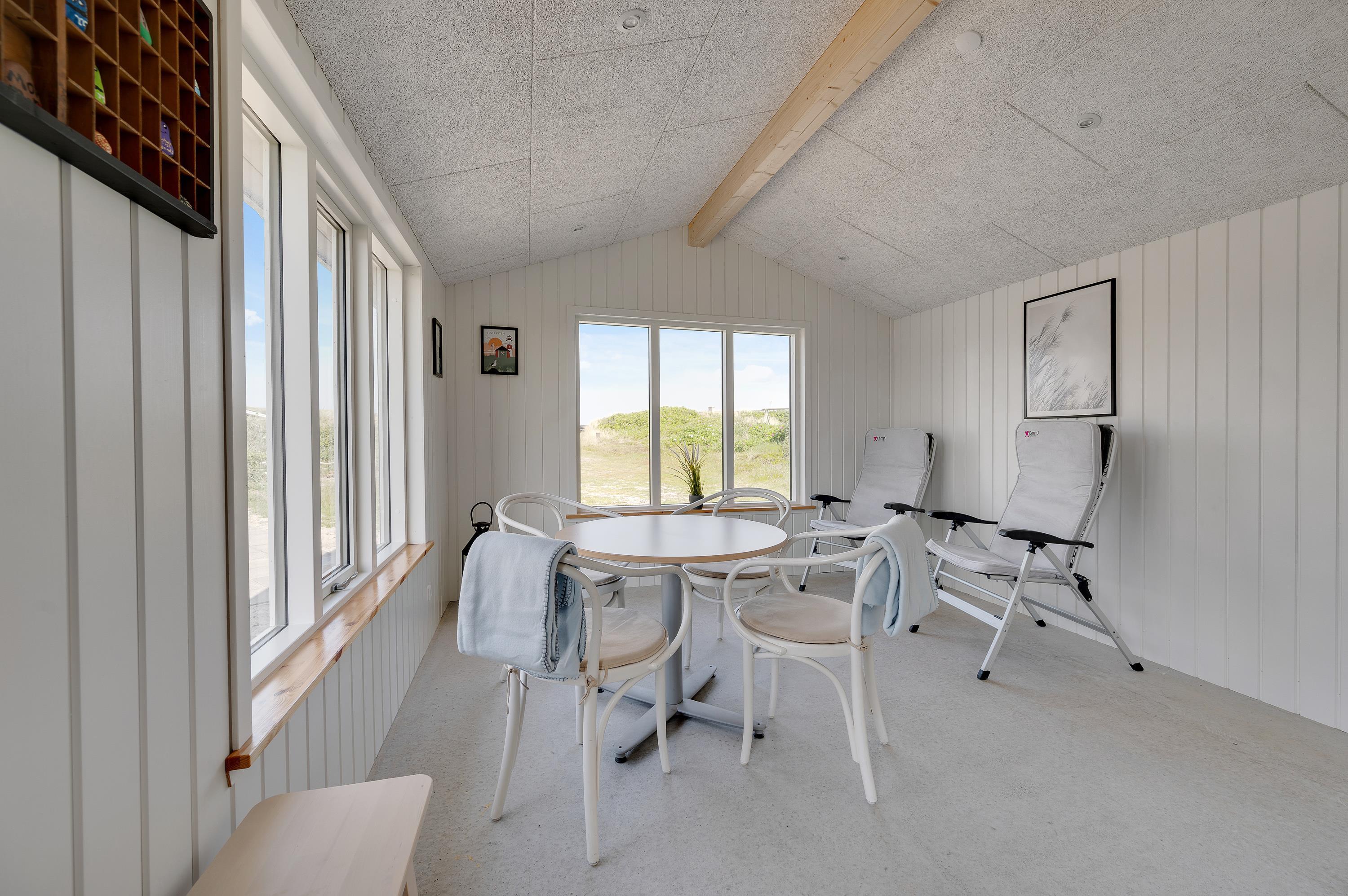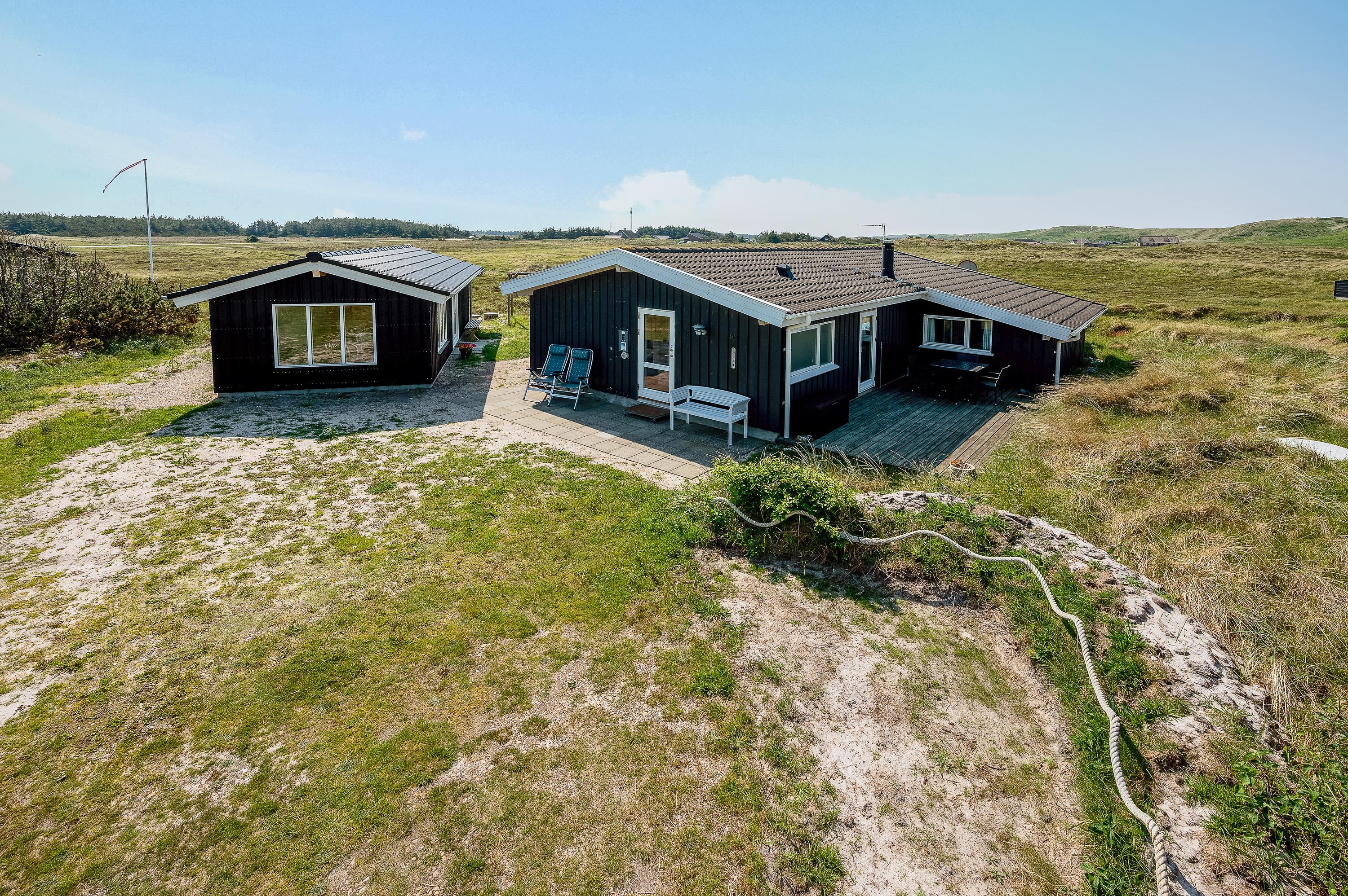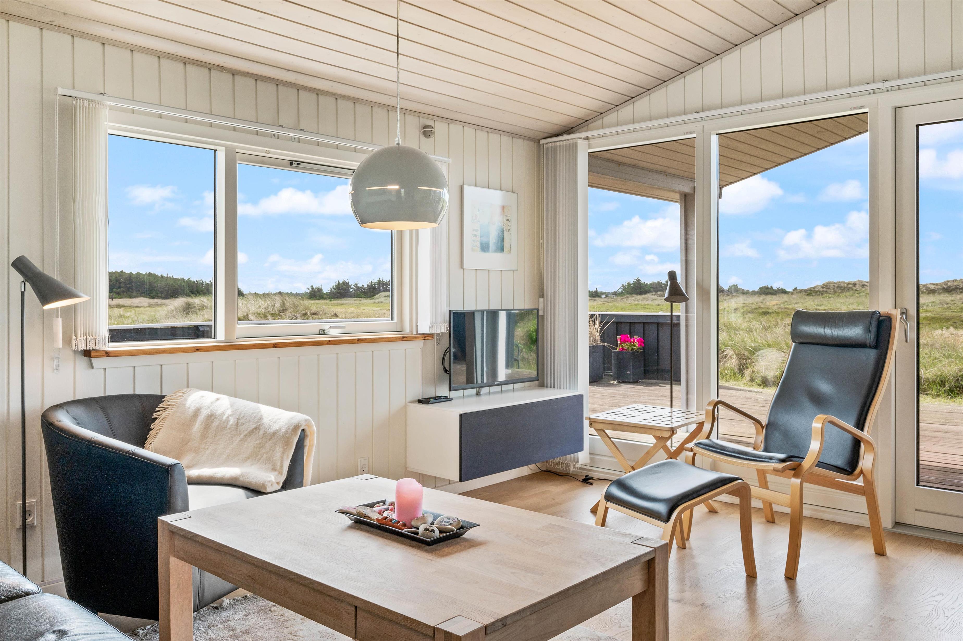 Sommerhuset har gode terrasseforhold rundt om huset. Fra terrassen har du fantastisk udsigt over hede og klitter. Her kan I nyde morgenkaffen eller en god middag fra grillen sammen med venner og familie. I kan også tage en tur til stranden og samle sten eller lede efter rav. Vesterhavet er magisk hele året rundt. Her er der højt til loftet og masser af frisk luft.
