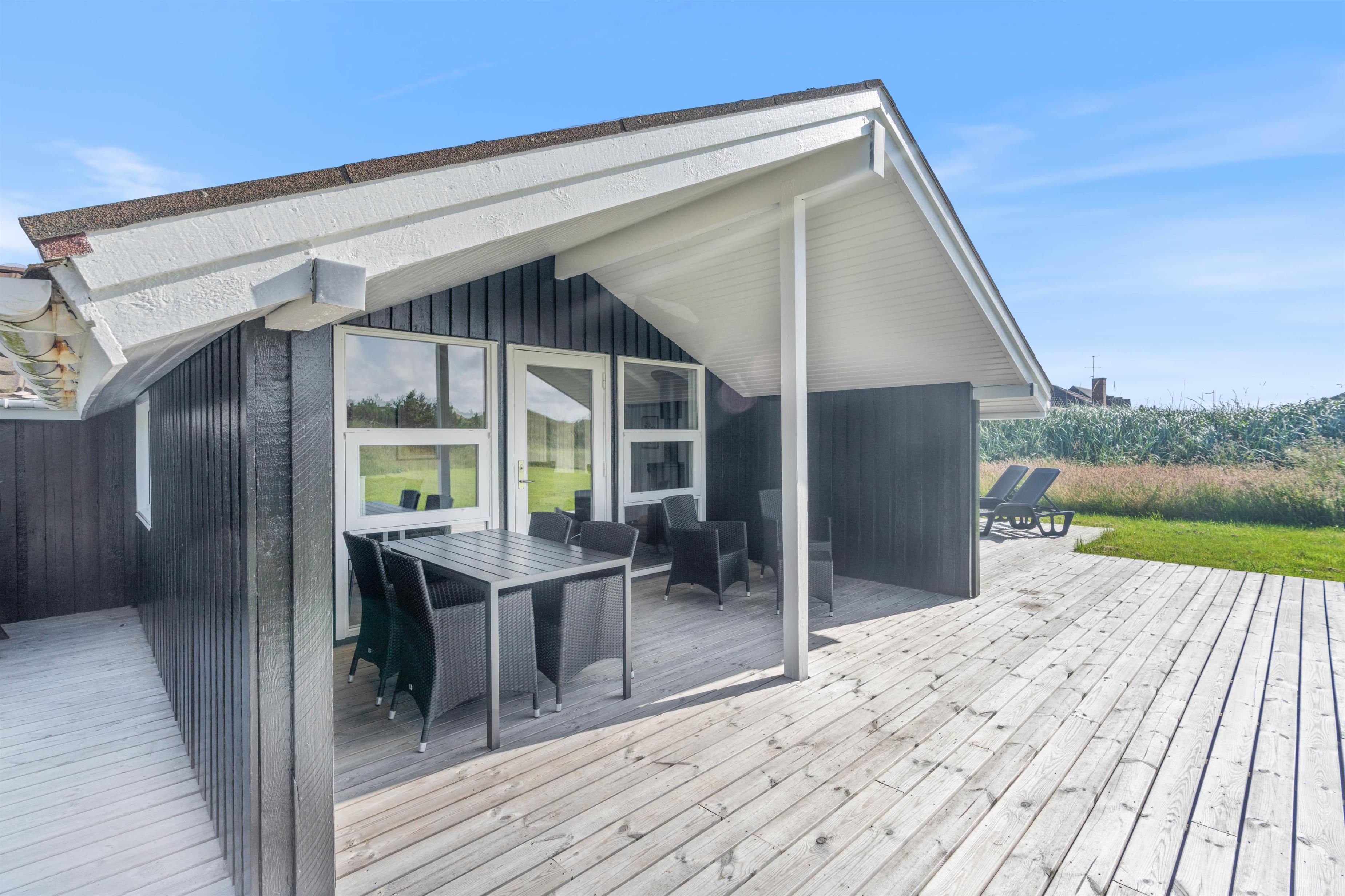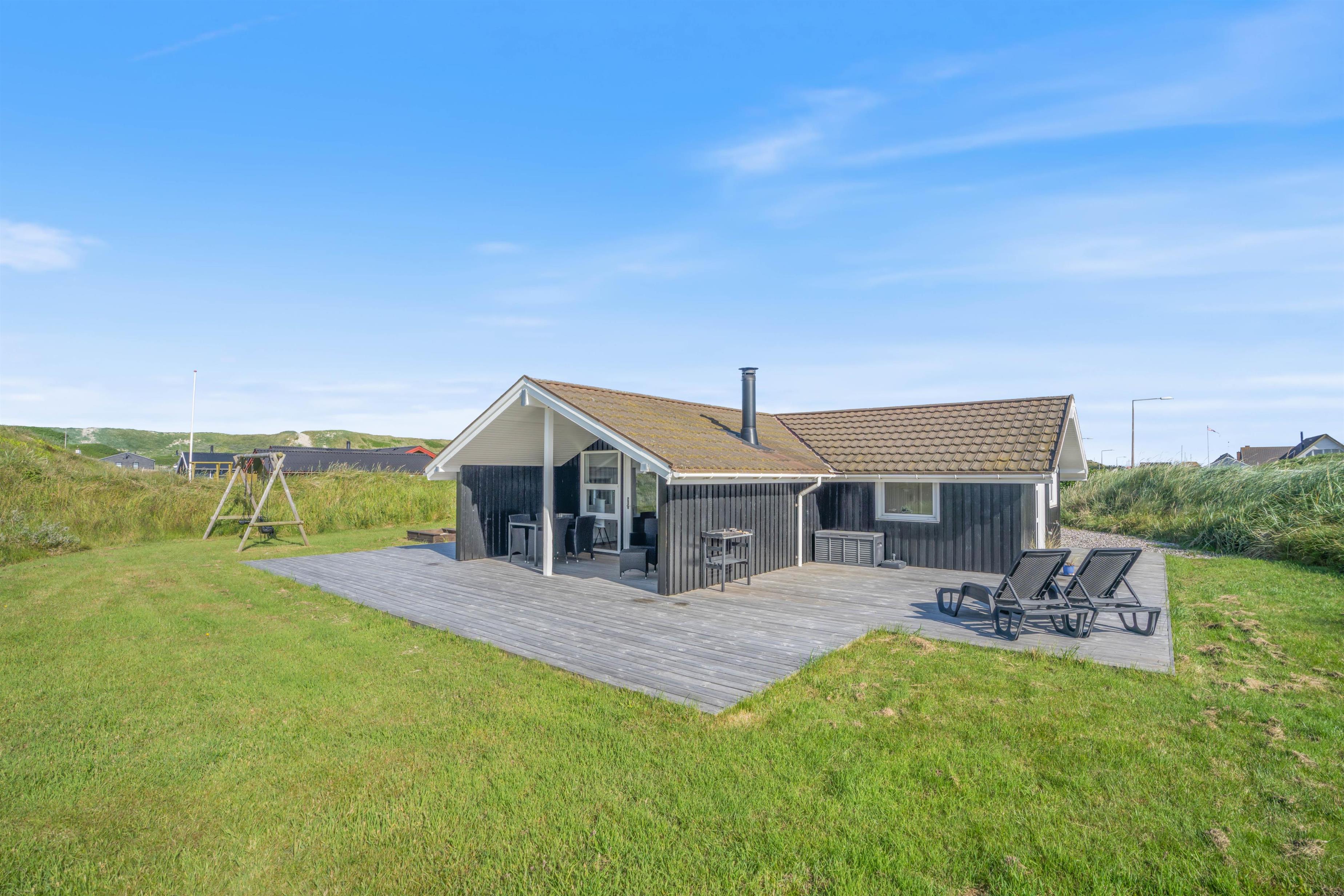 Dejligt feriehus med god beliggenhed på en delvis afskærmet grund i Årgab. Her er I tæt på stranden, så bruset fra Vesterhavets bølger kan høres, mens ferien nydes på den store skønne terrasse. Og vil I surfe, fiske eller shoppe, har I alle mulighederne indenfor nær rækkevidde.