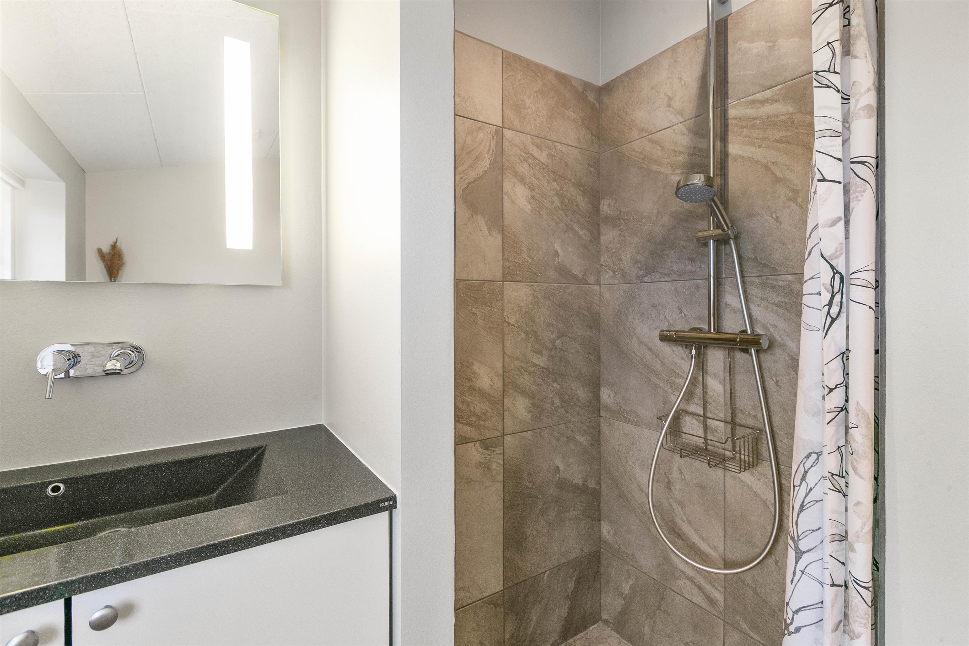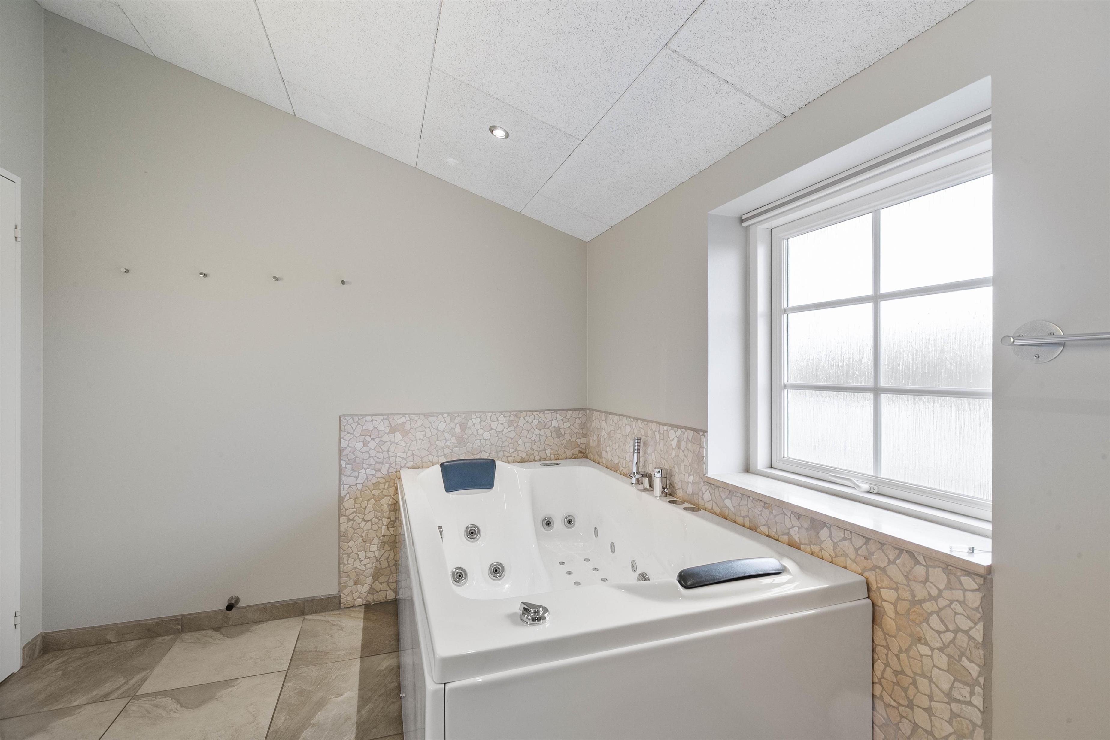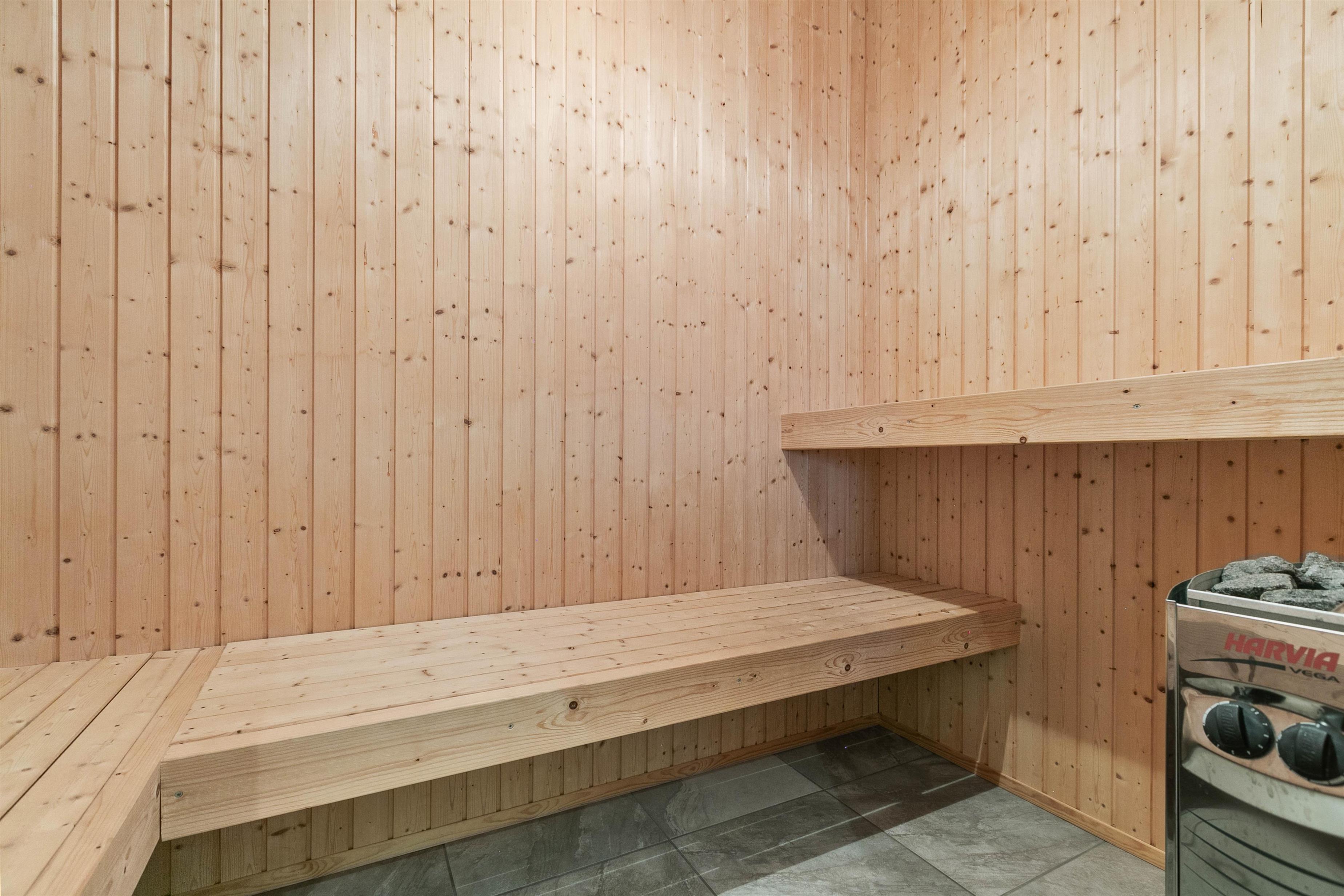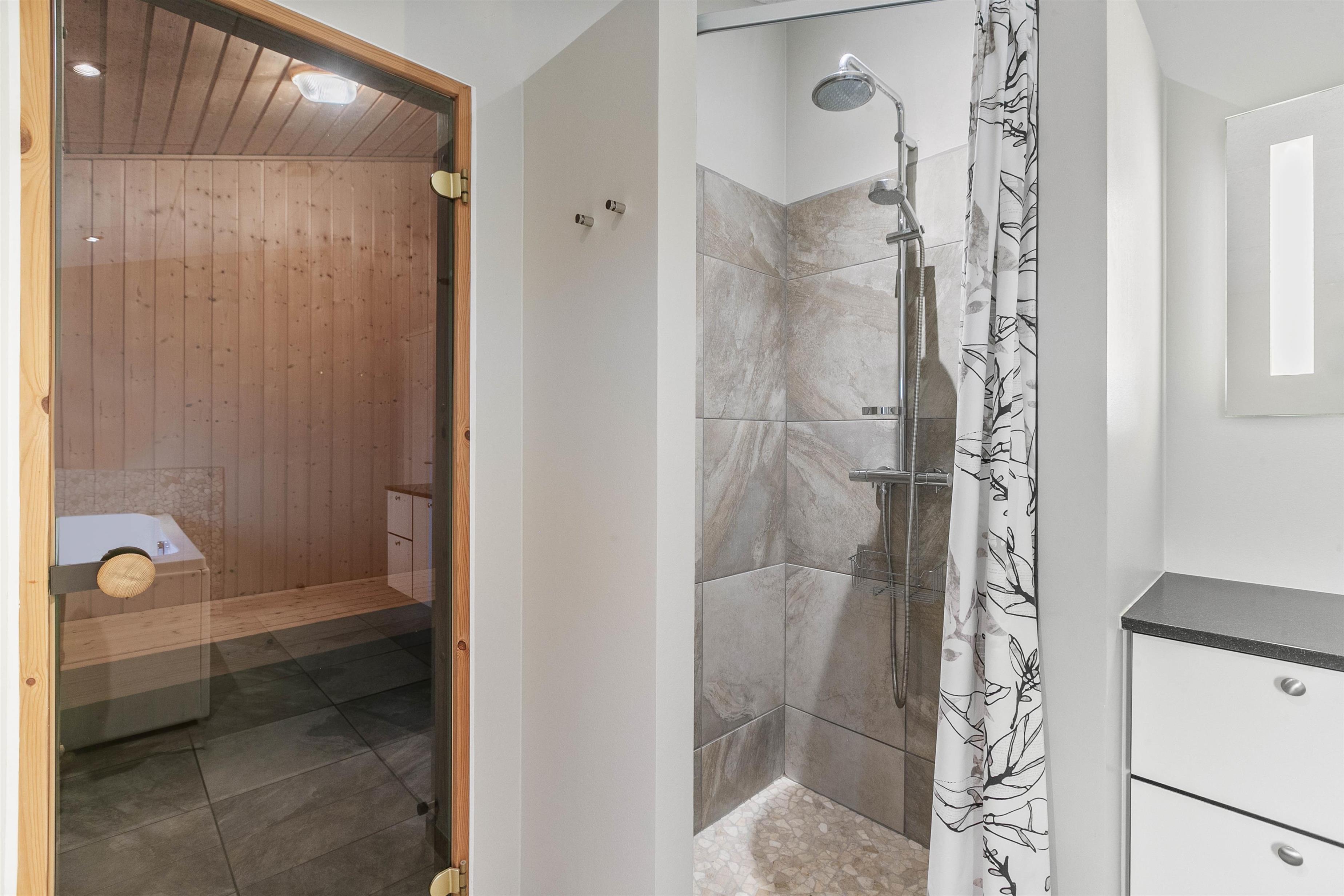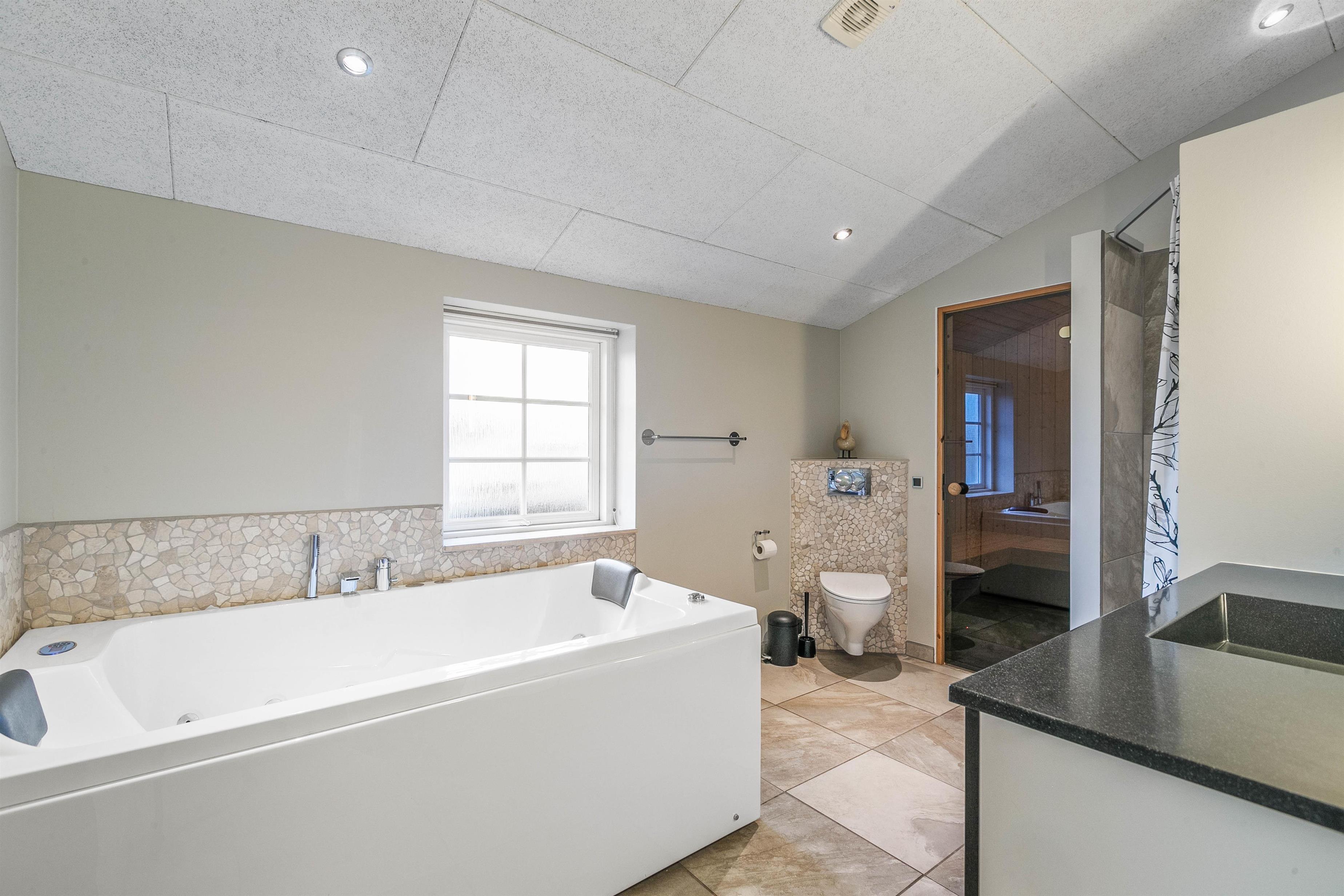 På det ene badeværelse har du en dejlig sauna og et spabad. Her kan du slappe af efter en lang og god feriedag med masser af oplevelser og frisk luft.
