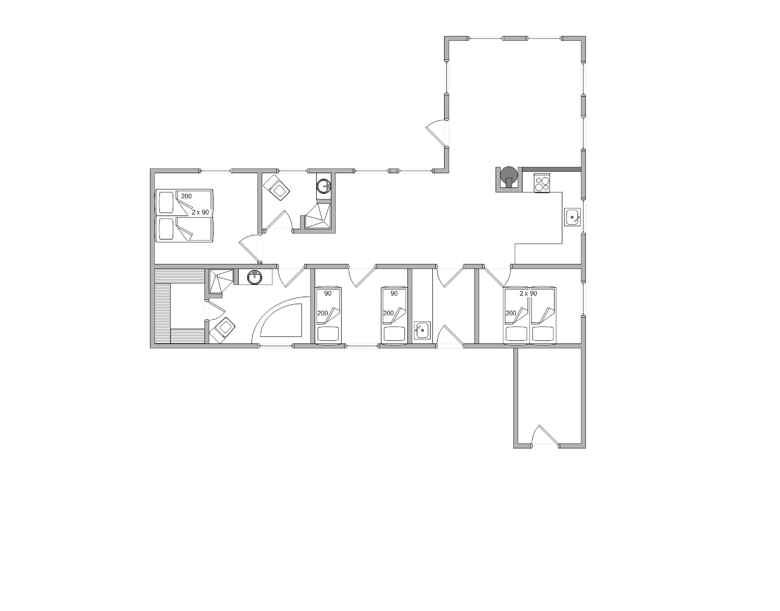 Der er et dejligt og veludstyrret køkken, hvor der er god plads til hyggeligt samvær omkring madlavningen. Og hvis børnene hellere vil se en film imens, er stuen lige ved siden af. Der er desuden ekstra TV i alle tre soveværelser.