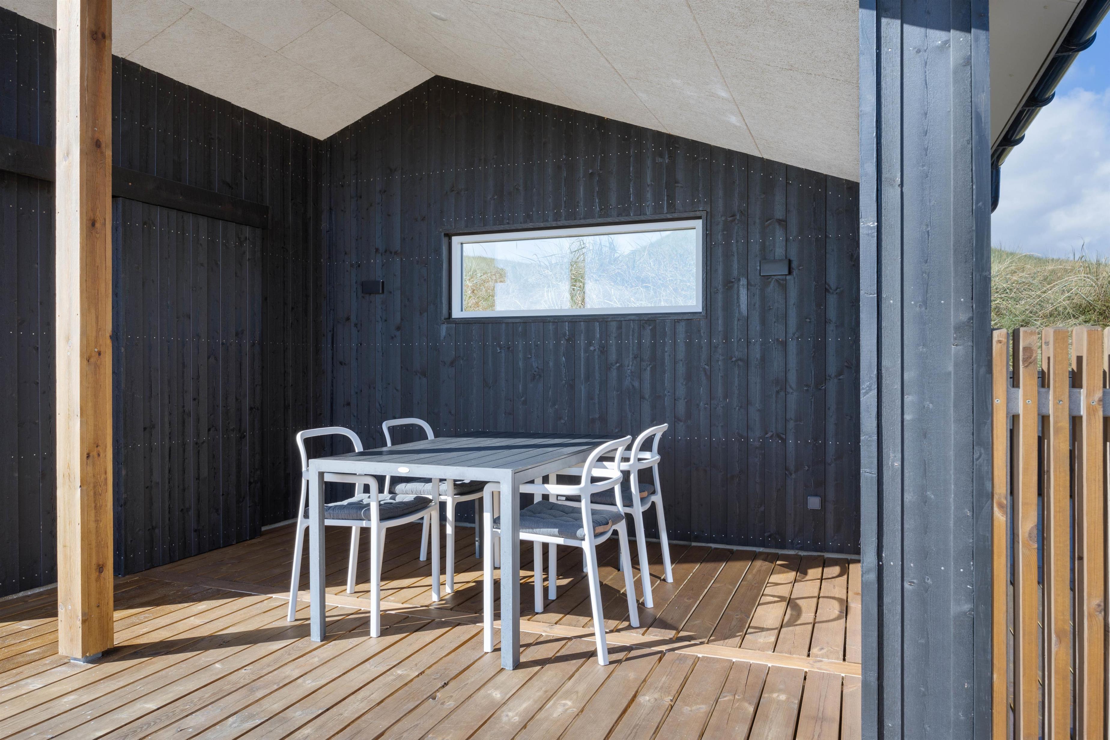 Fra stuen har I tilgang til den store og delvist afskærmede træterrasse mod syd og sydvest. Efter morgenlufteturen på stranden kan I hvile velfortjent ud på liggestolene, mens I nyders udsynet over naturen til lyden af havets brusen.