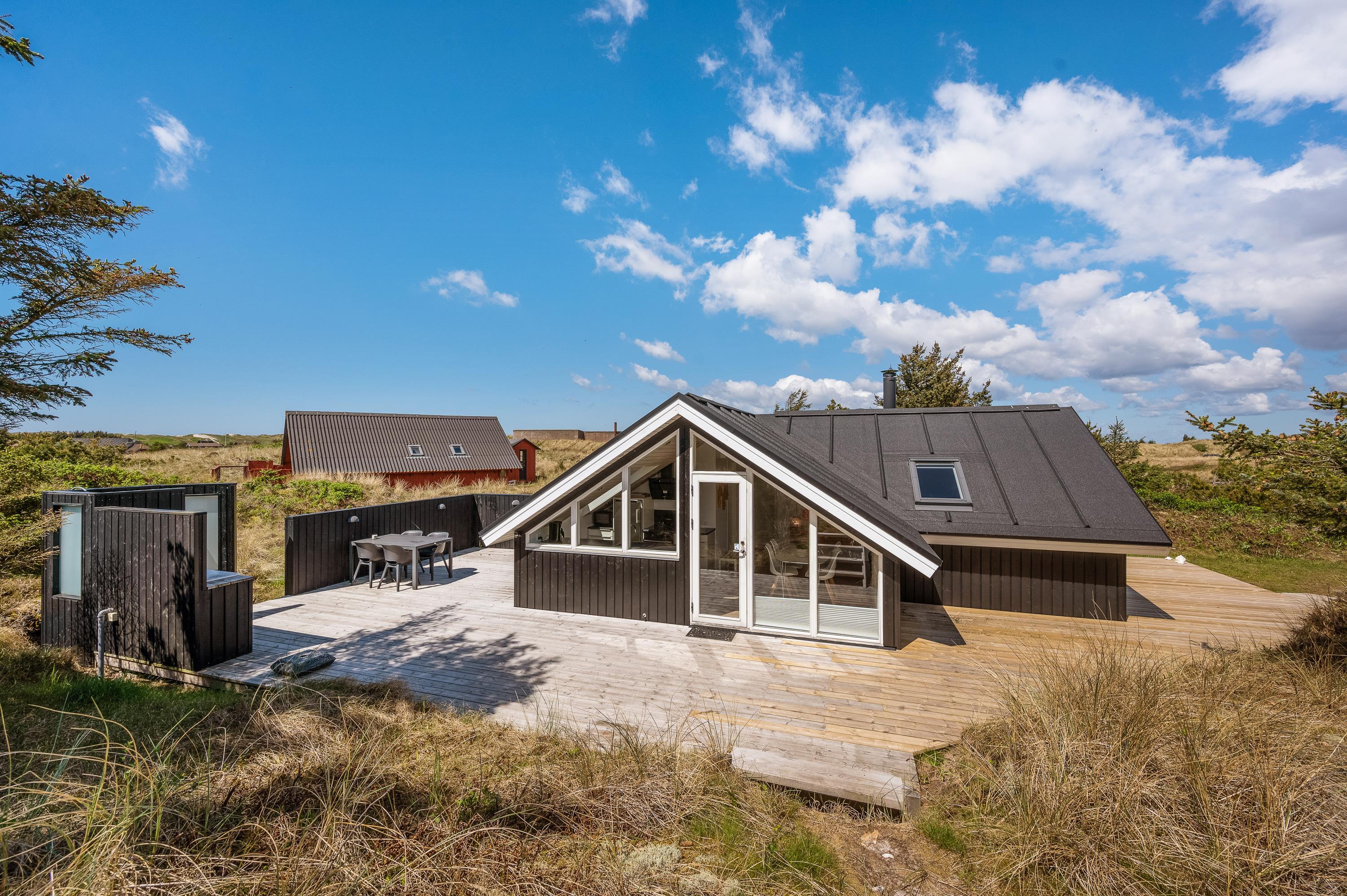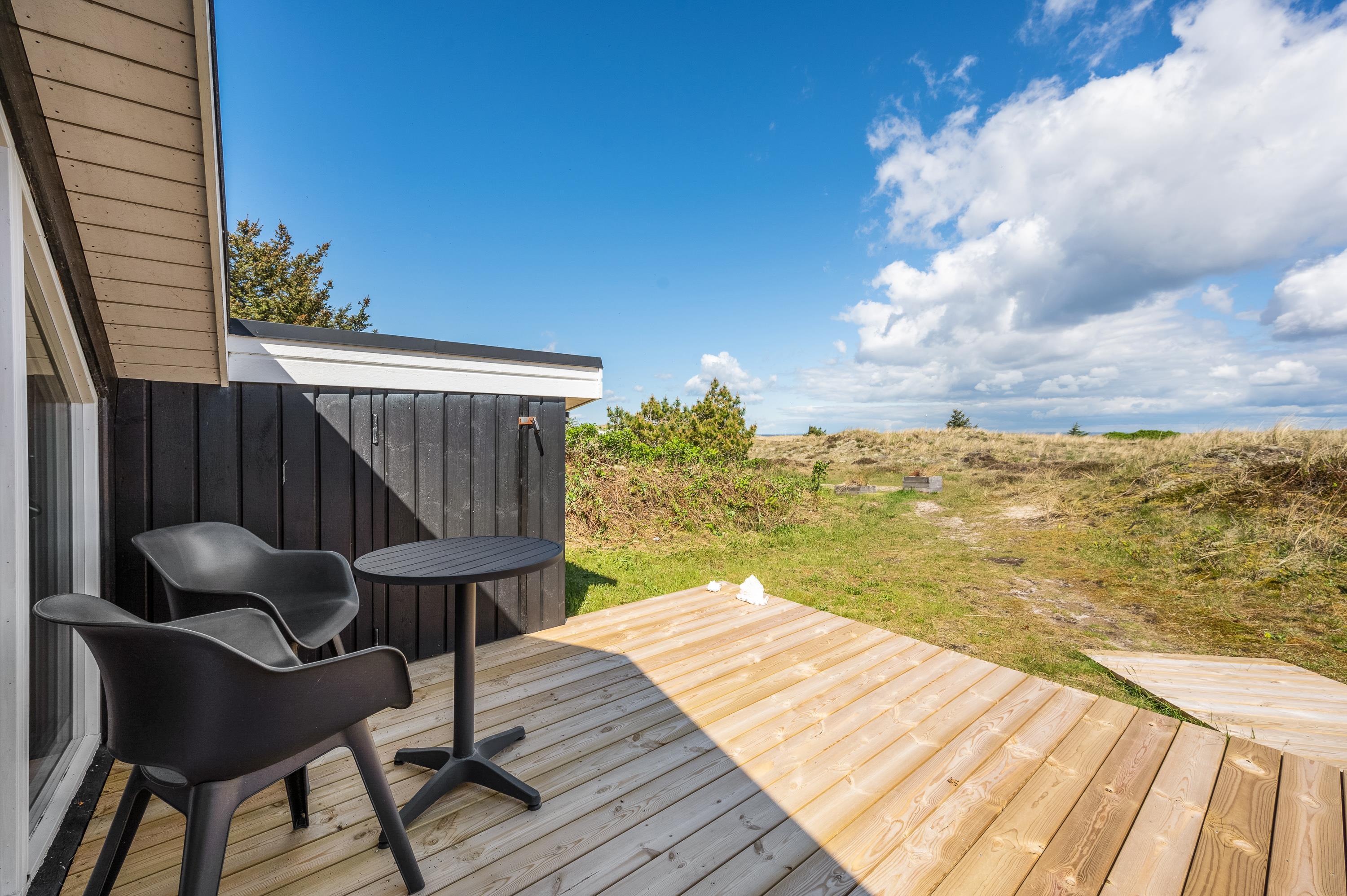 Et mindre og særdeles charmerende feriehus med en skøn og fredelig beliggenhed i Årgab. Sommerhuset har fjordkig fra stuen og en skøn udsigt over det smukke landskab. Feriehuset ligger midt mellem Vesterhavet og Ringkøbing Fjord og der er gratis rengøring.