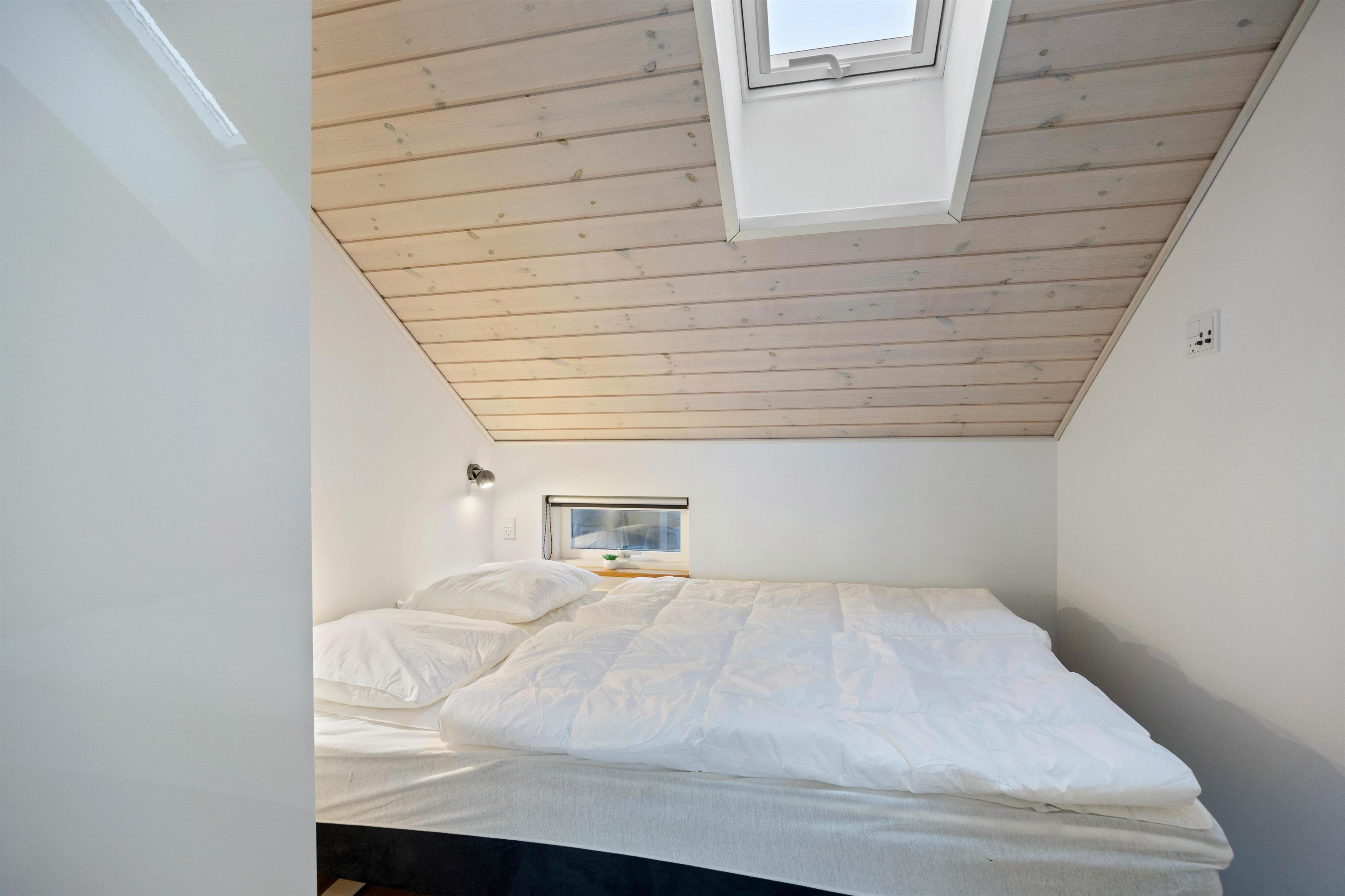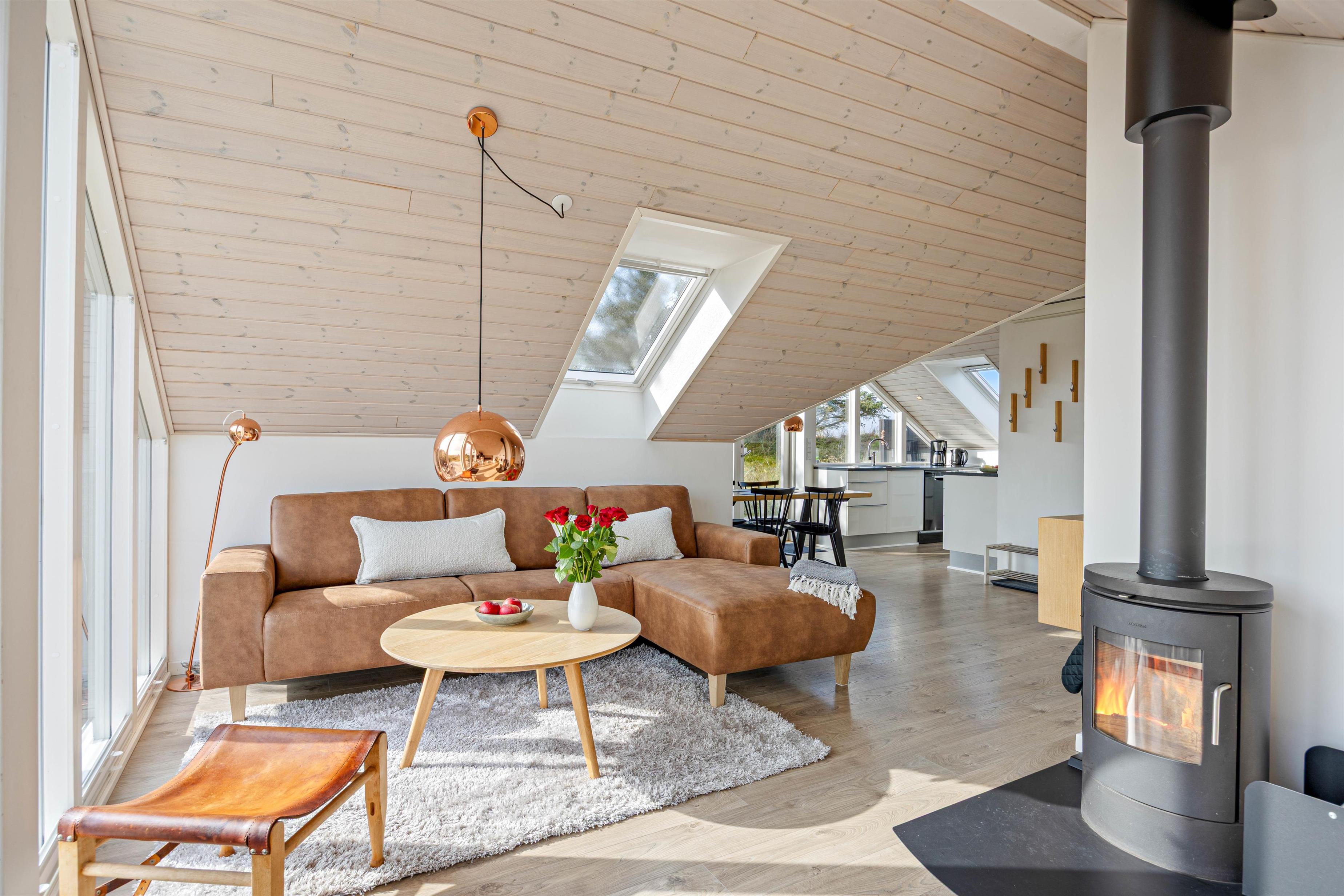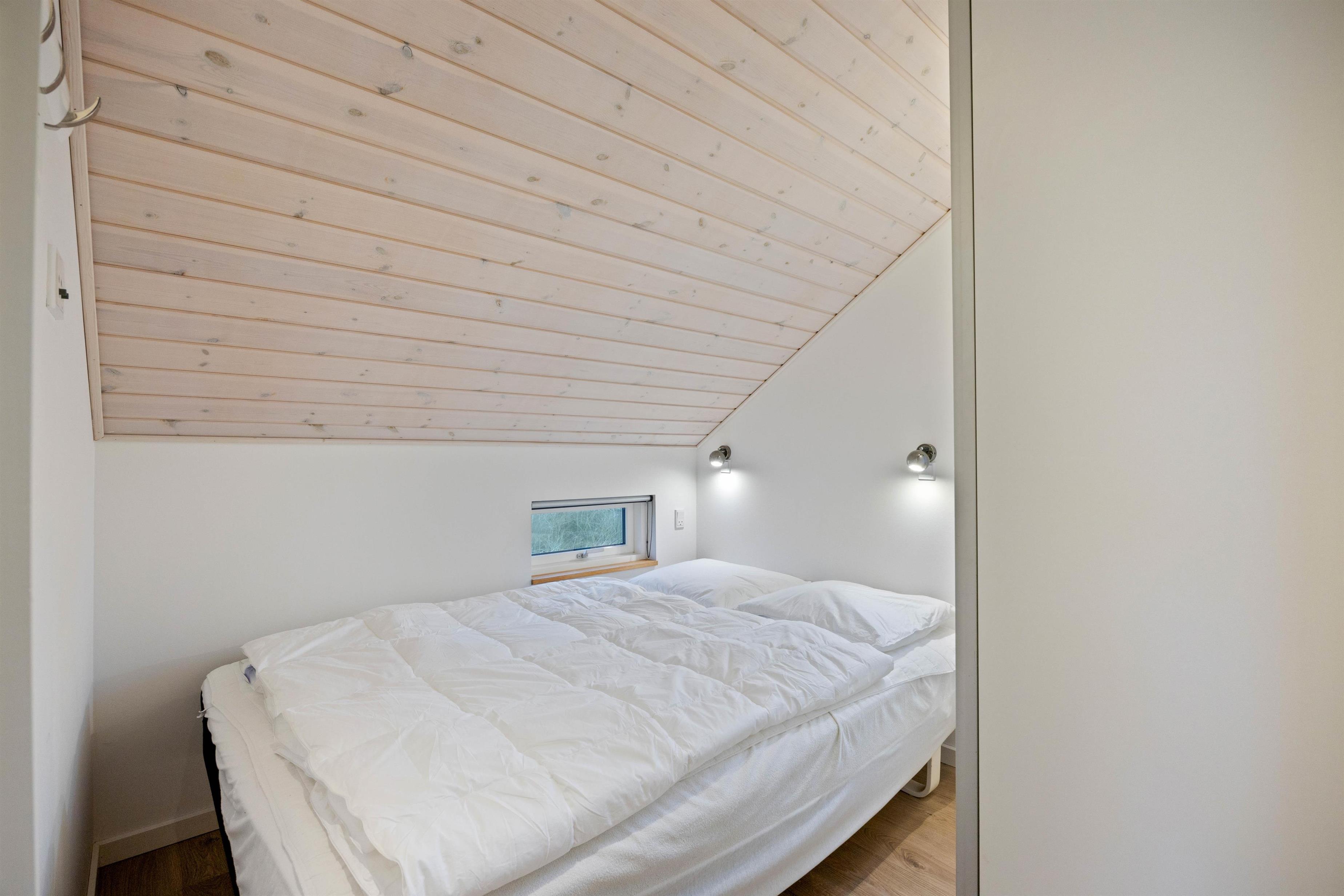 Feriehuset er opført i gode materialer og fremstår både hyggelig og indbydende, et perfekt sommerhus til at nyde de knitrende flammer fra brændeovnen i efter en tur langs havet. Der er to værelser, som begge er indrettet med dobbeltsenge, og et dejligt badeværelse med vaskemaskine og gulvvarme.