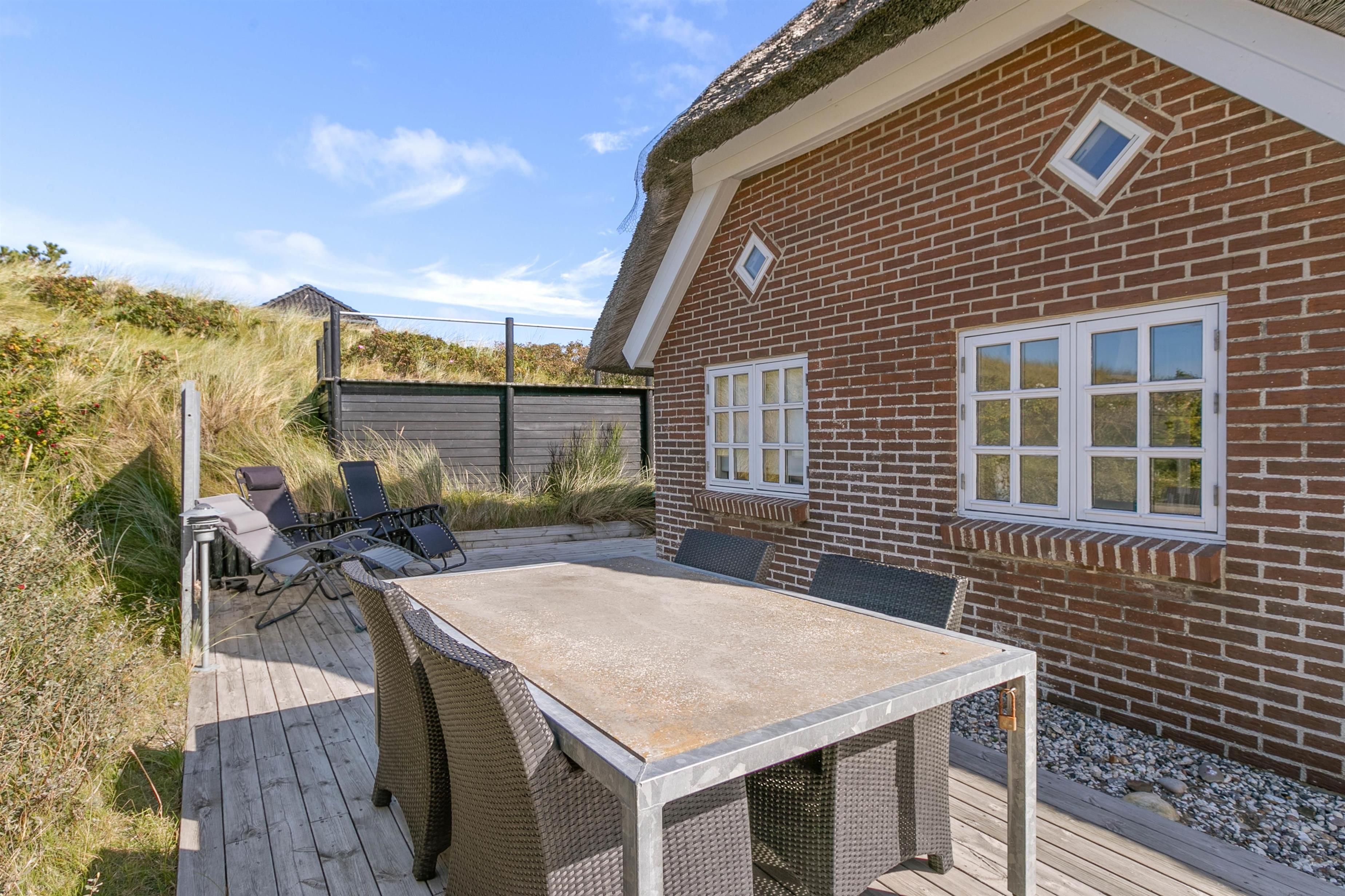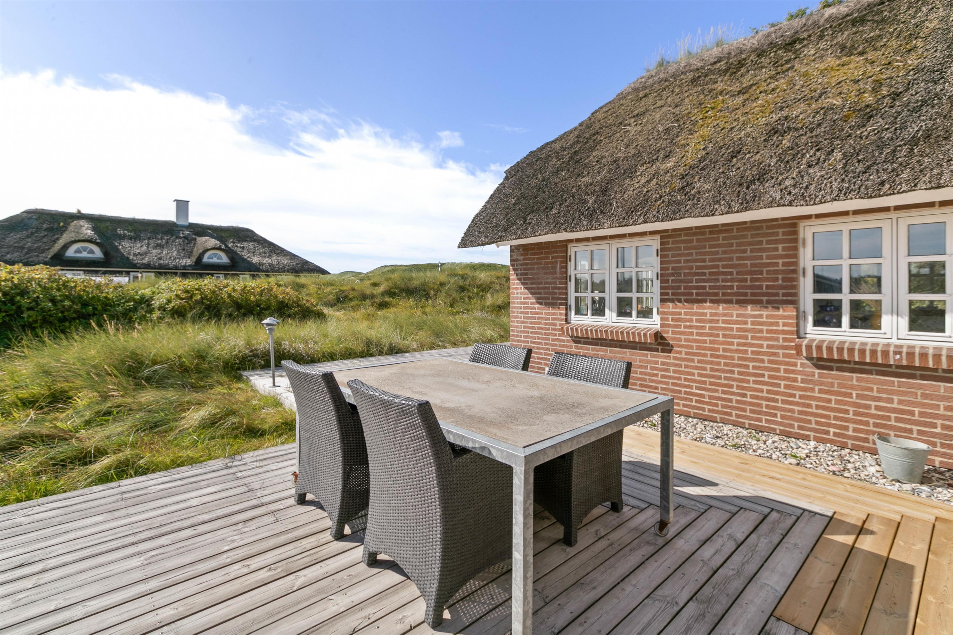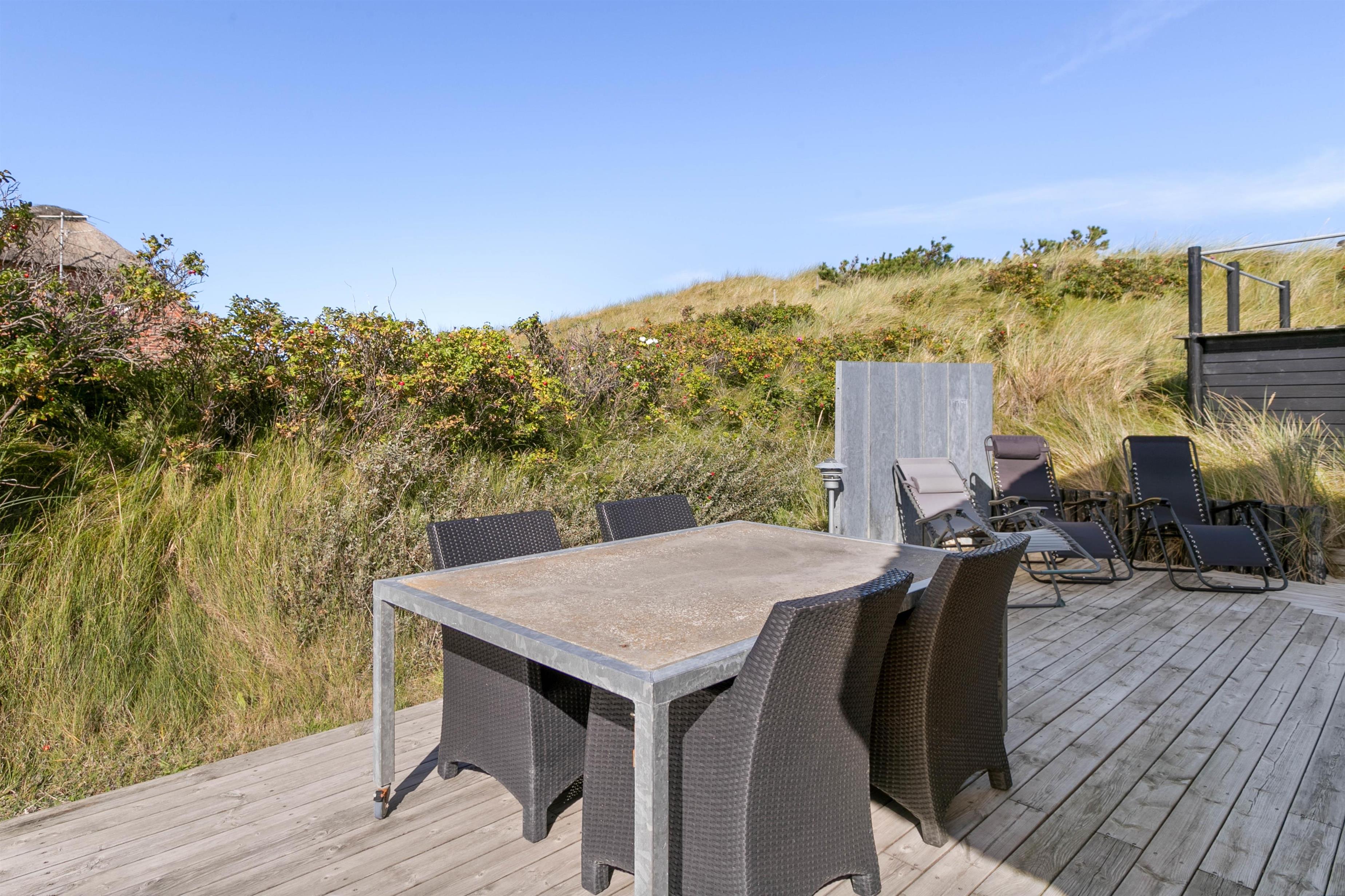 Når vejret byder op til det, kan I sætte jer ud på den skønne terrasse og nyde den skønne udsigt ud over klitterne. Terrassen byder også på en grill, så I har mulighed for at lave aftensmaden udenfor.