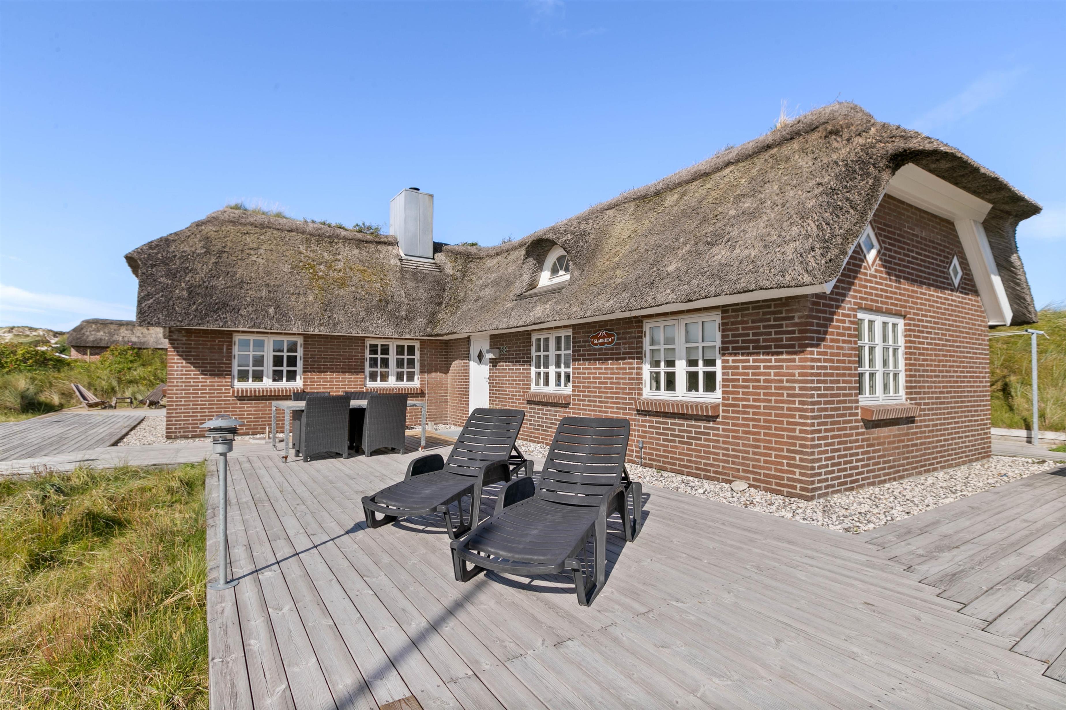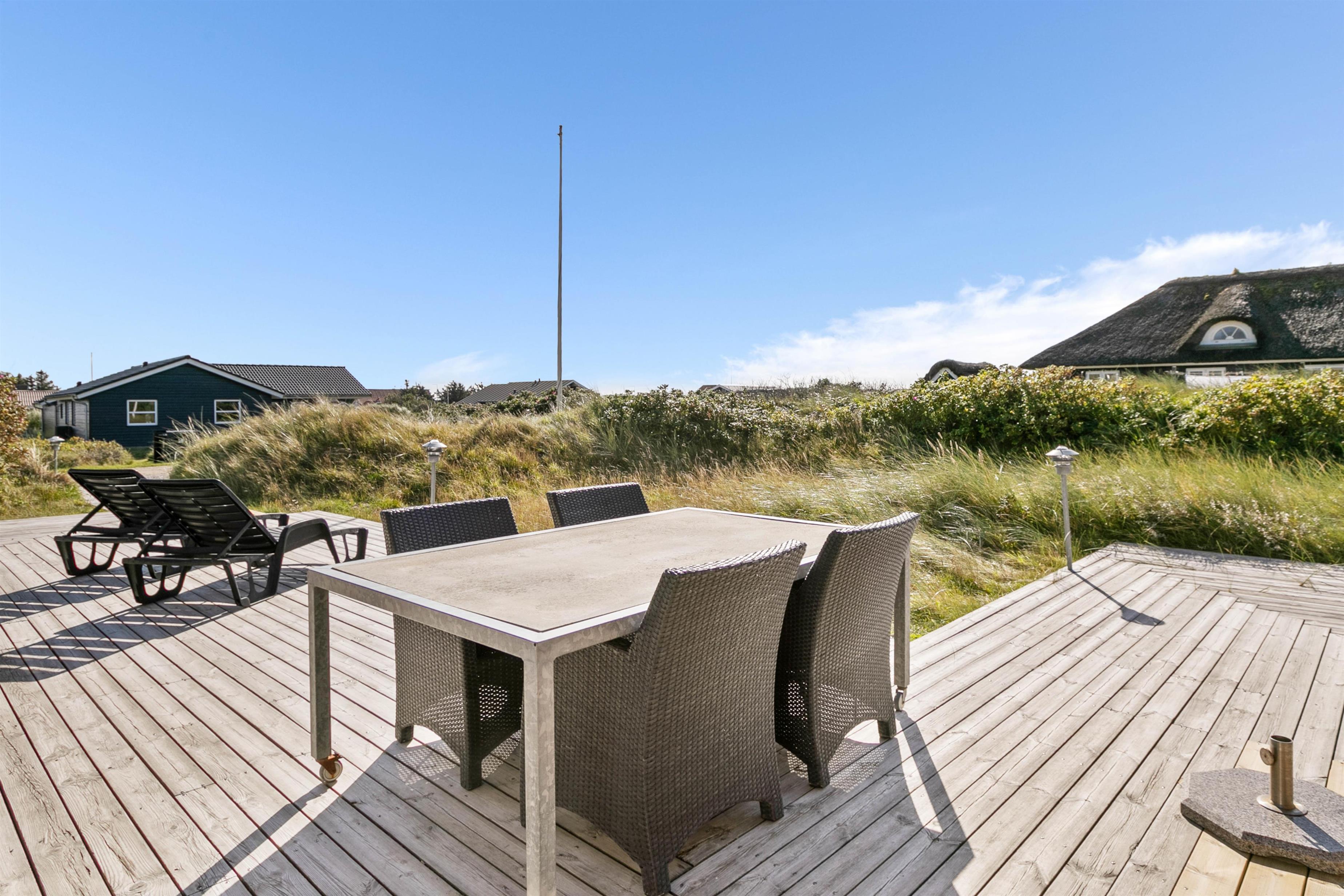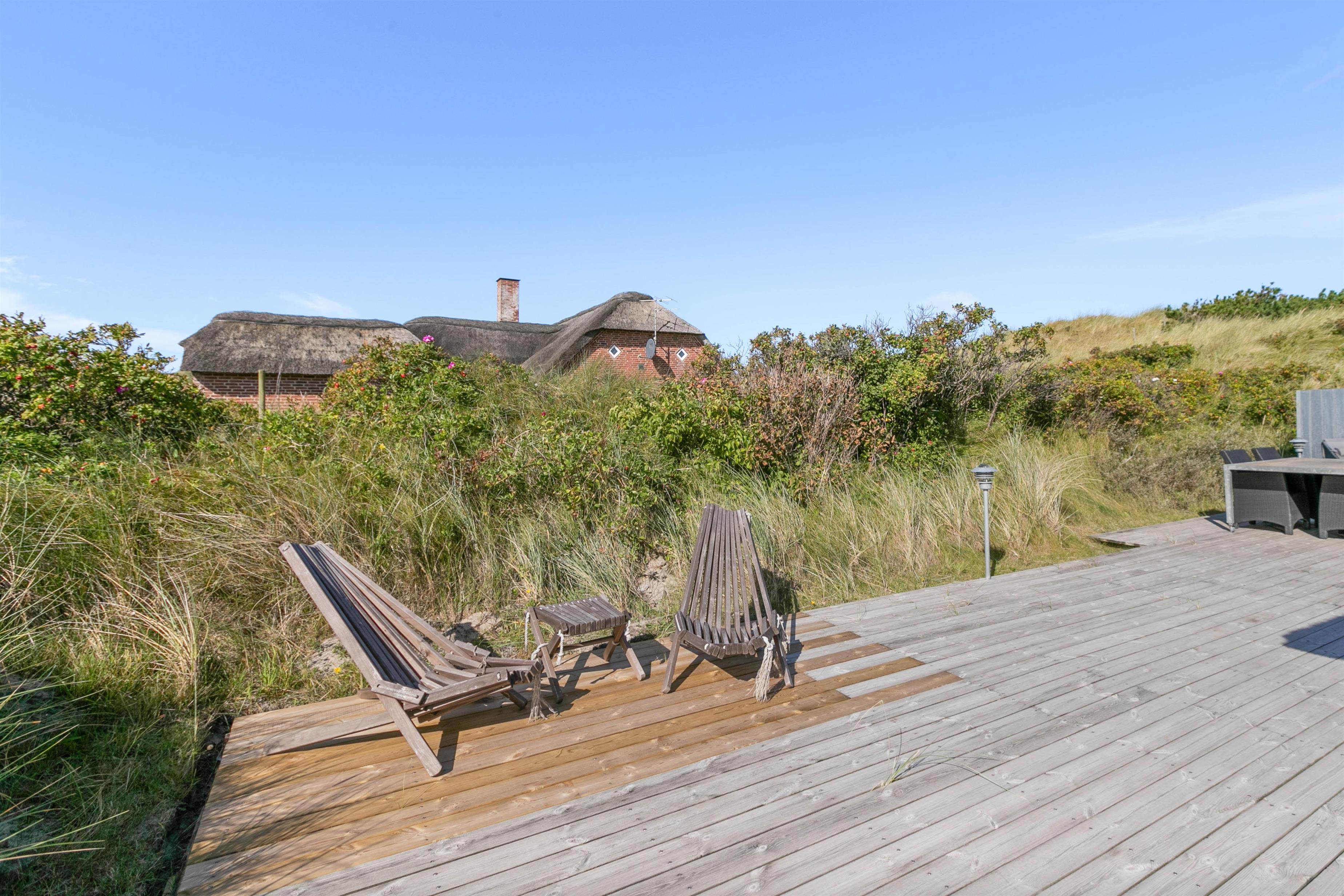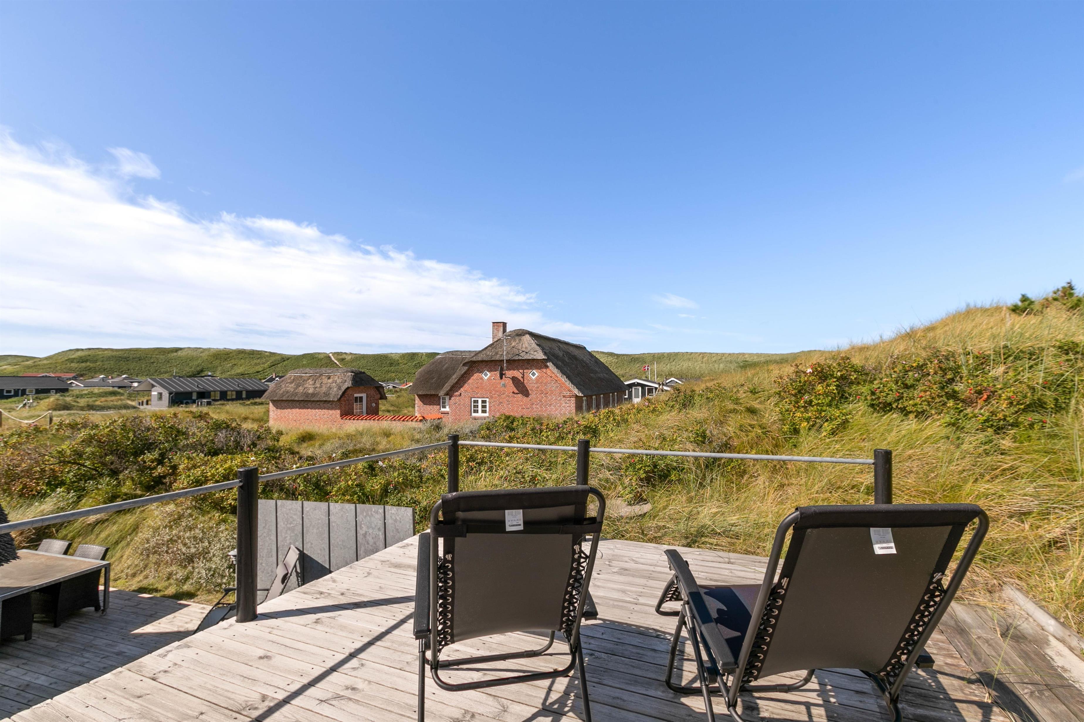 Når vejret byder op til det, kan I sætte jer ud på den skønne terrasse og nyde den skønne udsigt ud over klitterne. Terrassen byder også på en grill, så I har mulighed for at lave aftensmaden udenfor.