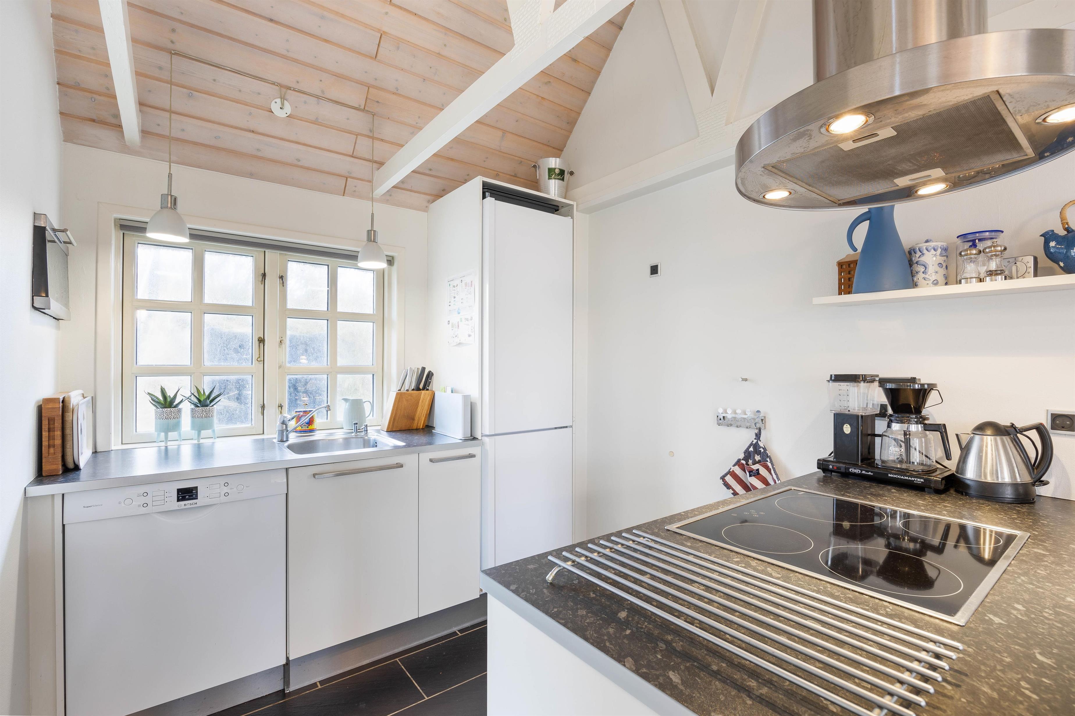 I køkkenet/alrummet er der plads til mange hyggelige stunder. I kan sidde og spille spil eller se en god film sammen, imens der bliver lavet dejligt mad i køkkenet. De praktiske gøremål skal I ikke bruge lang tid på, da der i sommerhuset er opvaskemaskine, vaskemaskine og tørretumbler.