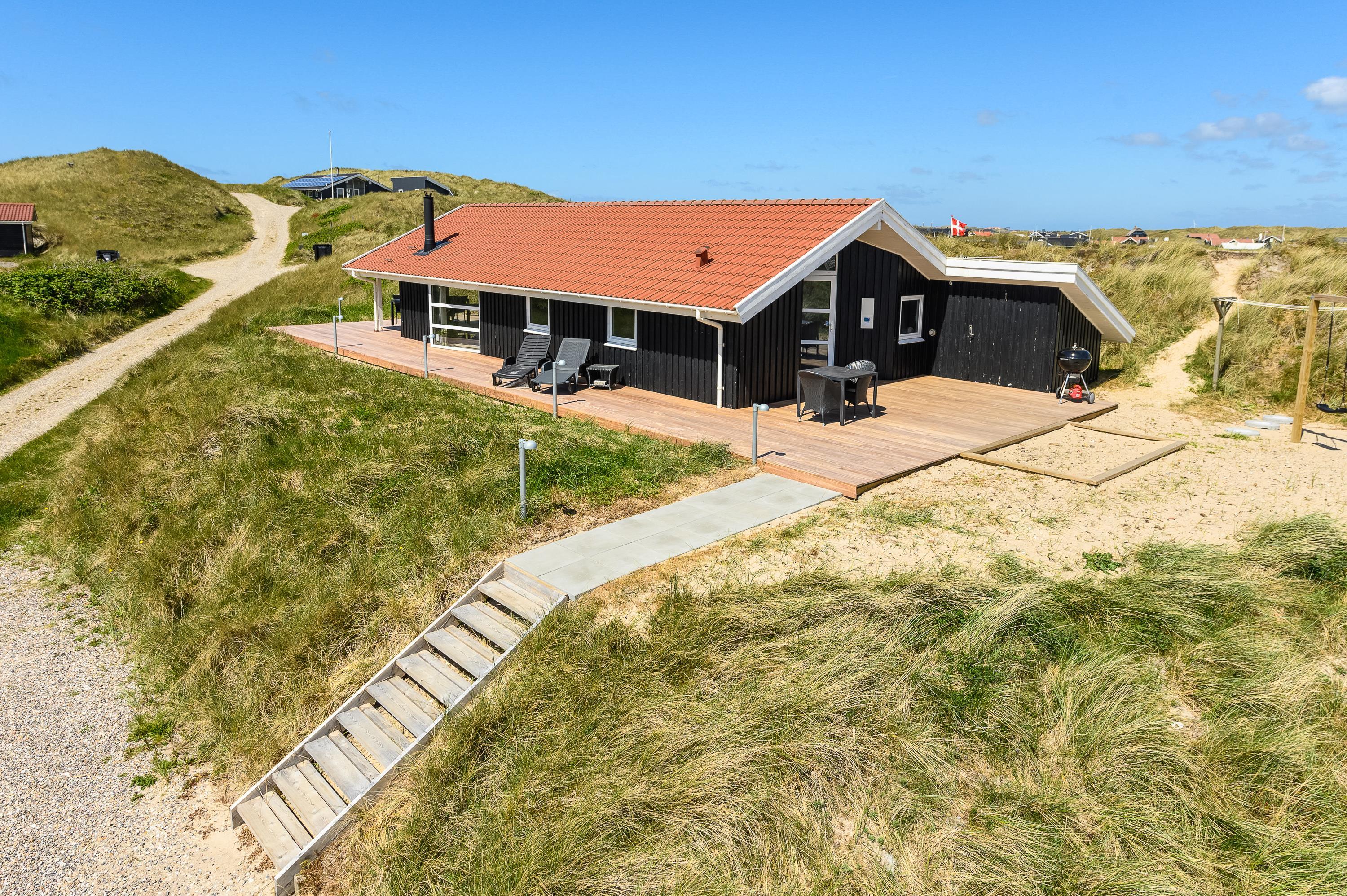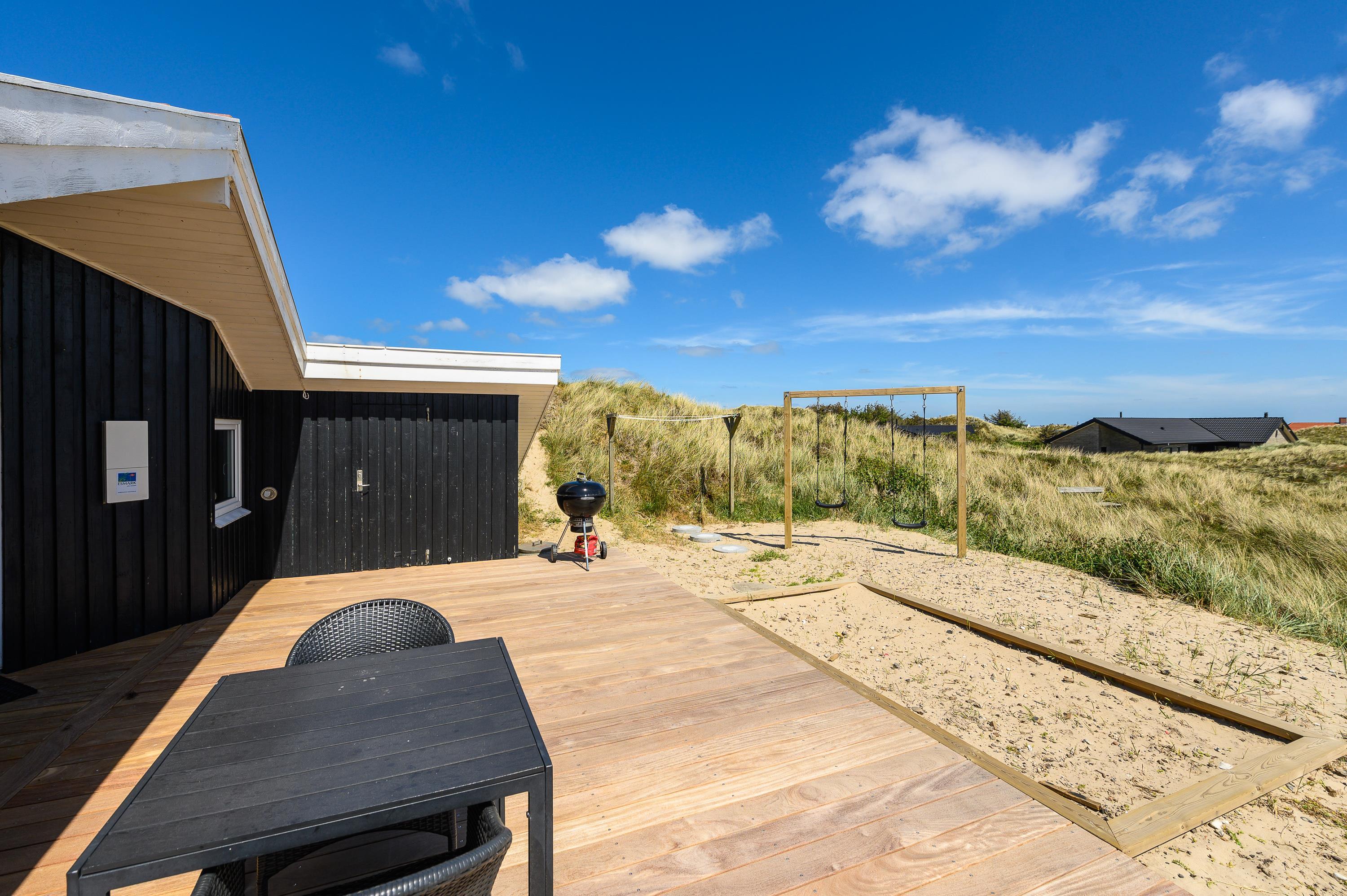 Dette skønne feriehus i Årgab, som er blevet renoveret i 2019, er et godt valg til familien, som ønsker velvære i huset og kort afstand til stranden. Huset er flot beliggende på en kuperet klitgrund og der er skønne træterrasser omkring huset, så solen kan nydes dagen lang. Vesterhavet kan høres og duftes fra terrassen, og det giver en skøn velvære og ro i sjælen.