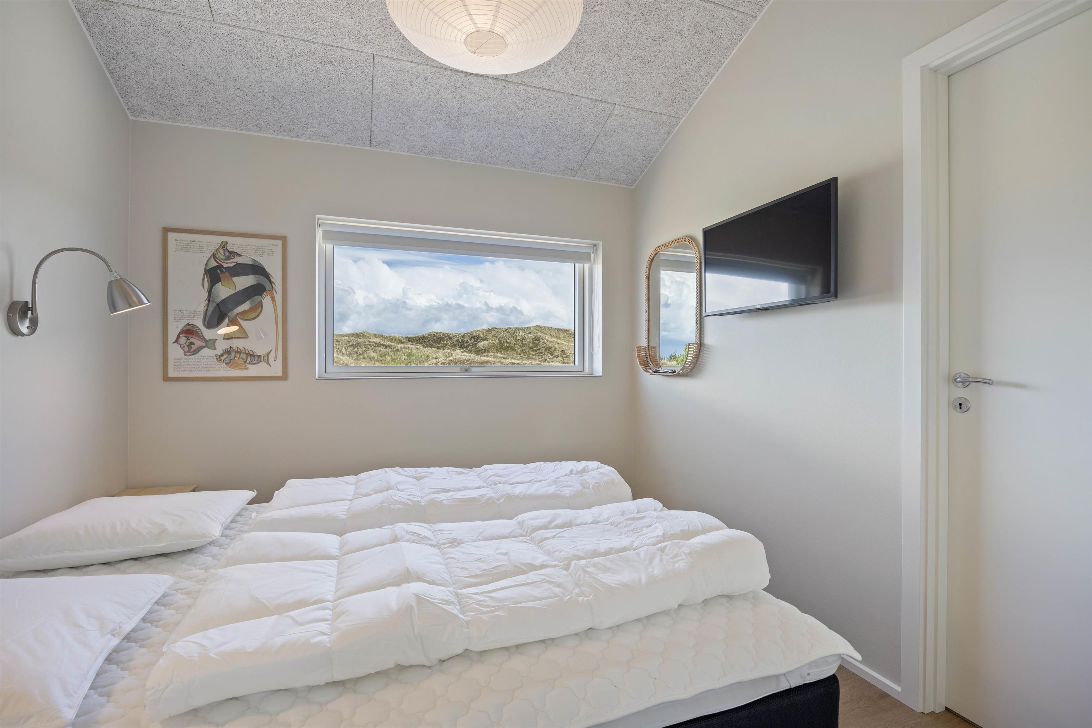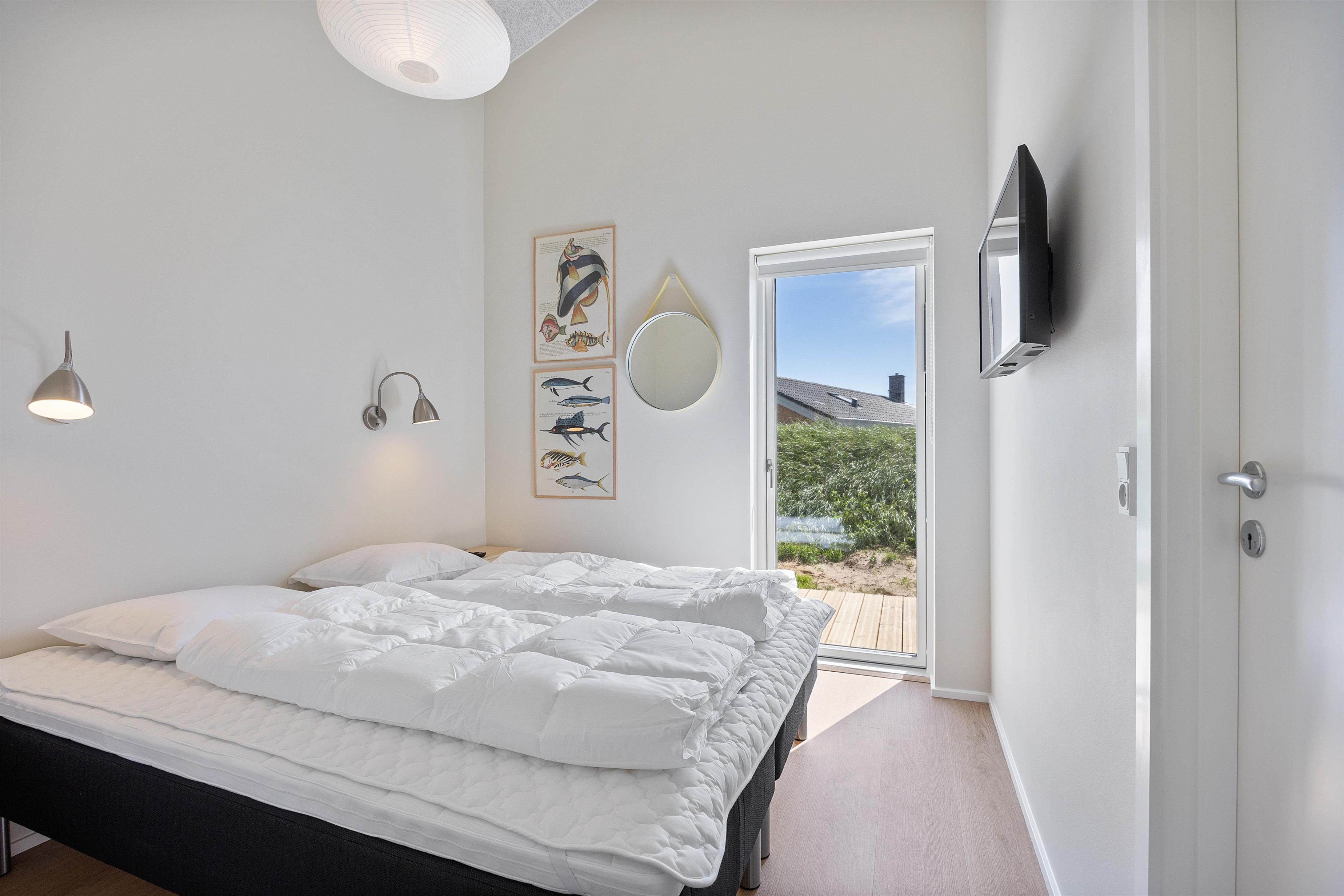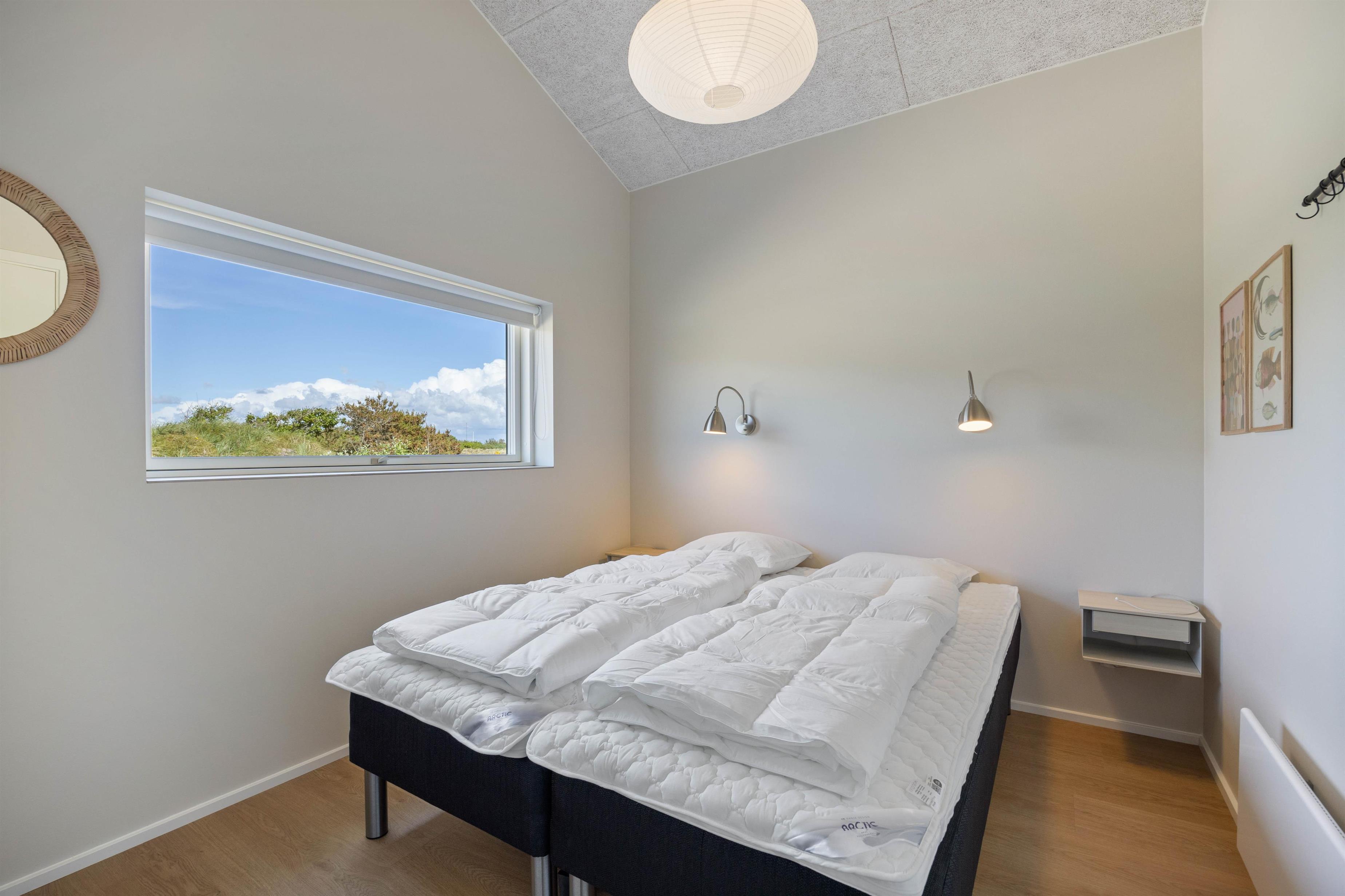 Efter en dejlig dag kan I finde til ro i en af sommerhusets 3 soverum, hvor der i alt er 6 sovepladser. Hvert soveværelse har sit eget badeværelse med gulvvarme, som gør morgenstunden ekstra komfortabel - her er der plads til, at alle kan starte dagen i eget tempo, uden at skulle dele badeværelse.