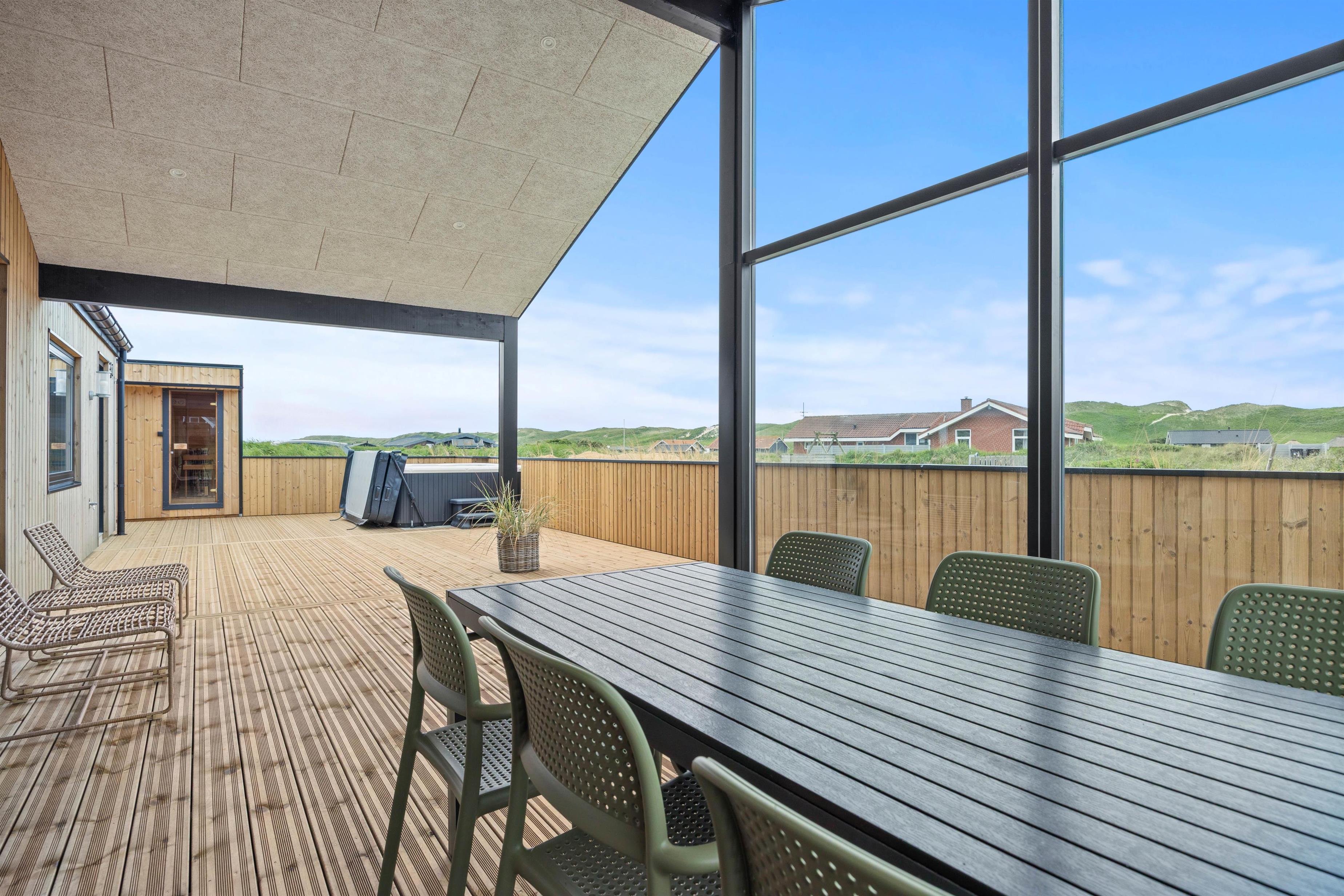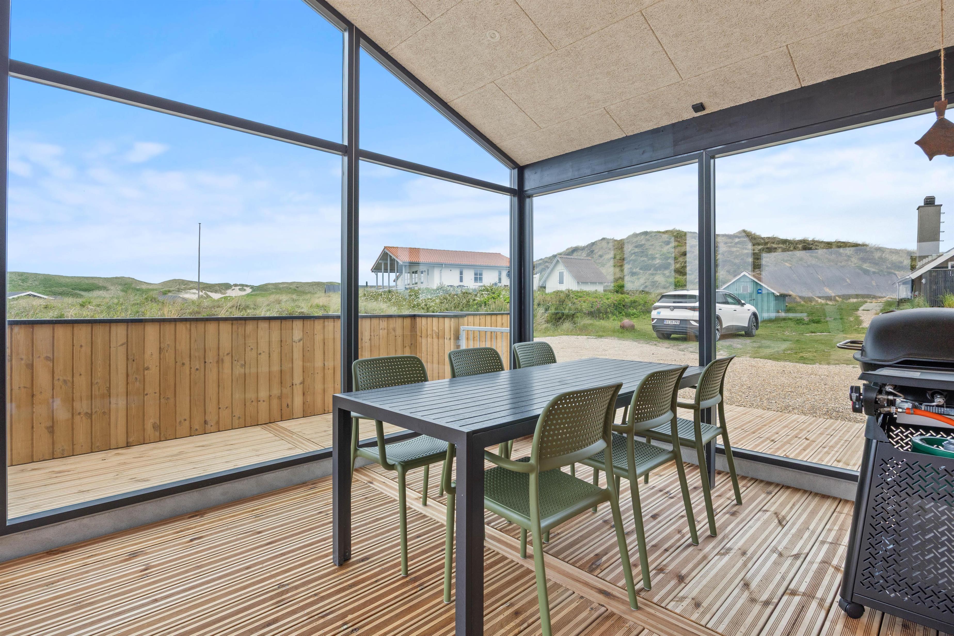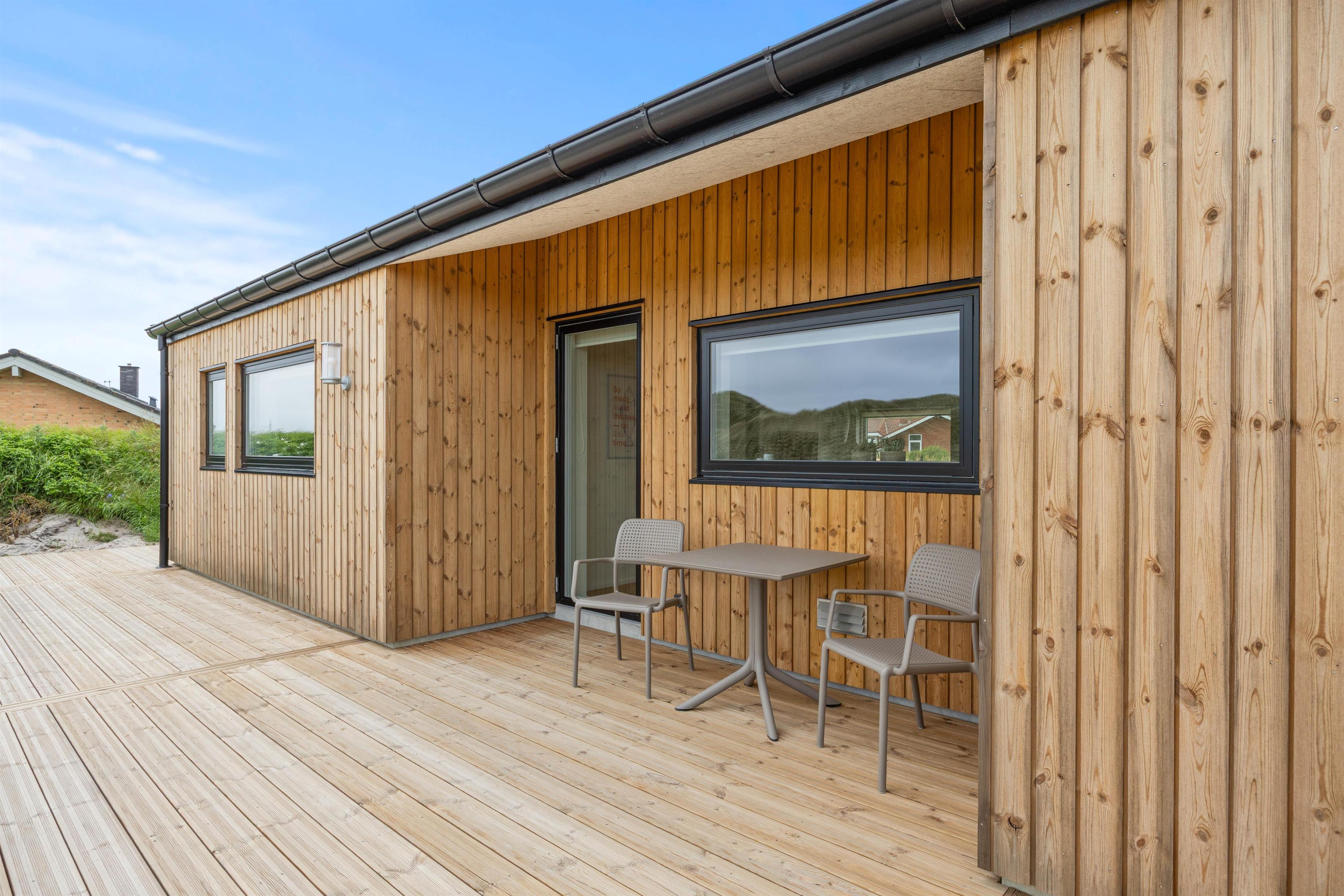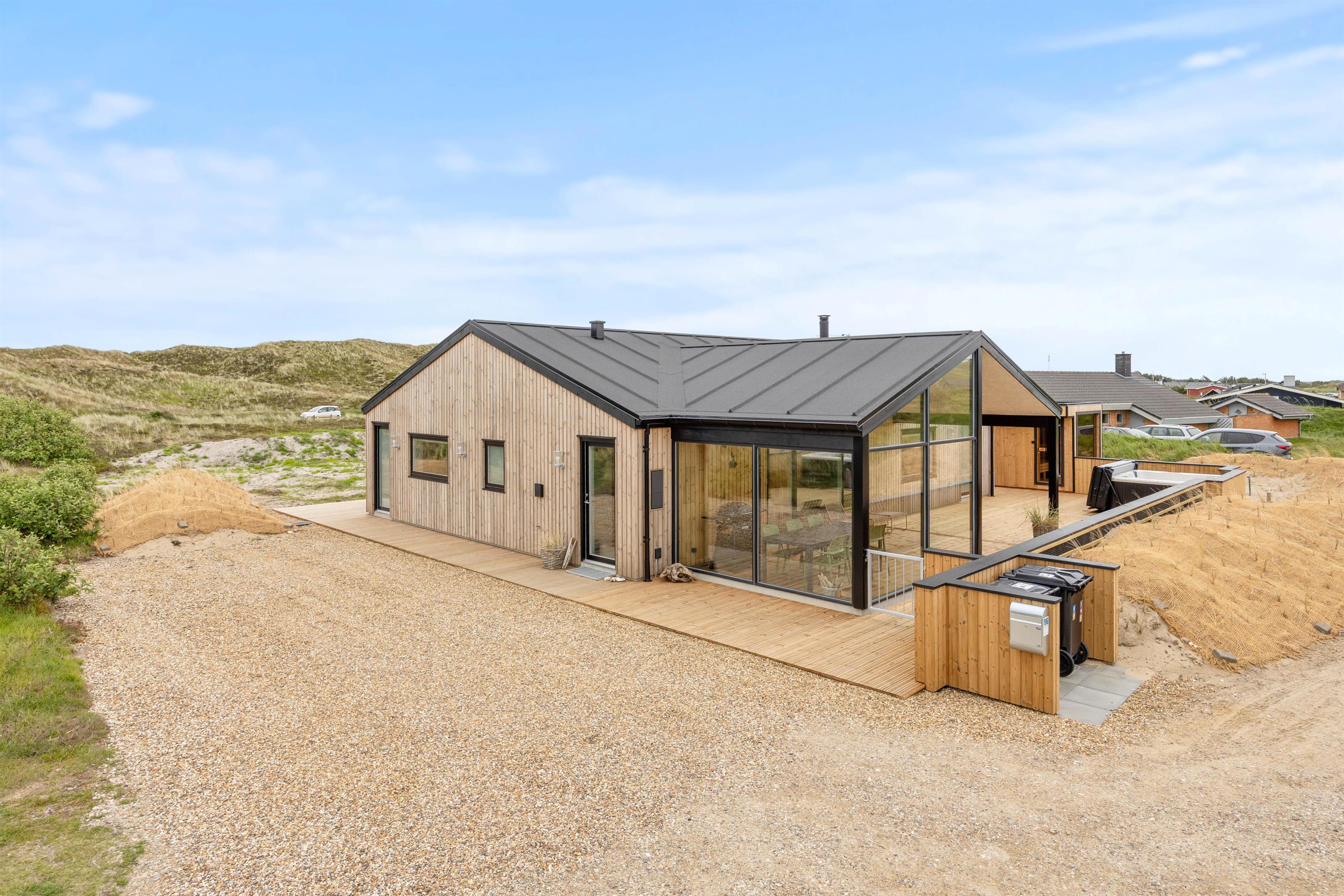 Dette skønne sommerhus, som er bygget i 2025, har alt, hvad I har brug for til en afslappende ferie. Her er plads til 6 personer og 2 hunde, så hele familien – inklusive de firbenede – kan holde en god og hyggelig ferie sammen. Med skønne faciliteter, som udespa, sauna og brændeovn og en beliggenhed kun 250 meter fra det brusende Vesterhav, er rammen sat for en dejlig ferie.