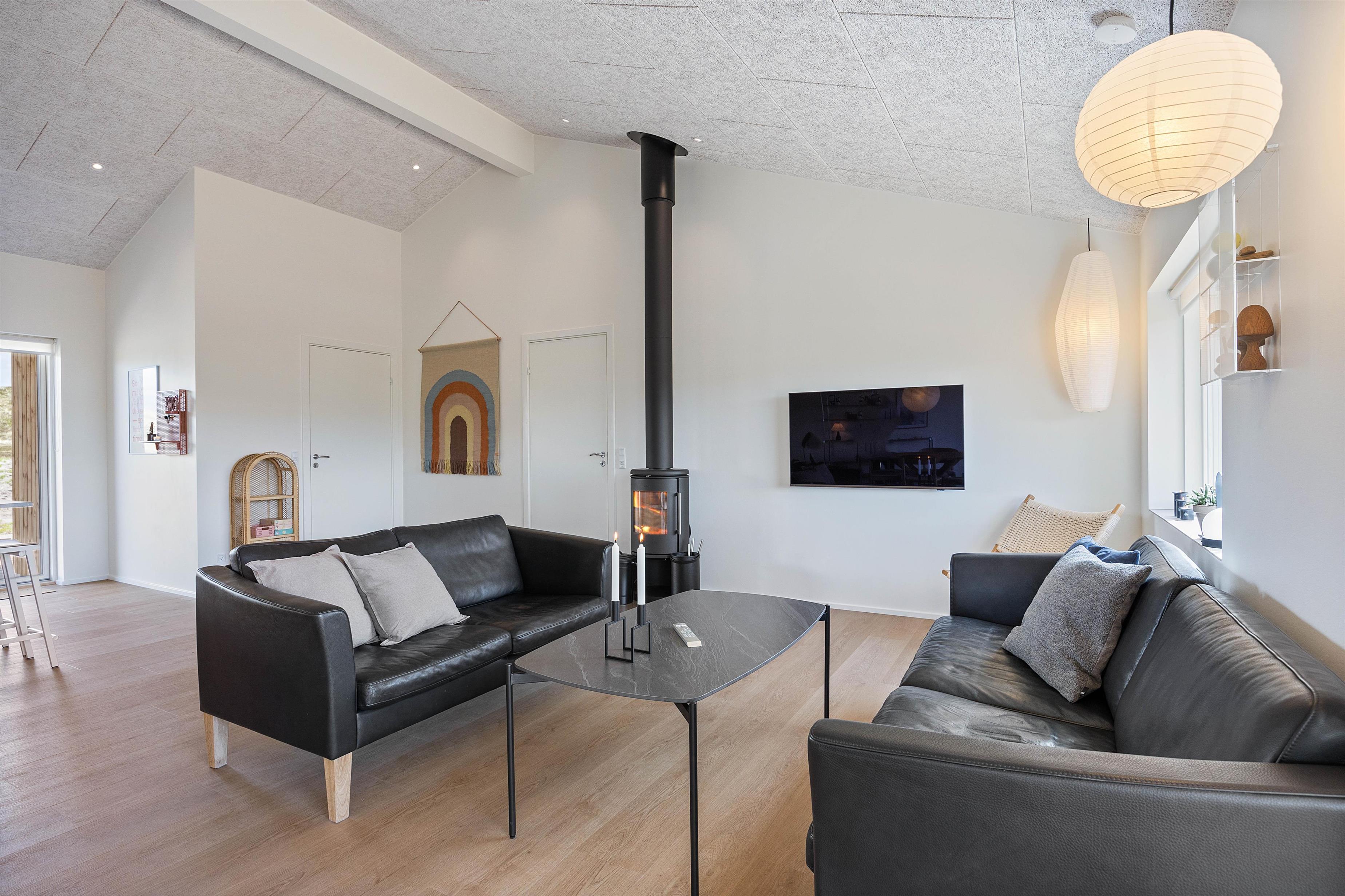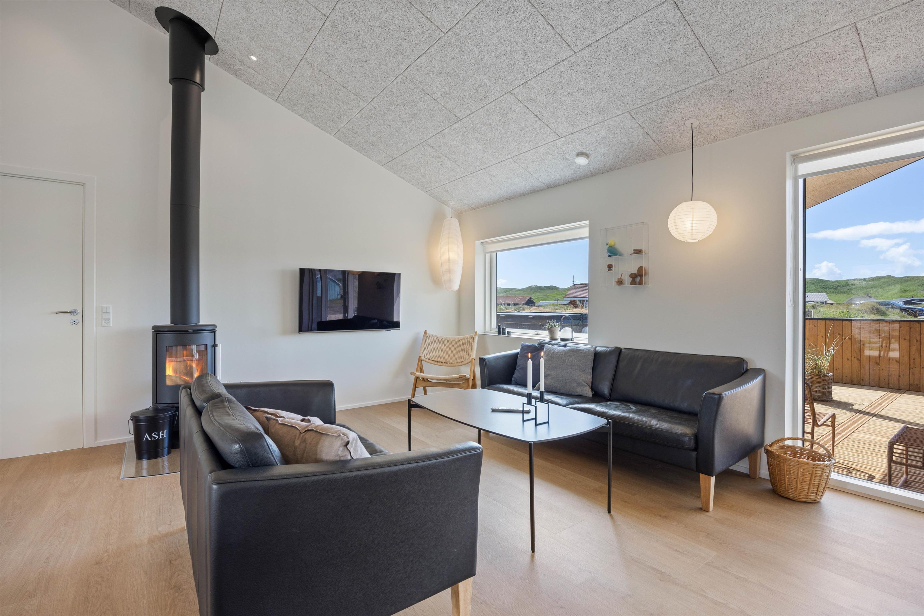 Moderne og hyggeligt sommerhus med brændeovn
