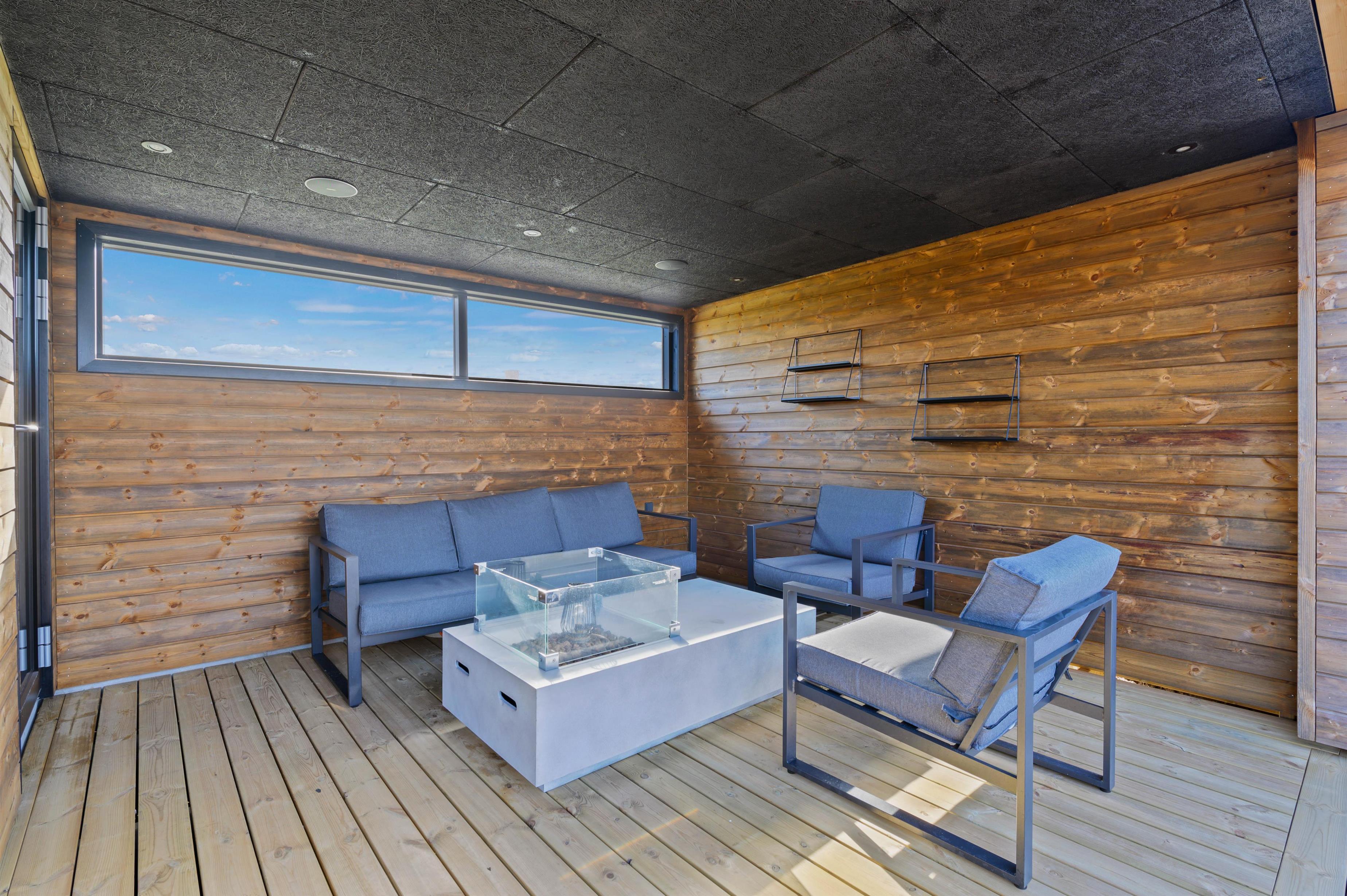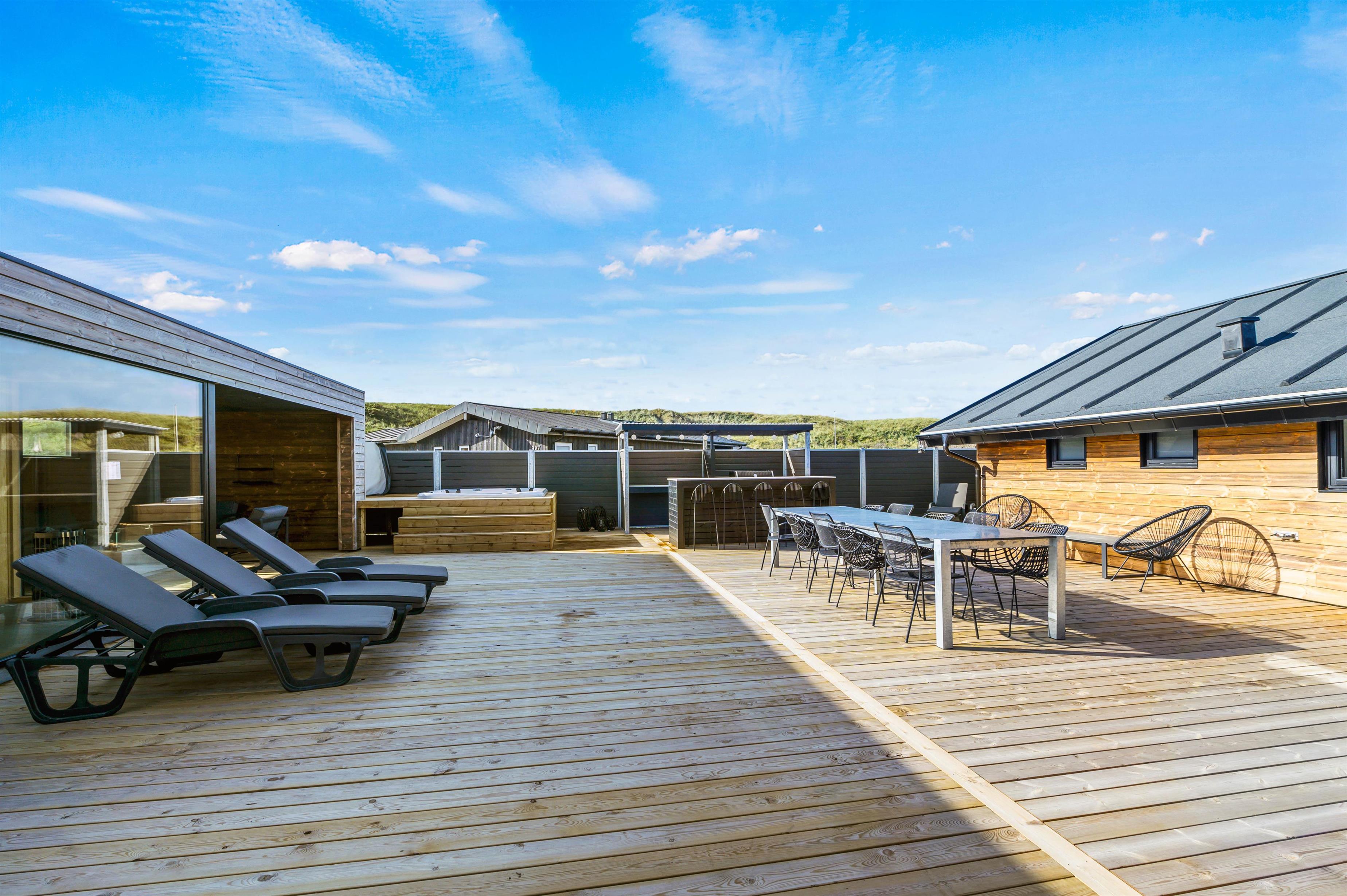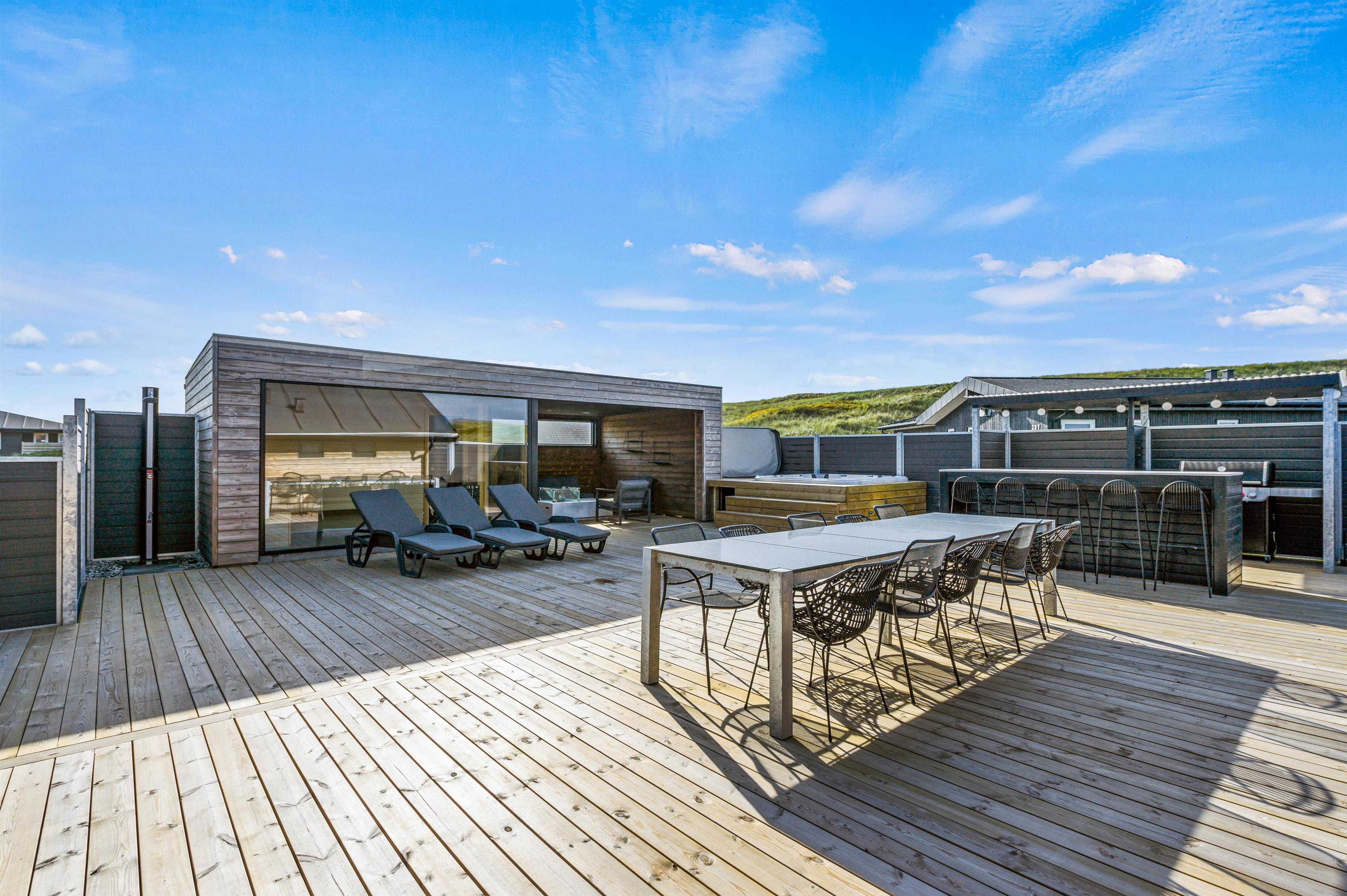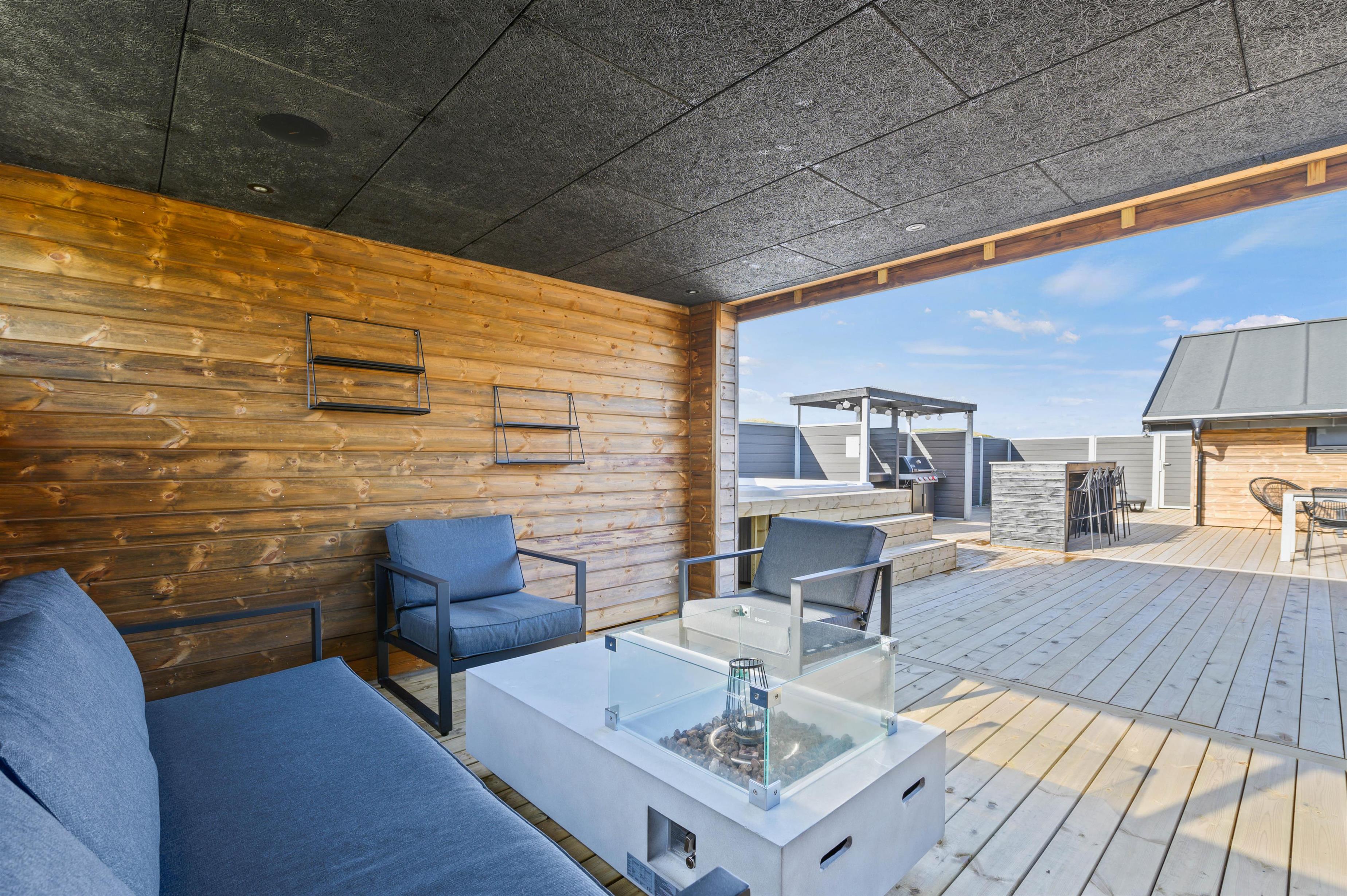 Når aftenen er ved at være omme, kan I hoppe en tur i det udendørs spabad efterfulgt af en tur i den varme sauna på terrassen.
