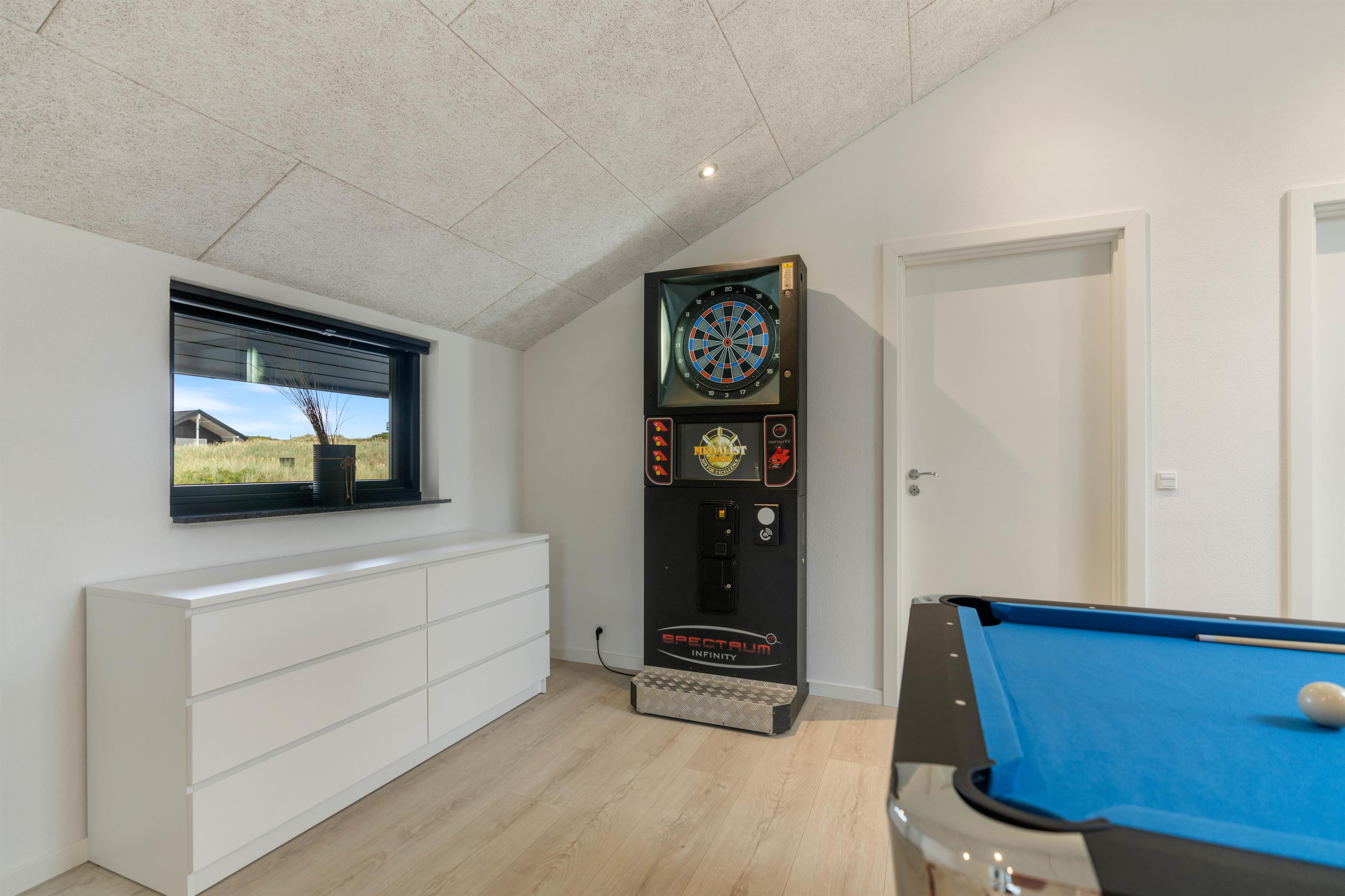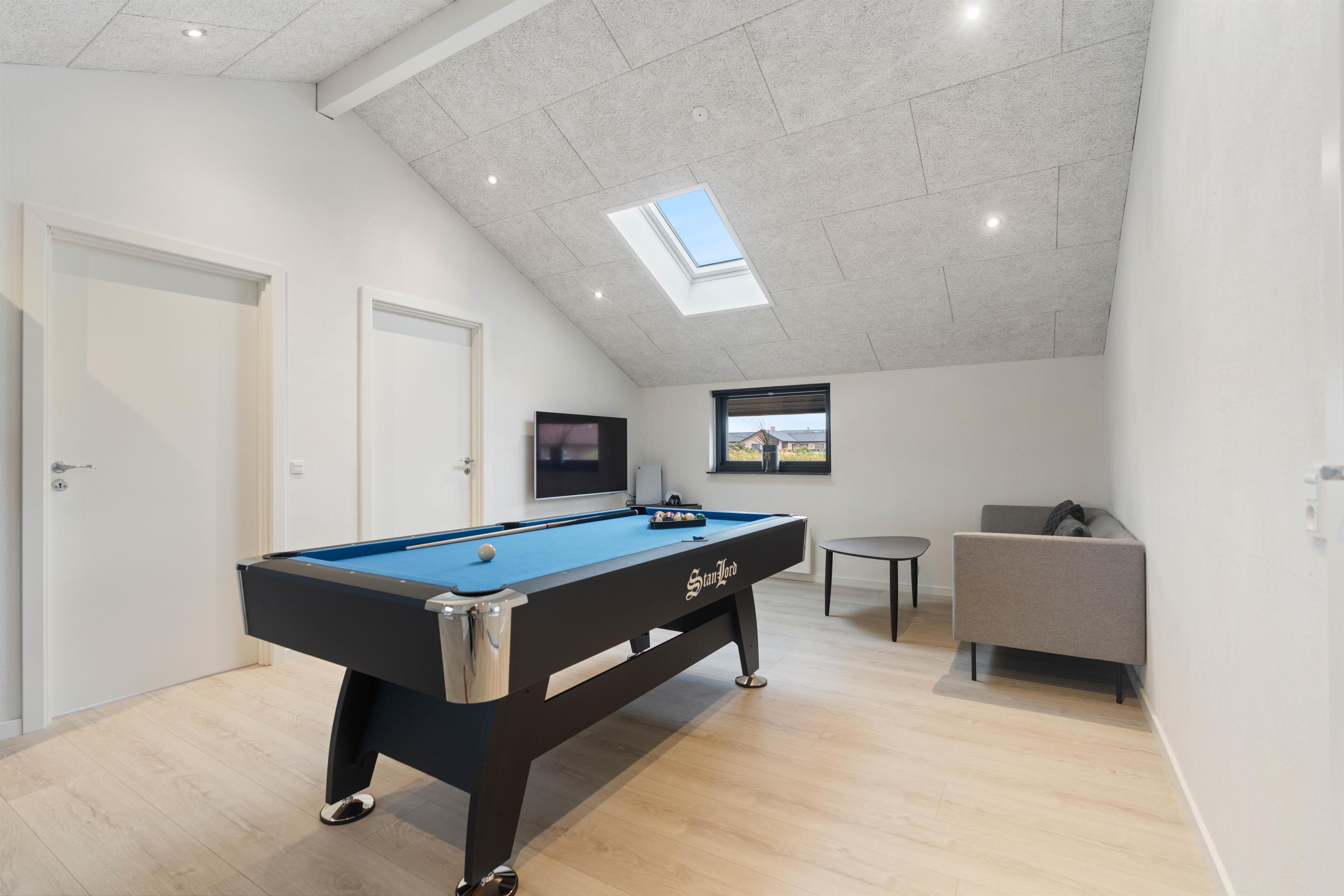 Her er et fint aktivitetsrum med billard, Pro Elektronisk dartmaskine og Playstation 5, så der kan afholdes indtil flere spændende turneringer, hvor I kan finde familiens ultimative mester.
