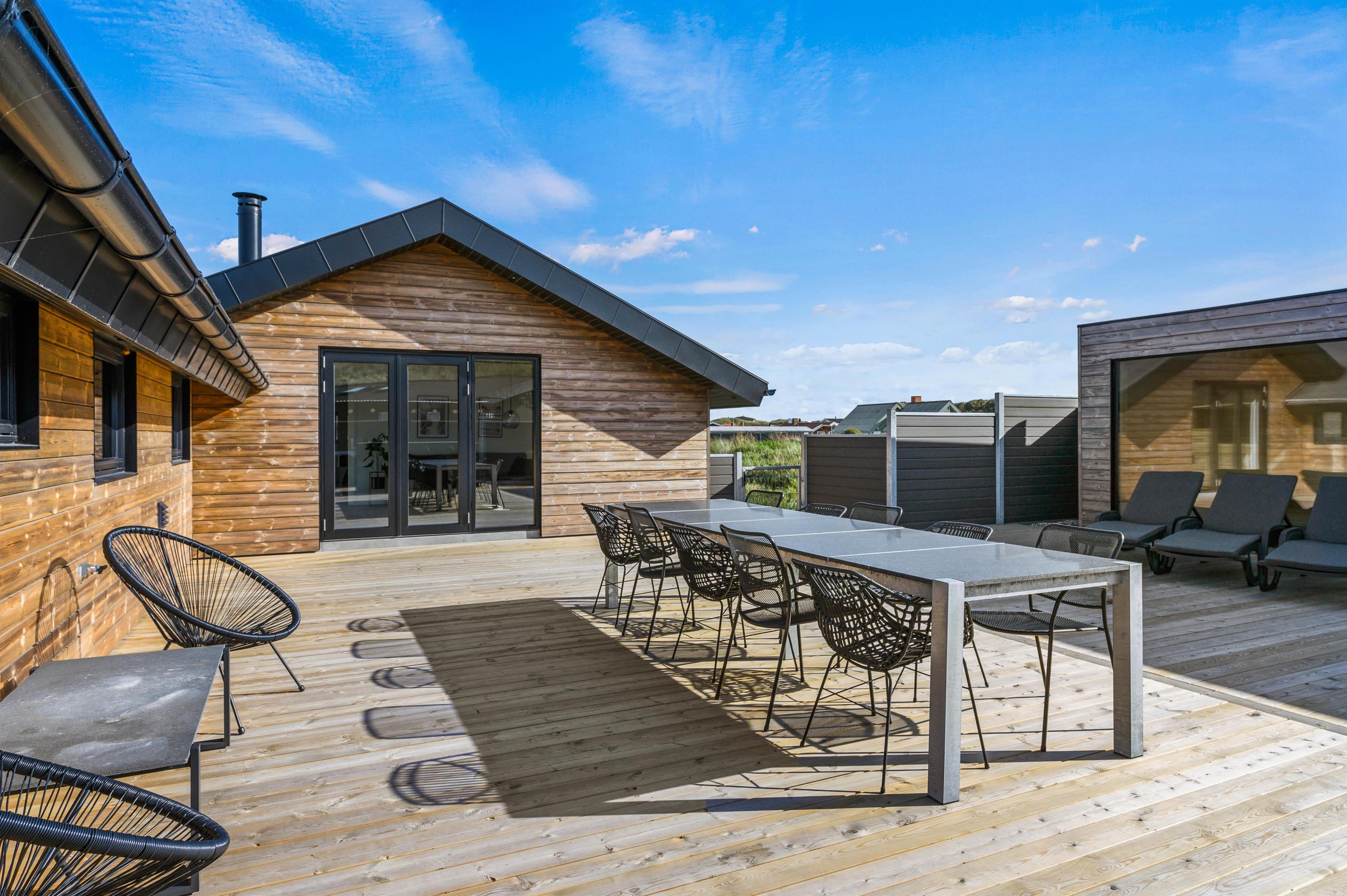 I det store, moderne sommerhus finder hele familien plads til en begivenhedsrig og uforglemmelig ferie.Her er der virkelig kræset for detaljerne - lækre kvalitets materialer og alt lyst og venligt.