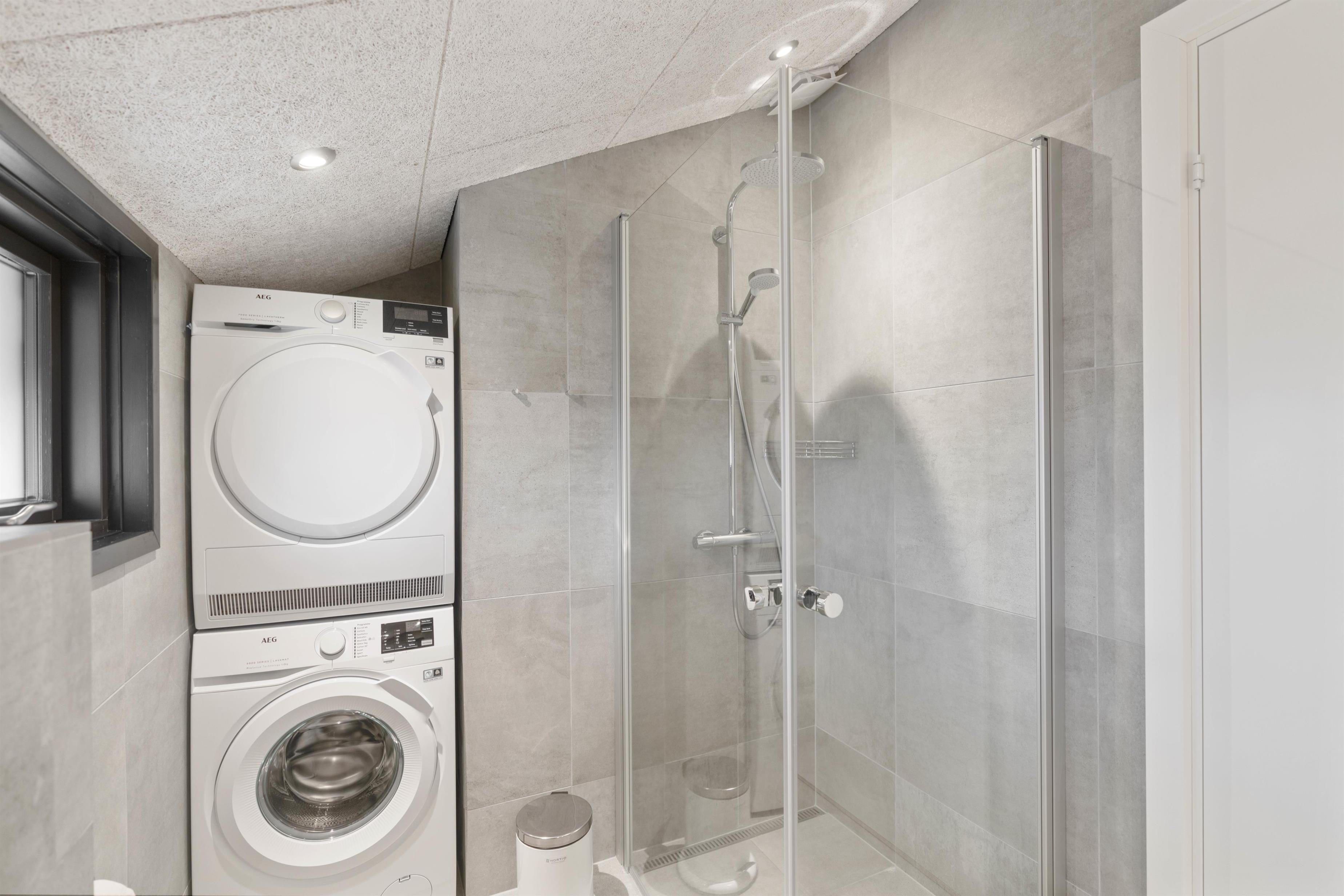 Sommerhuset har 2 badeværelser, begge med gulvvarme, hvoraf der på det ene findes et spabad, der indbyder til velvære og afslapning.