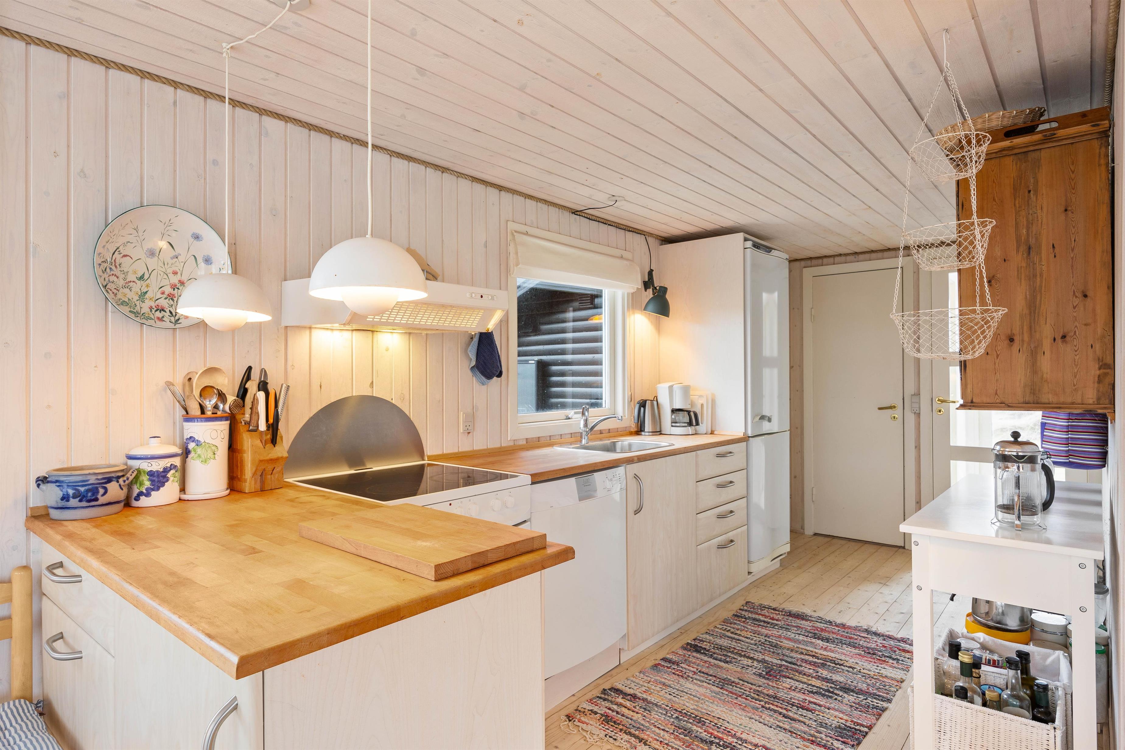 Når I træder ind i dette dejlige sommerhus, vil I blive mødt af en hyggelig stemning, hvor der er lagt op til afslapning foran den knitrende brændeovn. I sommerhus er der også plads til, at der kan blive lavet mad i køkkenet, imens der kører en god film på tv’et.
