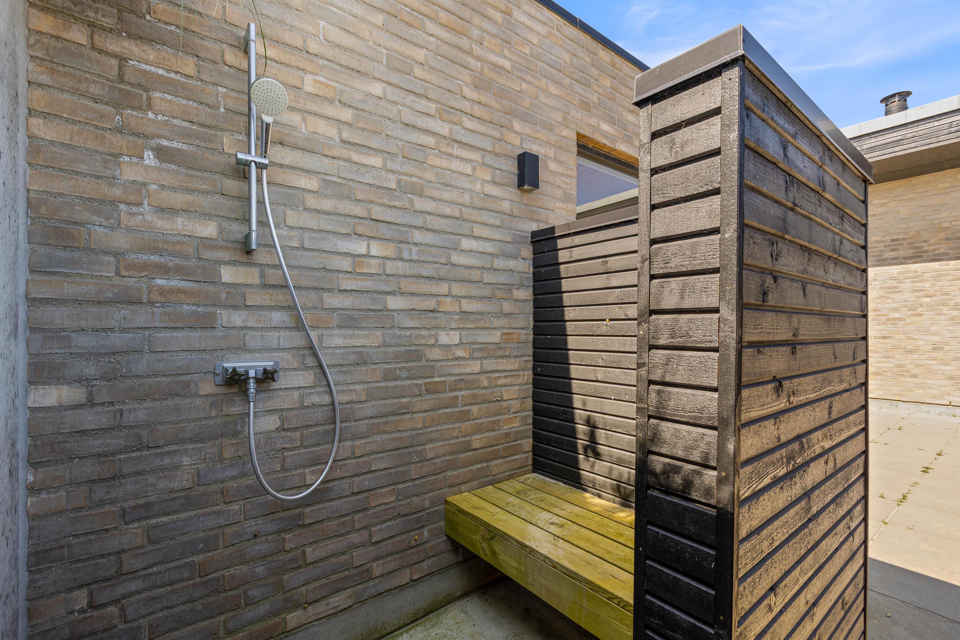 Udearealet ved sommerhuset indbyder til afslapning og velvære. Her kan I hoppe en tur i den boblende udespa efterfulgt af afslapning i den varme udesauna. Har I været en tur ved vandet, kan I skylle sandet af fødderne under den udendørs bruser.