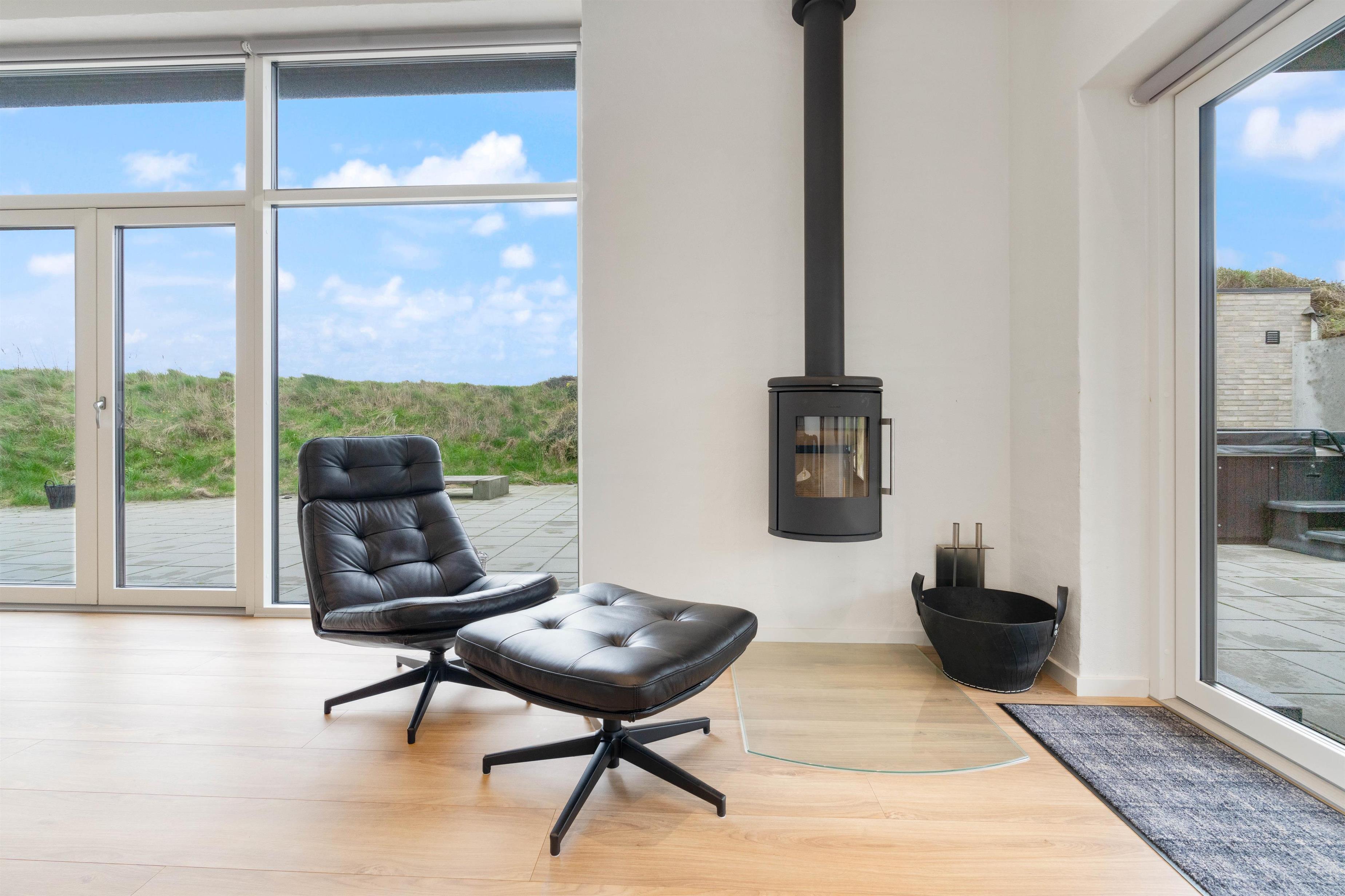 I stuen kan I tænde op for brændeovnen og nyde udsigten over sommerhusområdet i Årgab. I kan med fordel også benytte jer af den energibesparende varmepumpe. På en blæsende efterårsdag kan I holde filmaften med popcorn og kølige drikkevarer. I sommerhuset er der danske tv-kanaler.