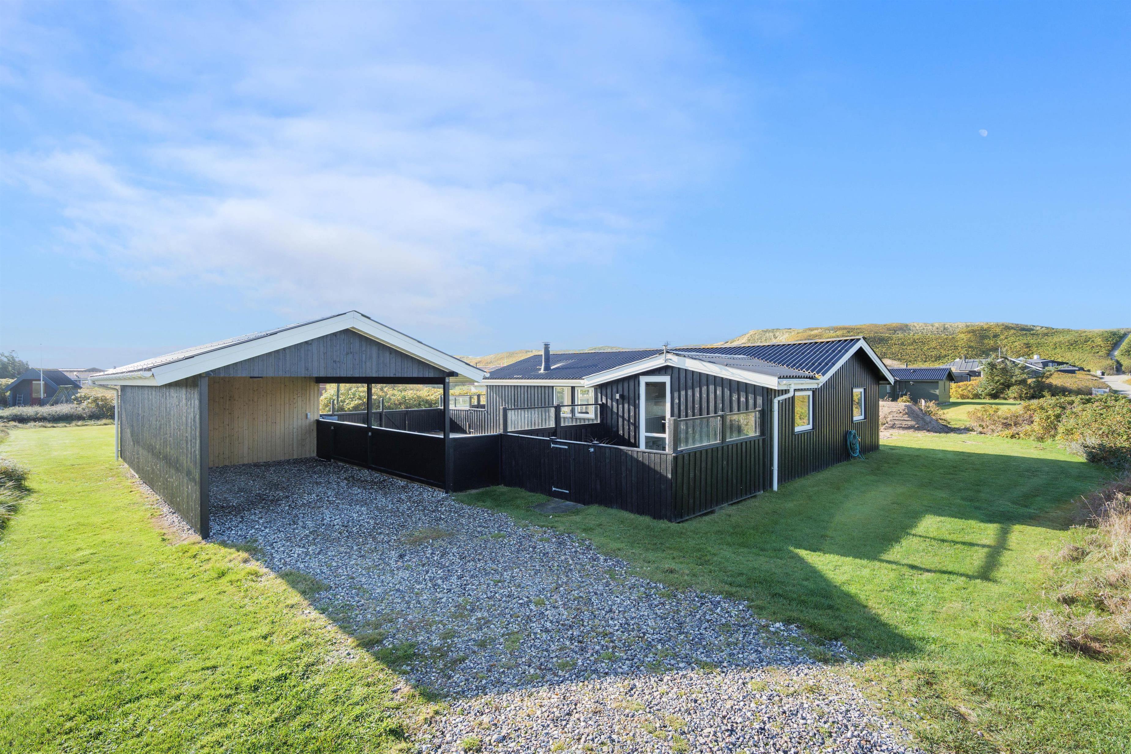 Bilen kan parkeres i carporten, som er ved feriehuset.