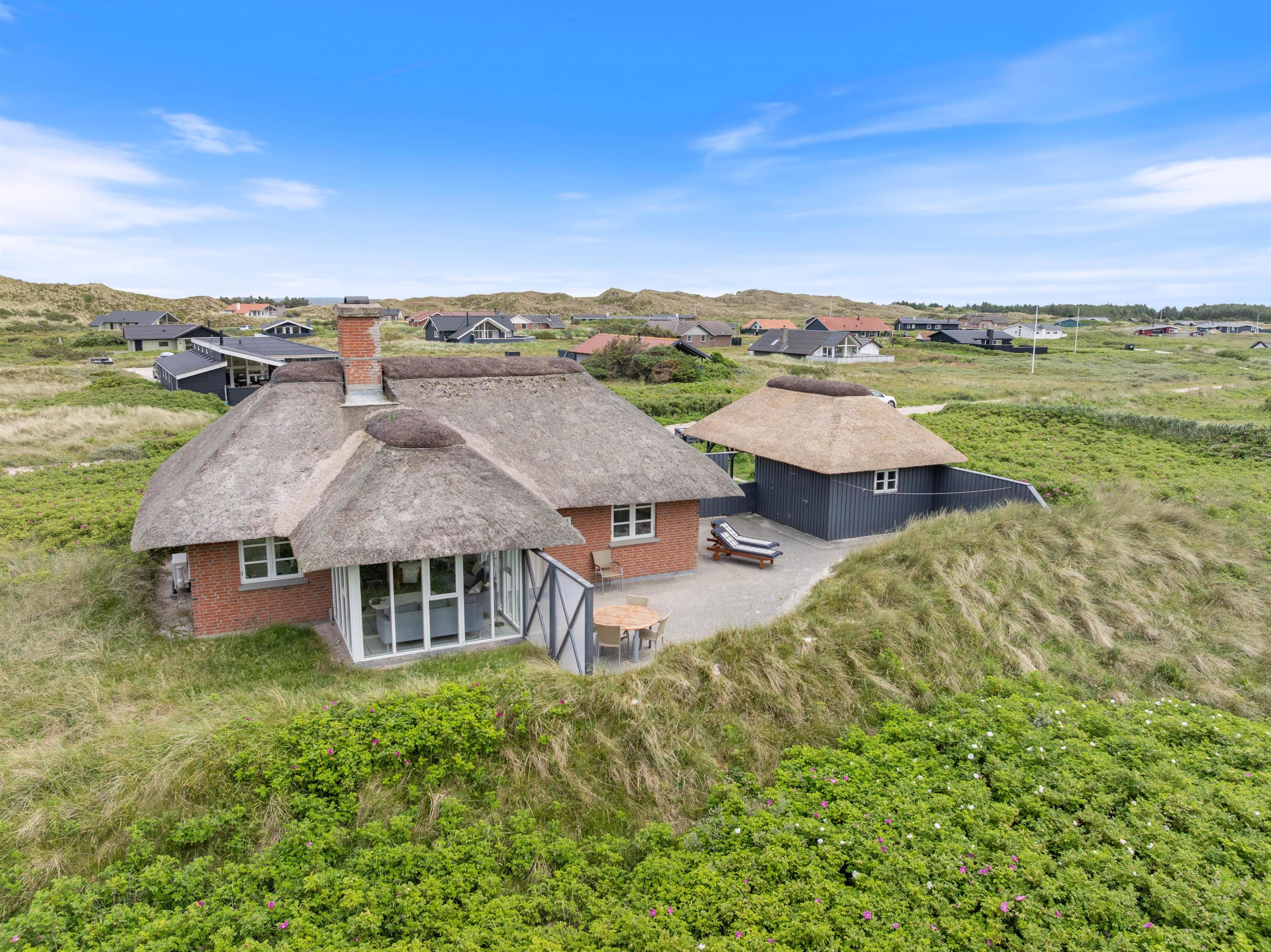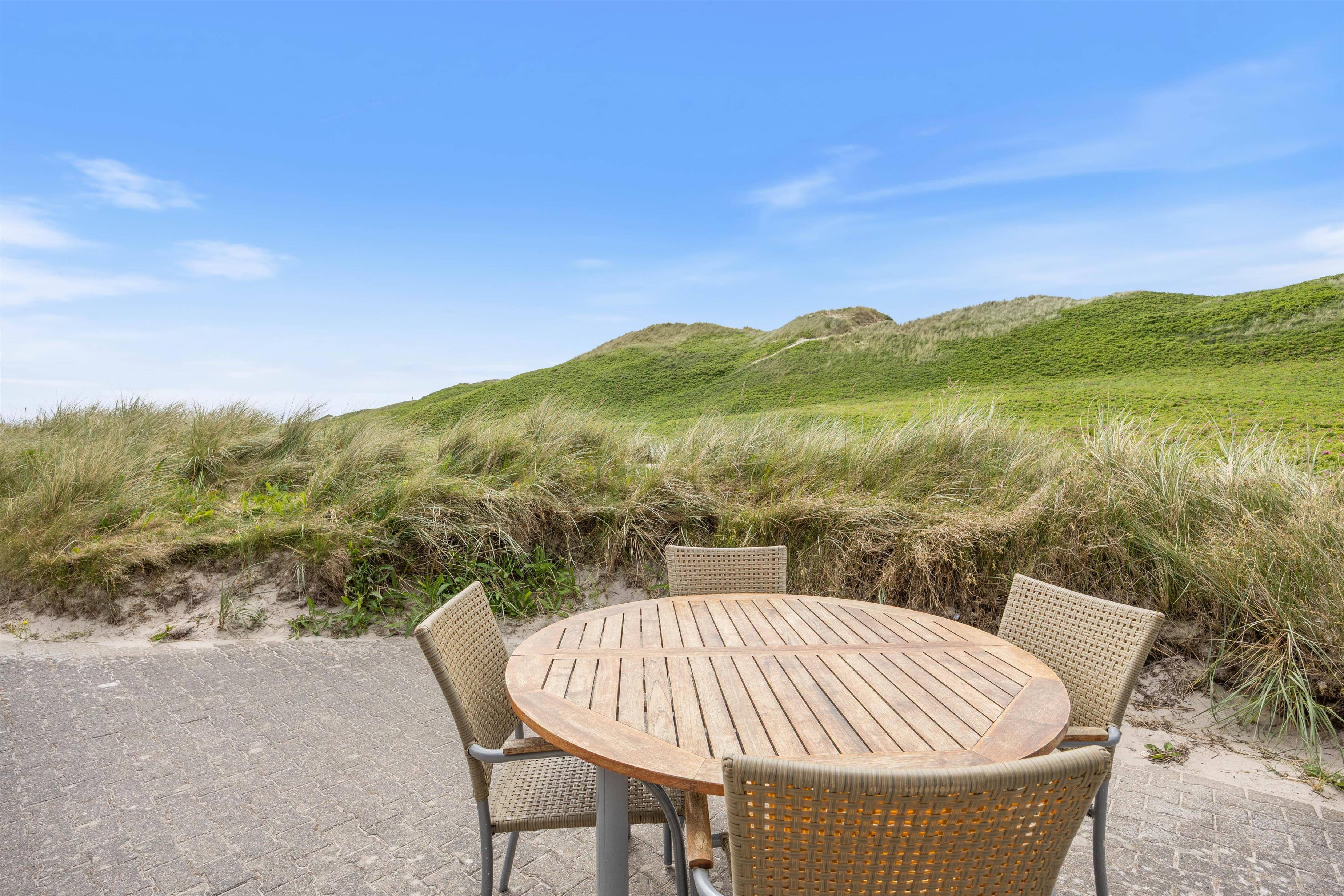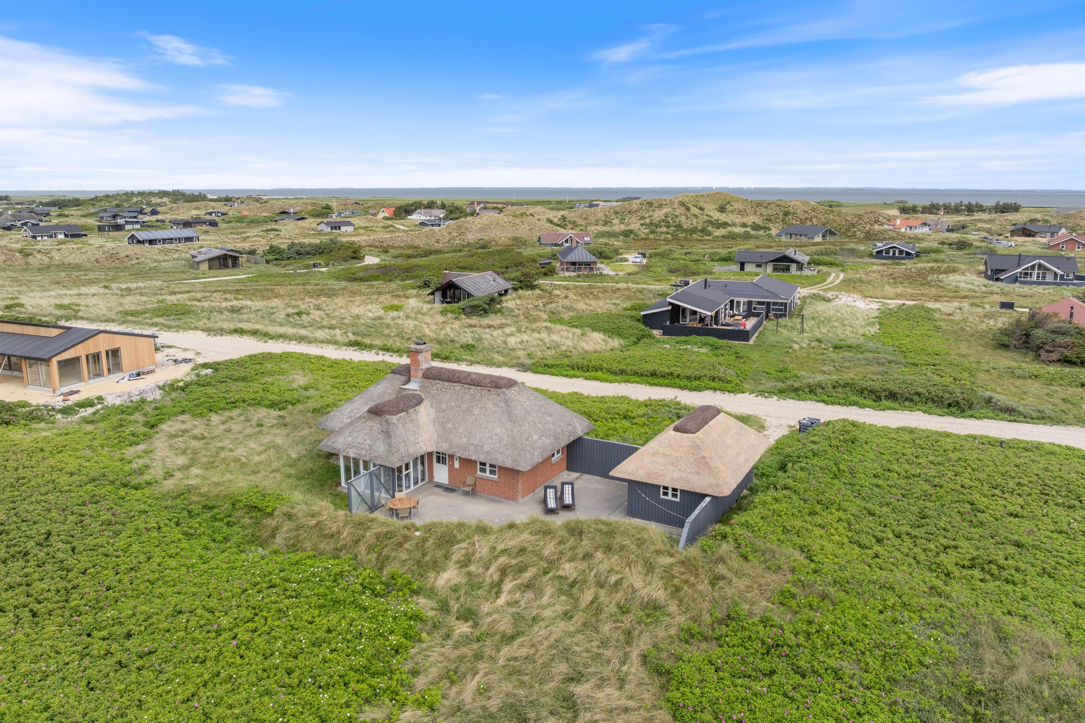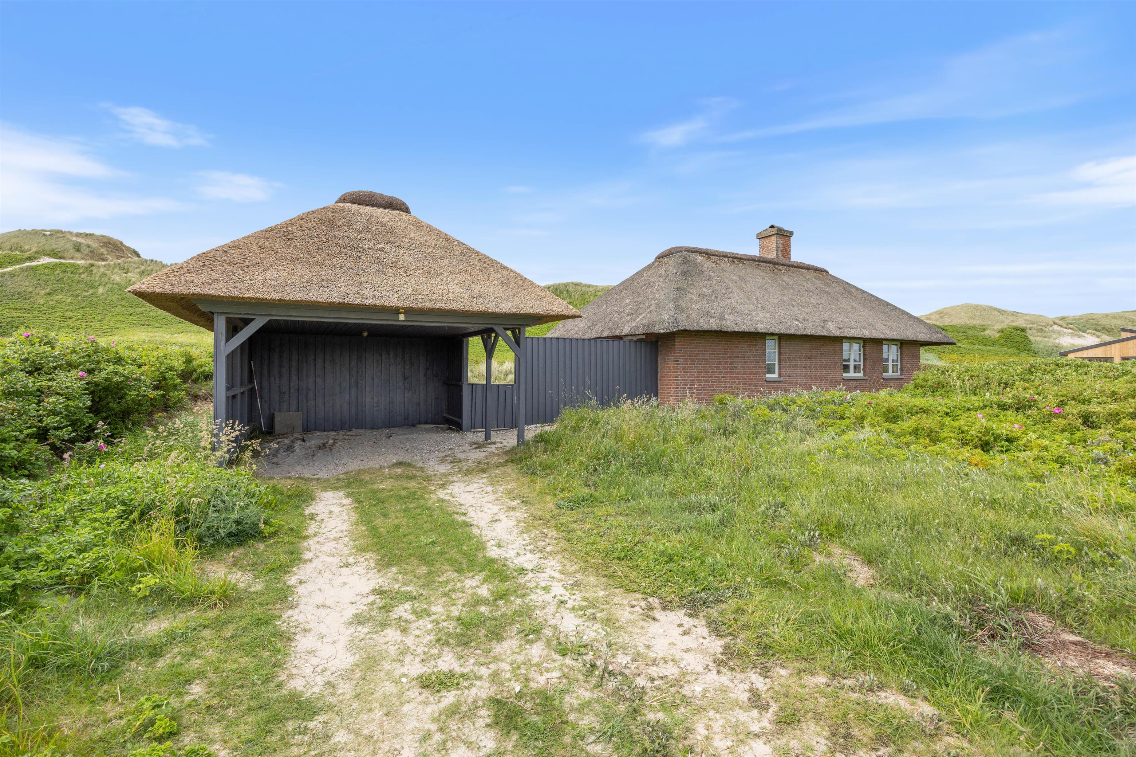 Udenfor venter en skøn naturgrund, hvor I kan nyde den friske vesterhavsluft på terrassen. På den afskærmet og åbne terrasse kan I også grille og nyde måltiderne i solen eller i læ for vinden. Terrassen er det ideelle sted til afslappende stunder med en god kop kaffe eller et glas vin, mens I lytter til havets brusende lyde i baggrunden.