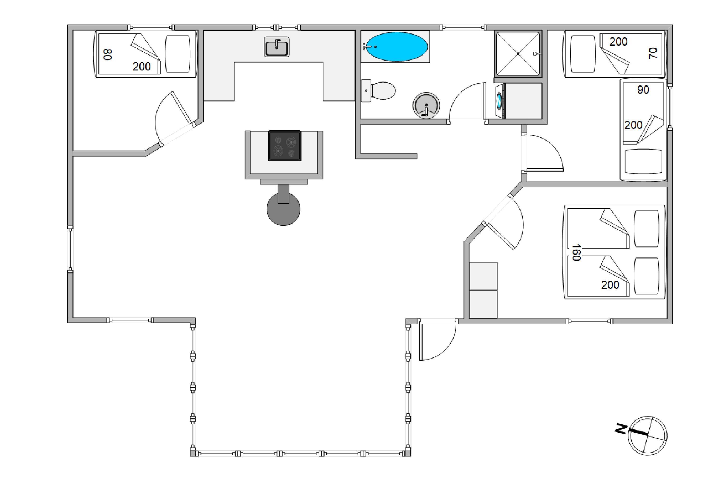 Med det samme I træder ind i køkkenet og stuen, vil I mærke en dejlig rummelighed, da der er højt til loftet. Køkkenet er veludstyret med blandt andet opvaskemaskine, så I kan nyde ferien uden at bekymre jer om de praktiske opgaver.