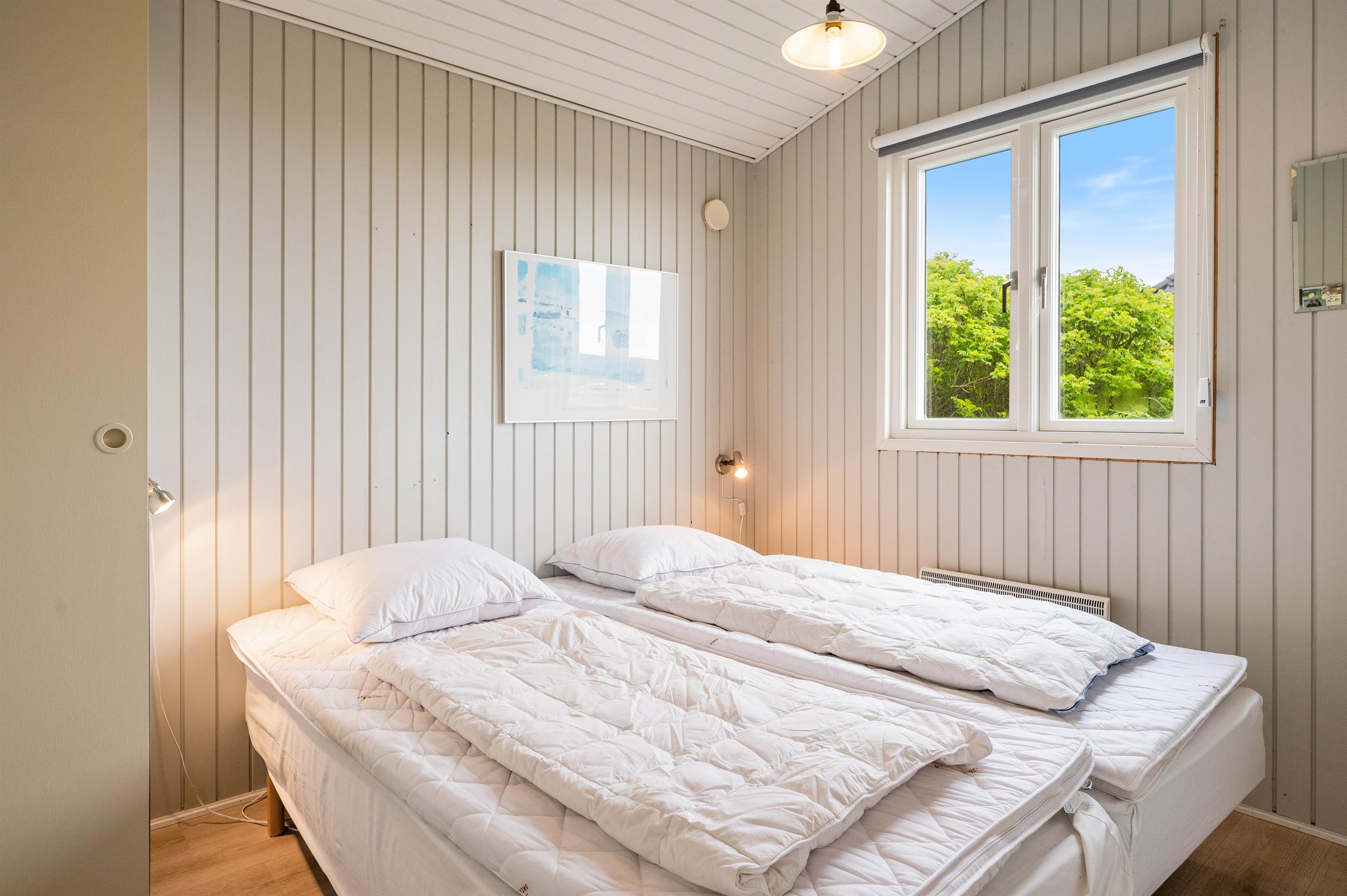 I sommerhuset kan I finde til ro i en af de 2 soverum, hvor der i det ene værelse er en dobbeltseng. Derudover finder I i sommerhuset et badeværelse med gulvvarme, så fødderne ikke kommer til at fryse.