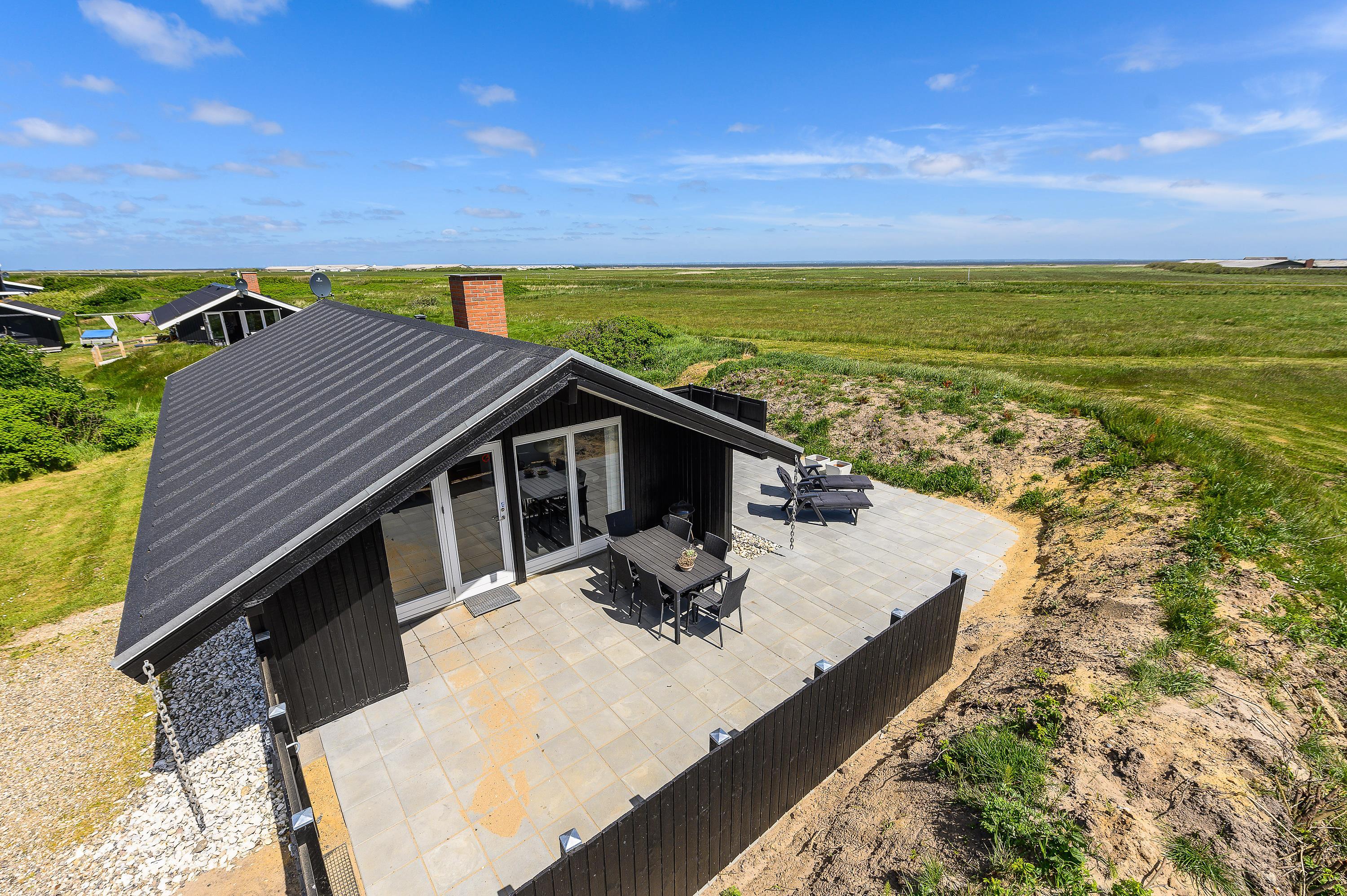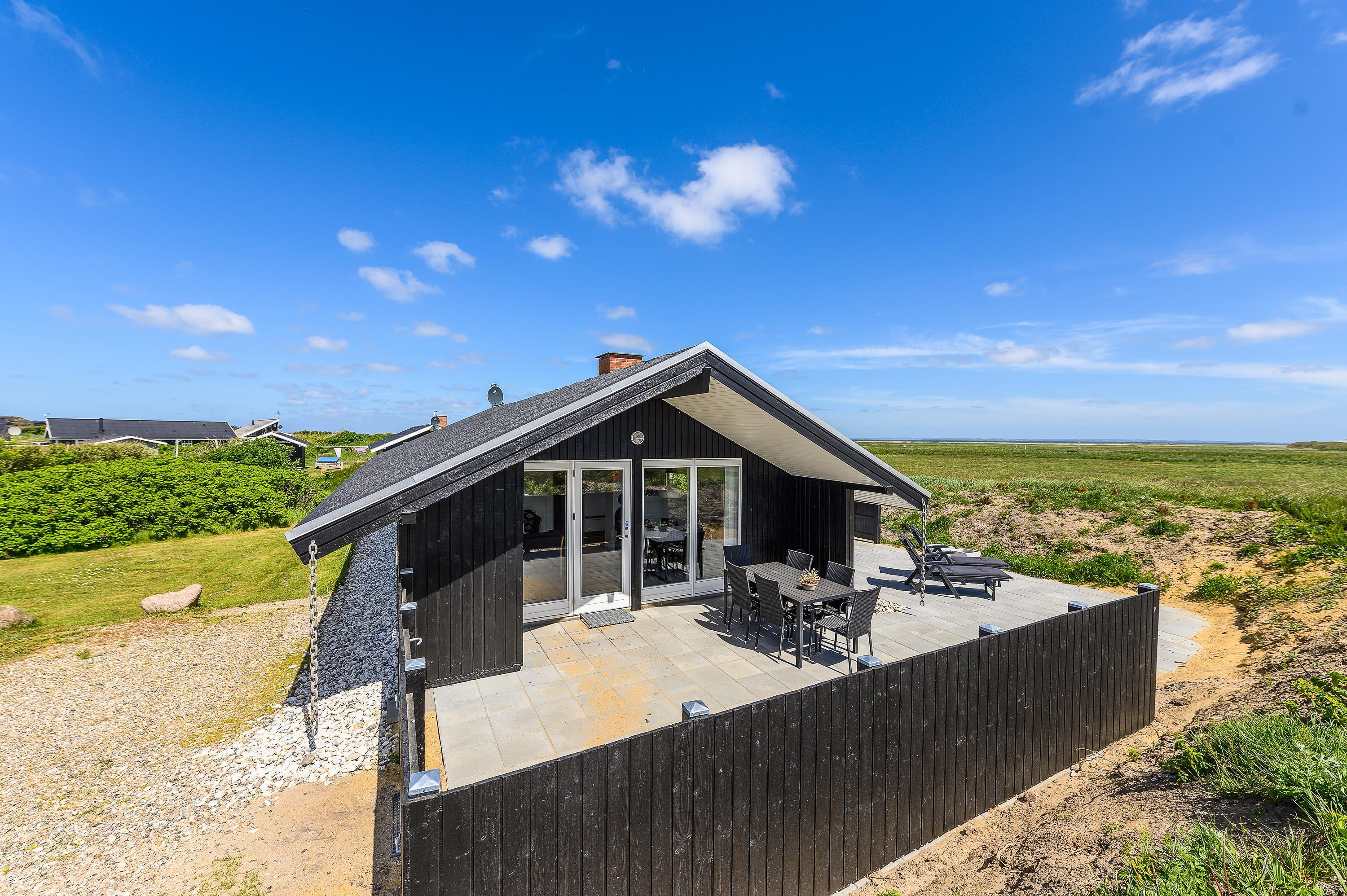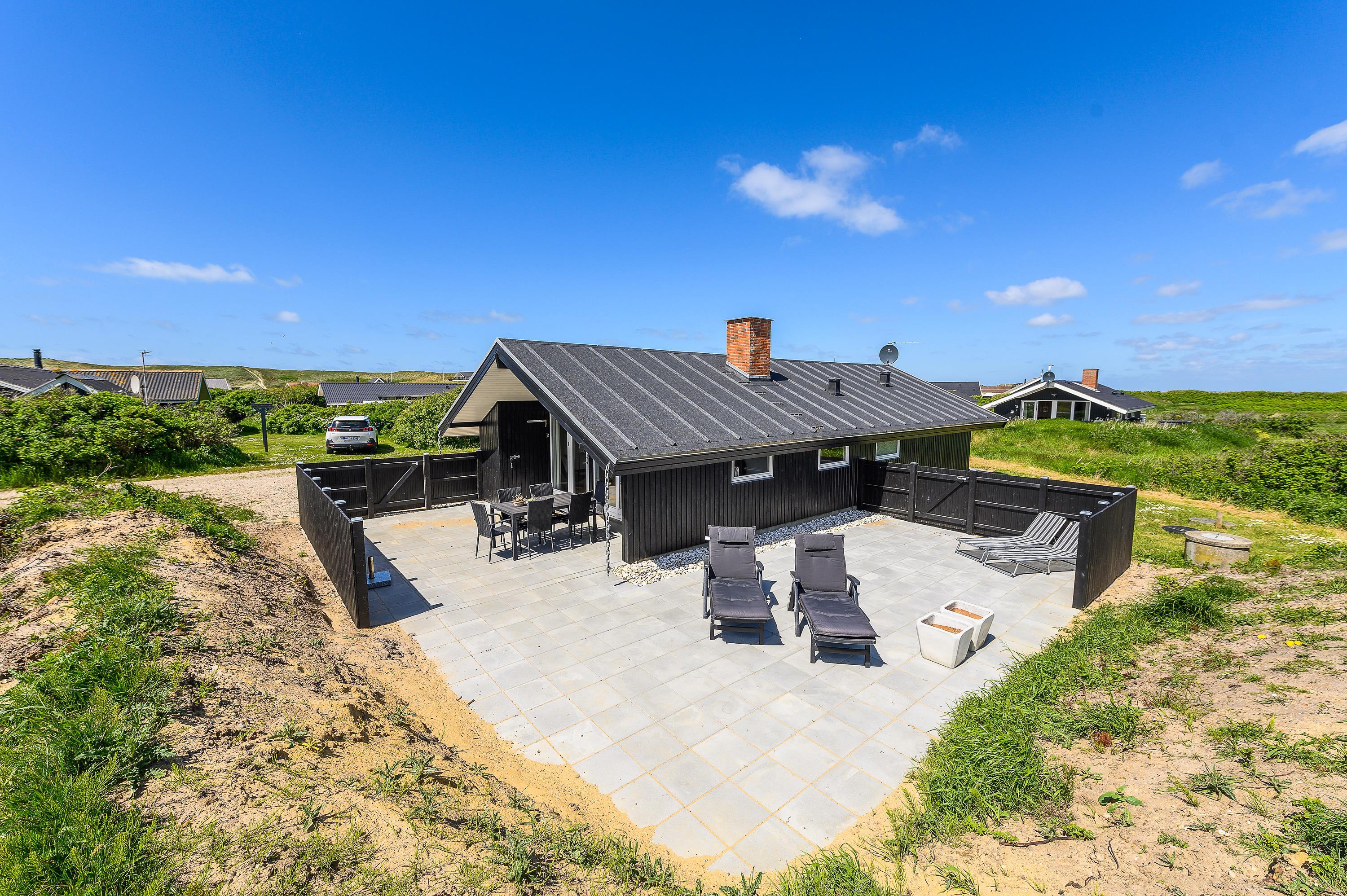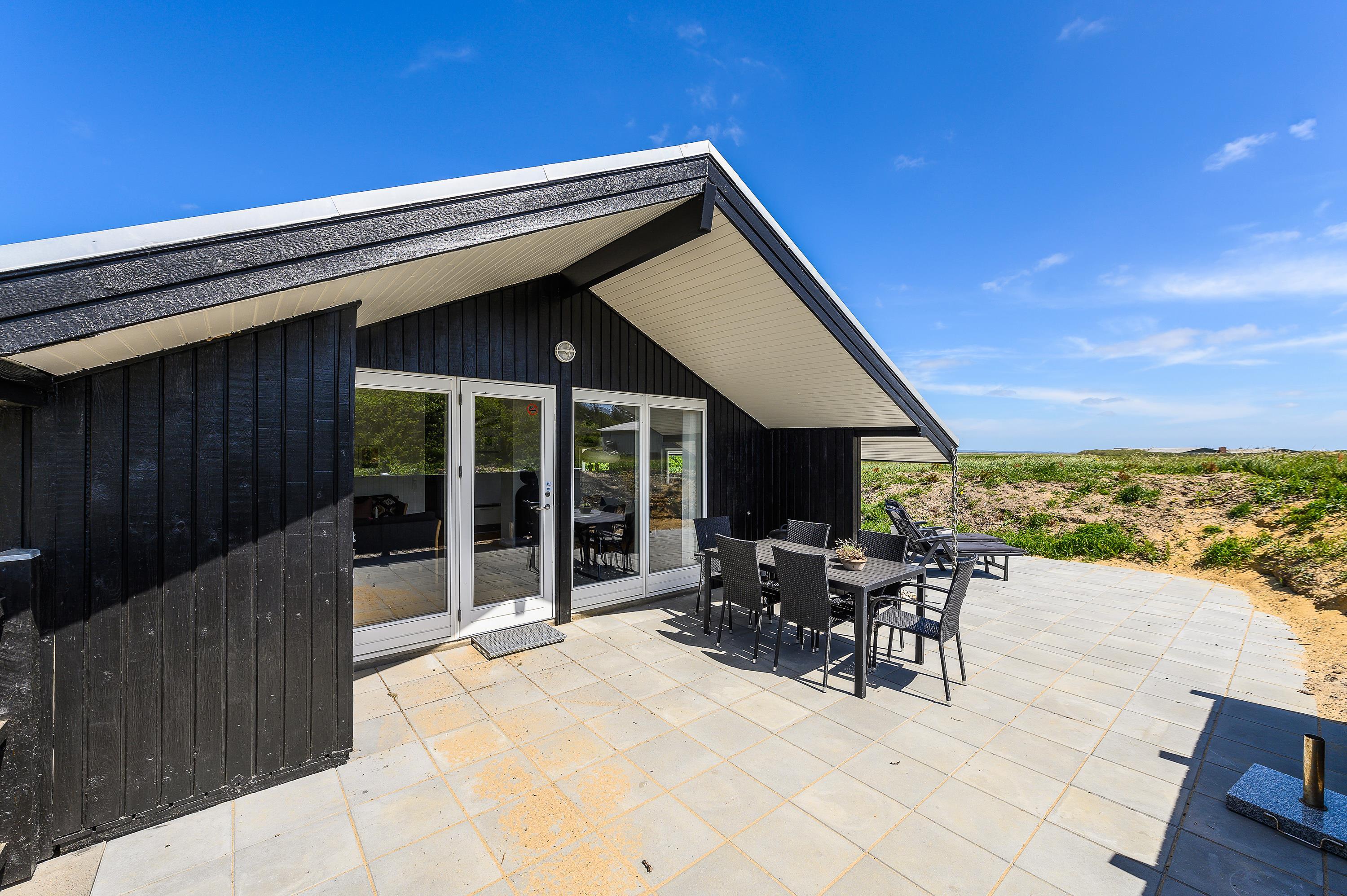 Her på terrassen mod sydvest, kan man her nyde de skønne sommeraftener med lækre grill-middage, solnedgangen og havets brusen i baggrunden. Med kun 300 meter til stranden, er det også oplagt at nyde solnedgangen på stranden. – Det er blot en lille spadseretur over klitterne.