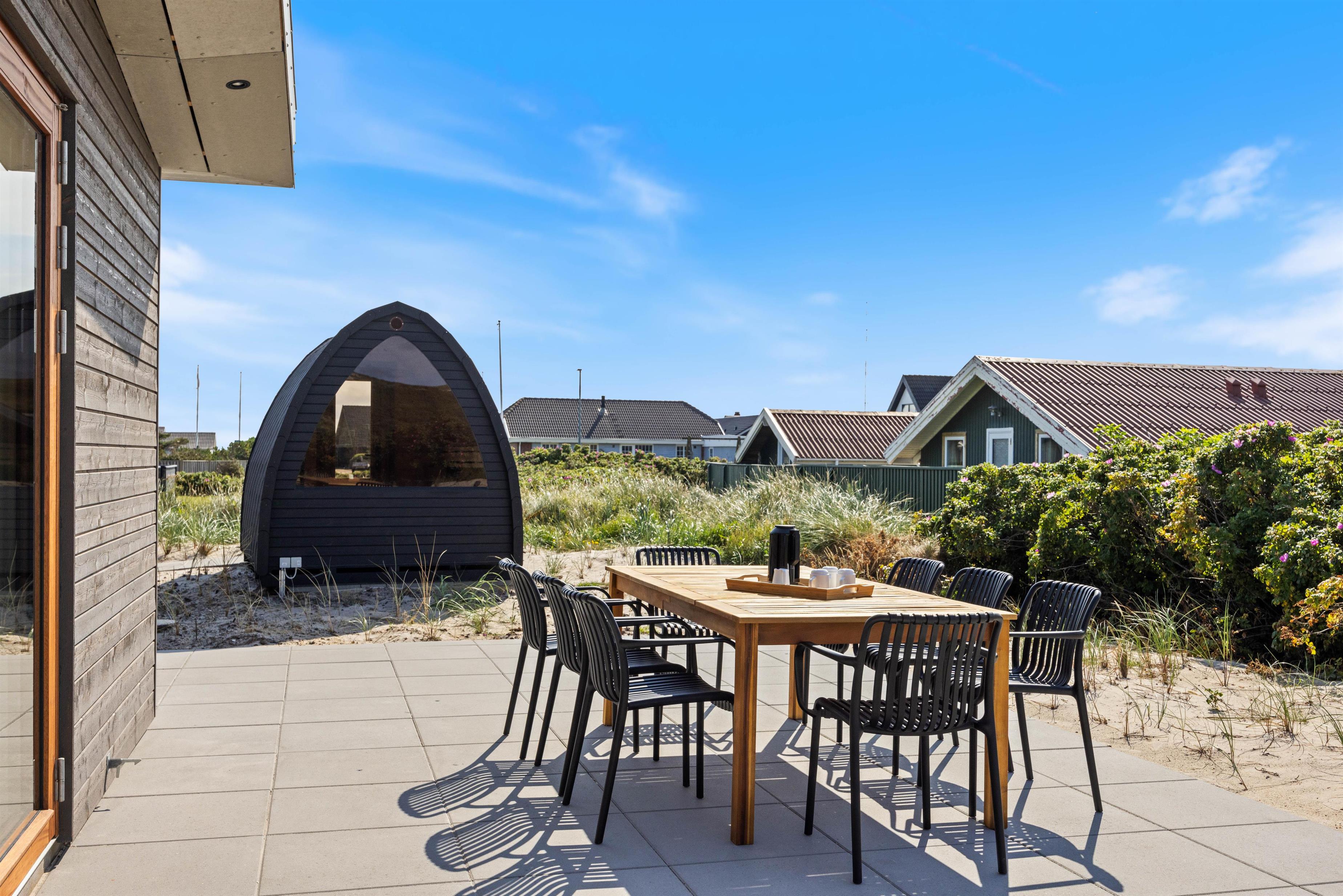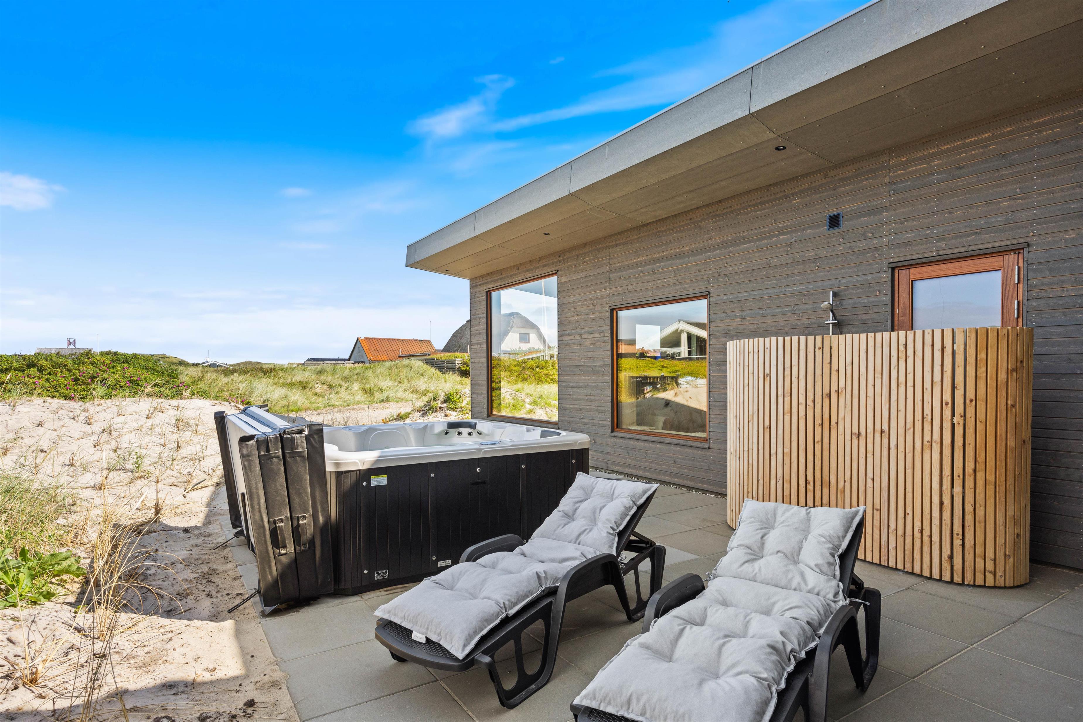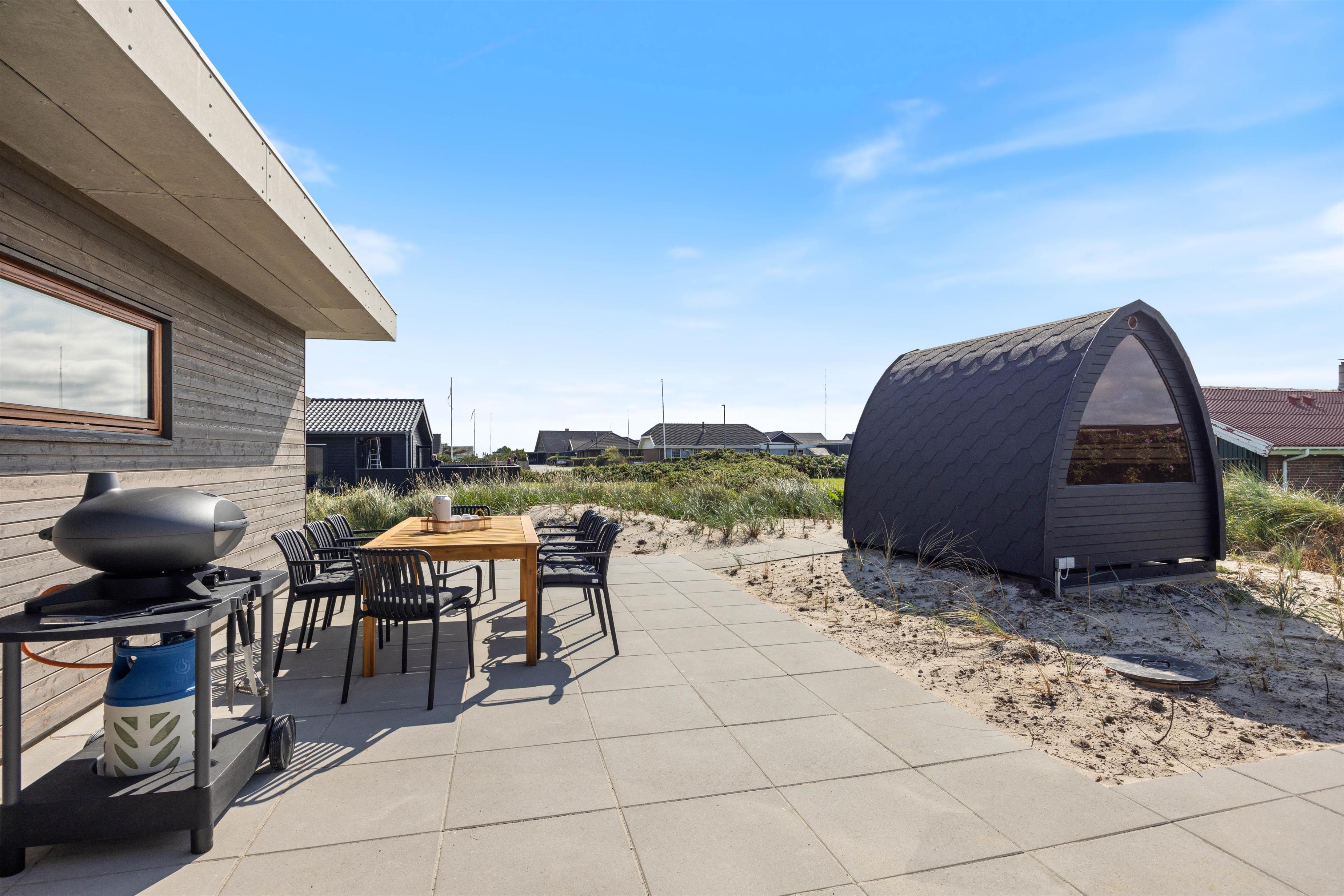 Efter en dag ved Vesterhavet, som ligger blot 200 meter væk, kan I fra april til november tage et forfriskende brusebad under udebruseren inden I slapper af i den luksuriøse udespa eller udesauna. På terrassen finder I også solvogne, hvor I kan tage en lur under den varme sol.