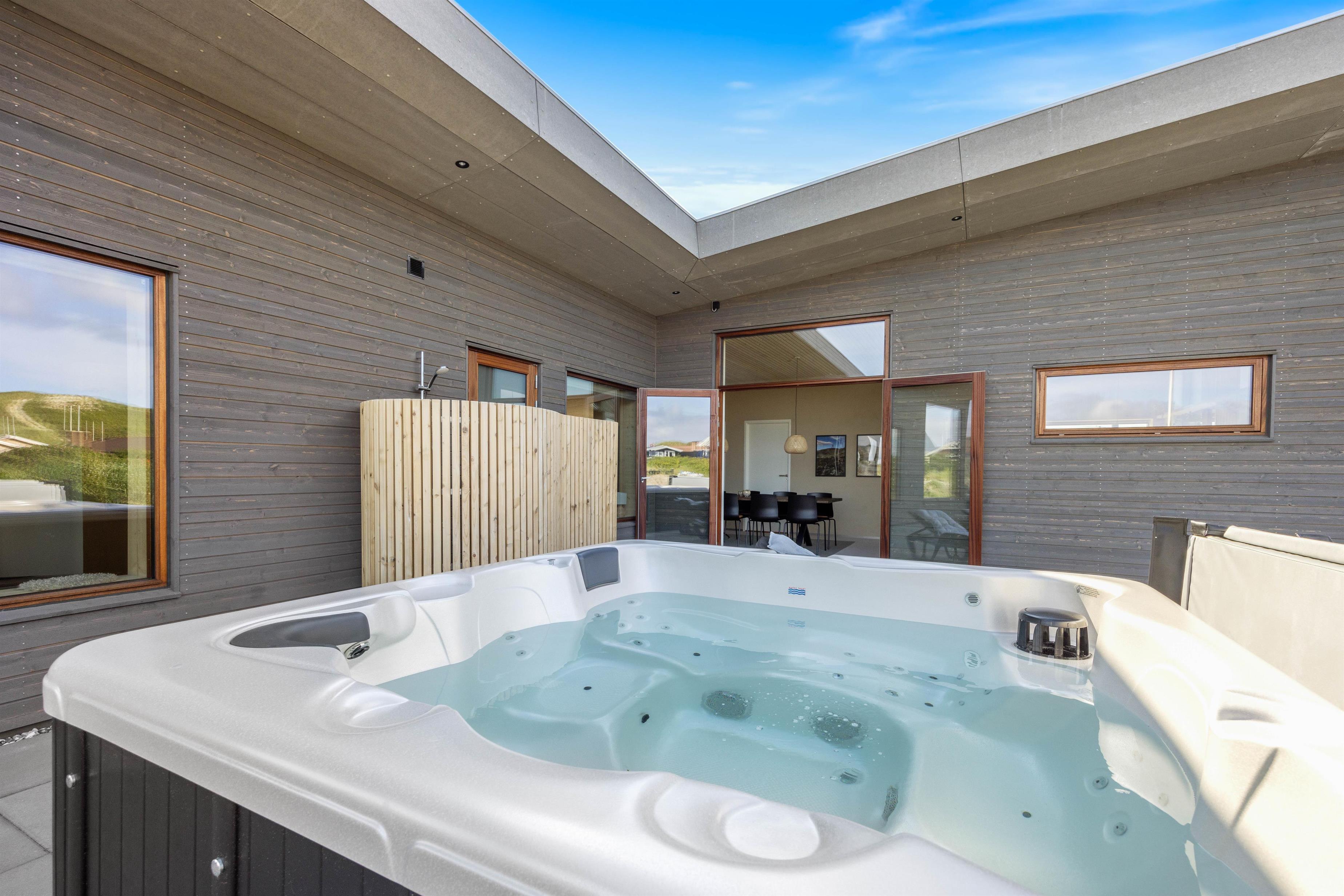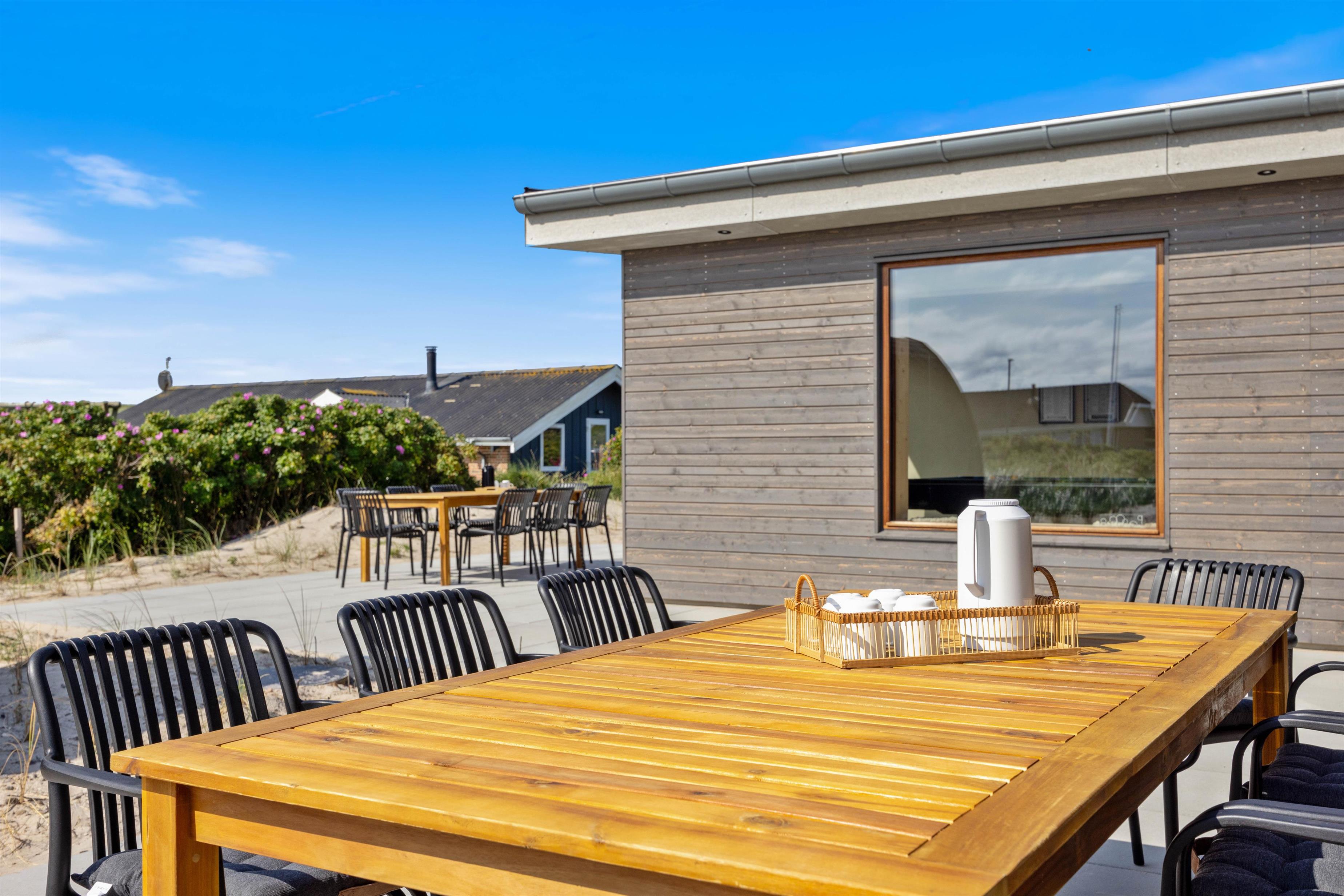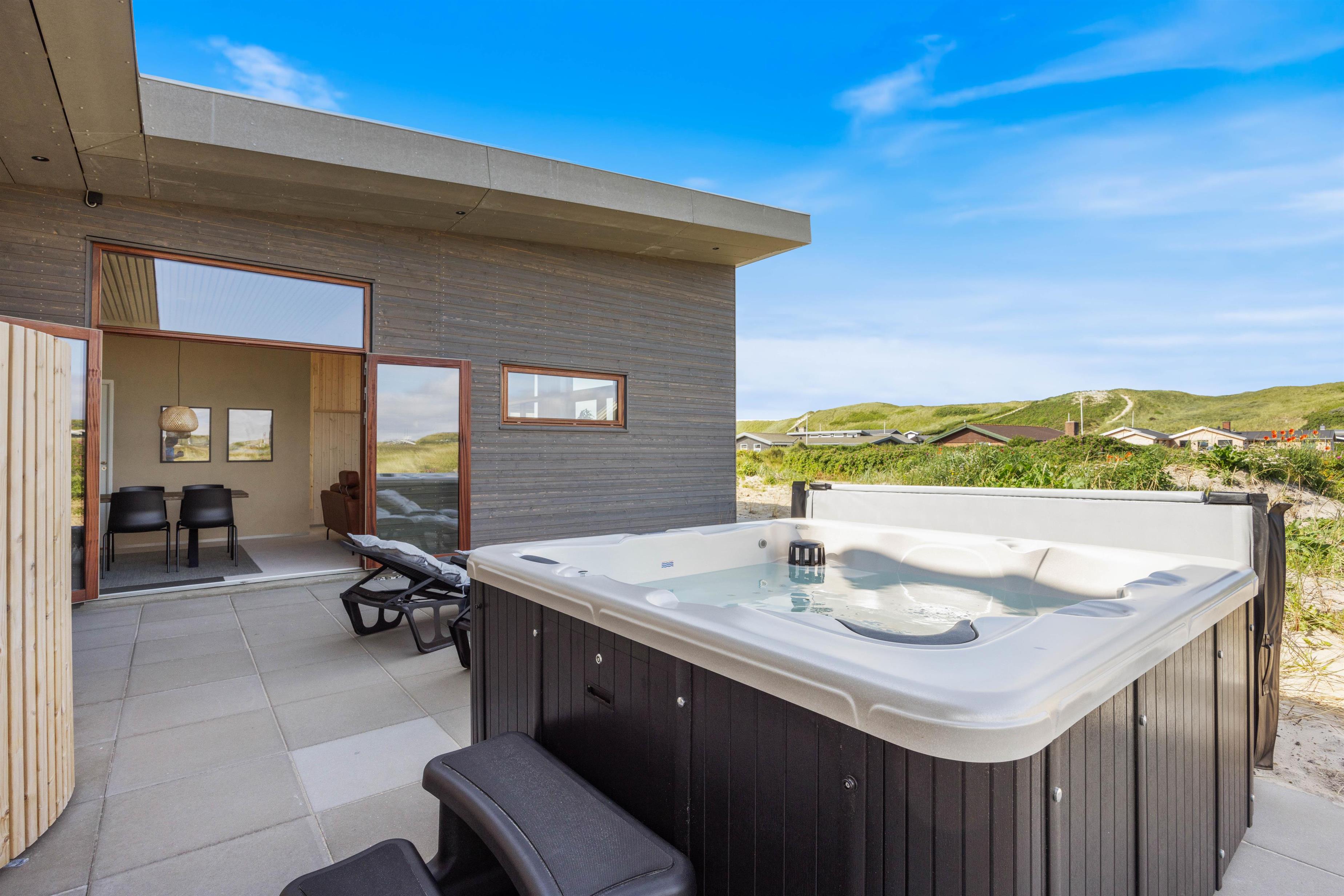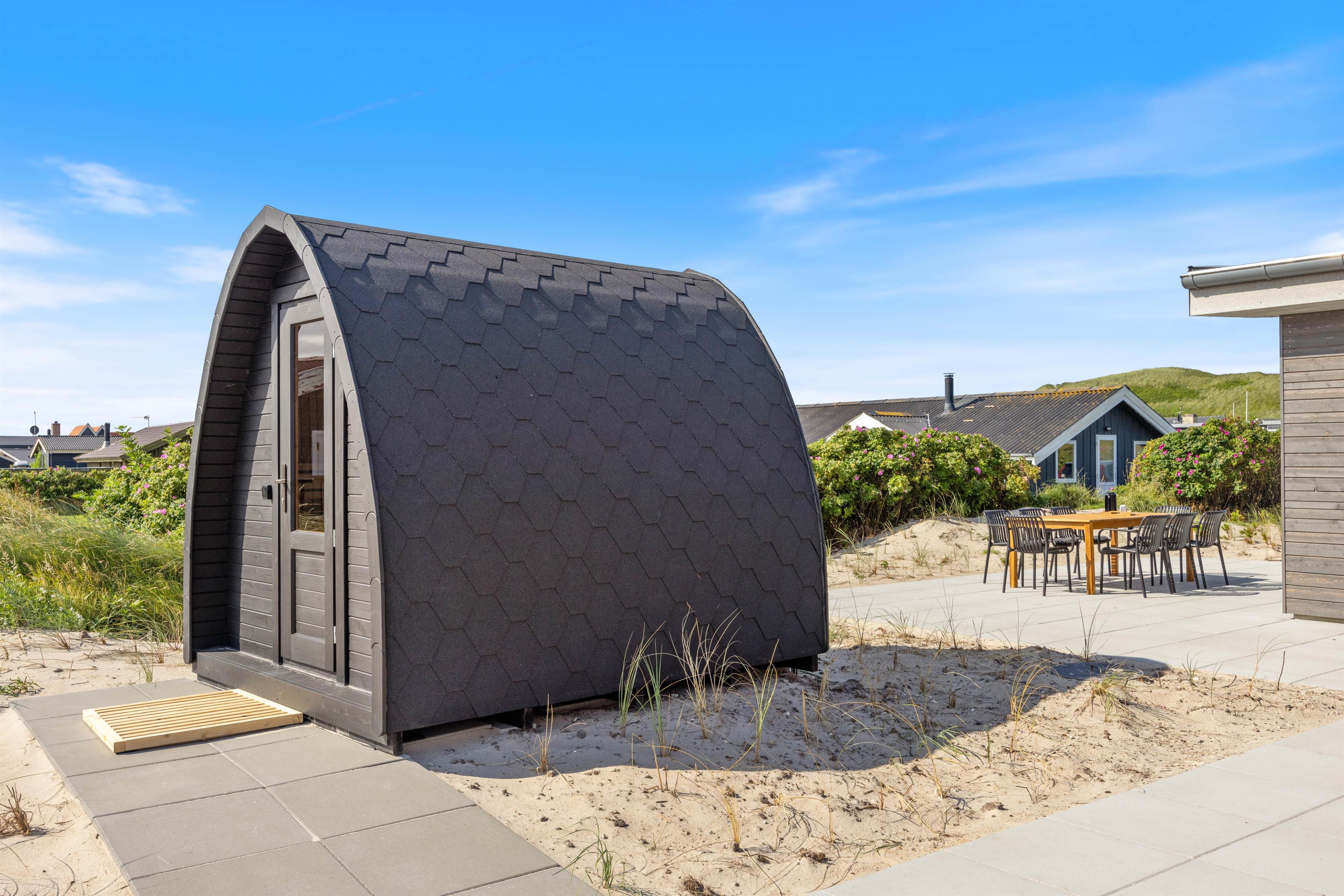 Efter en dag ved Vesterhavet, som ligger blot 200 meter væk, kan I fra april til november tage et forfriskende brusebad under udebruseren inden I slapper af i den luksuriøse udespa eller udesauna. På terrassen finder I også solvogne, hvor I kan tage en lur under den varme sol.