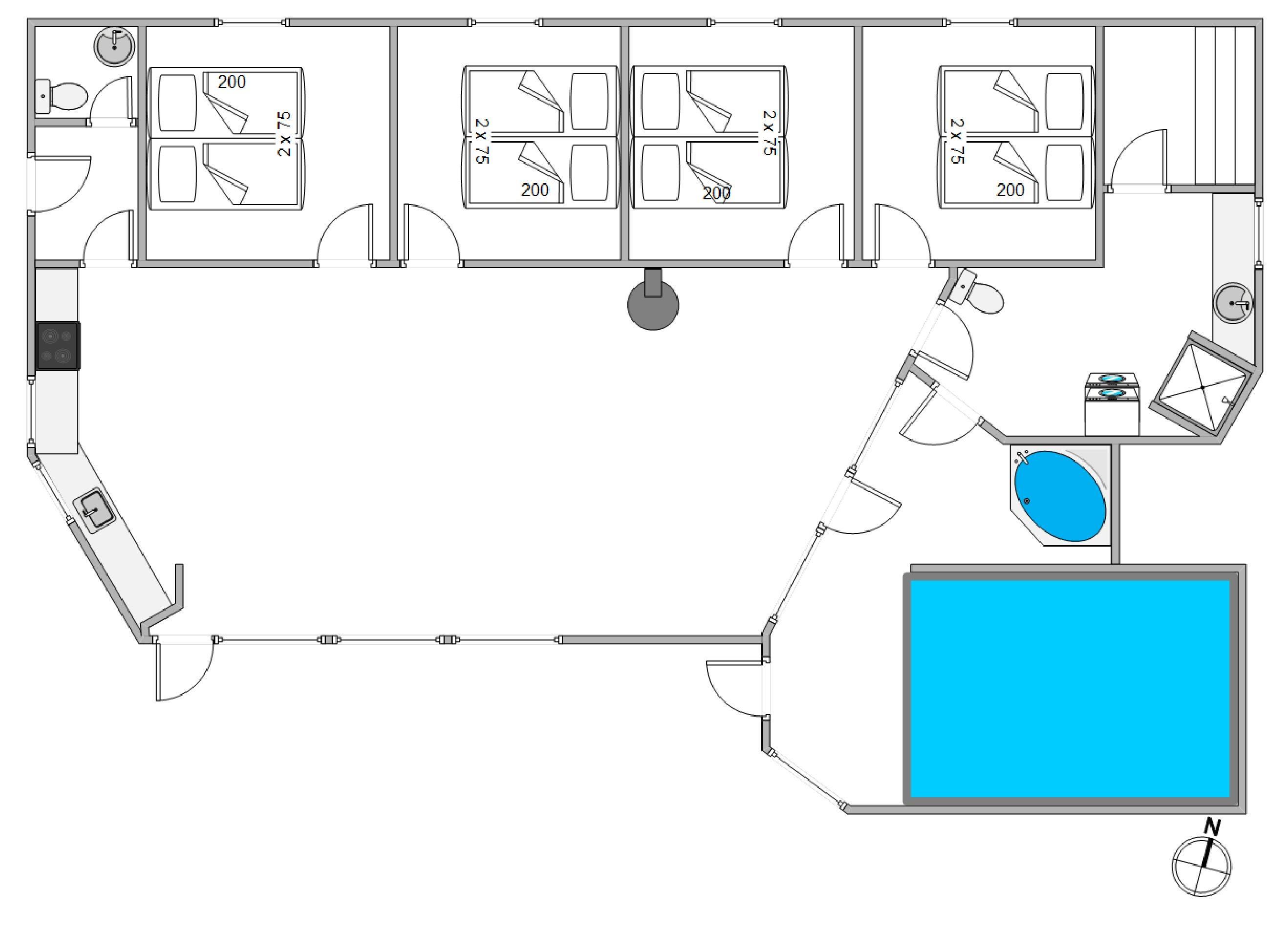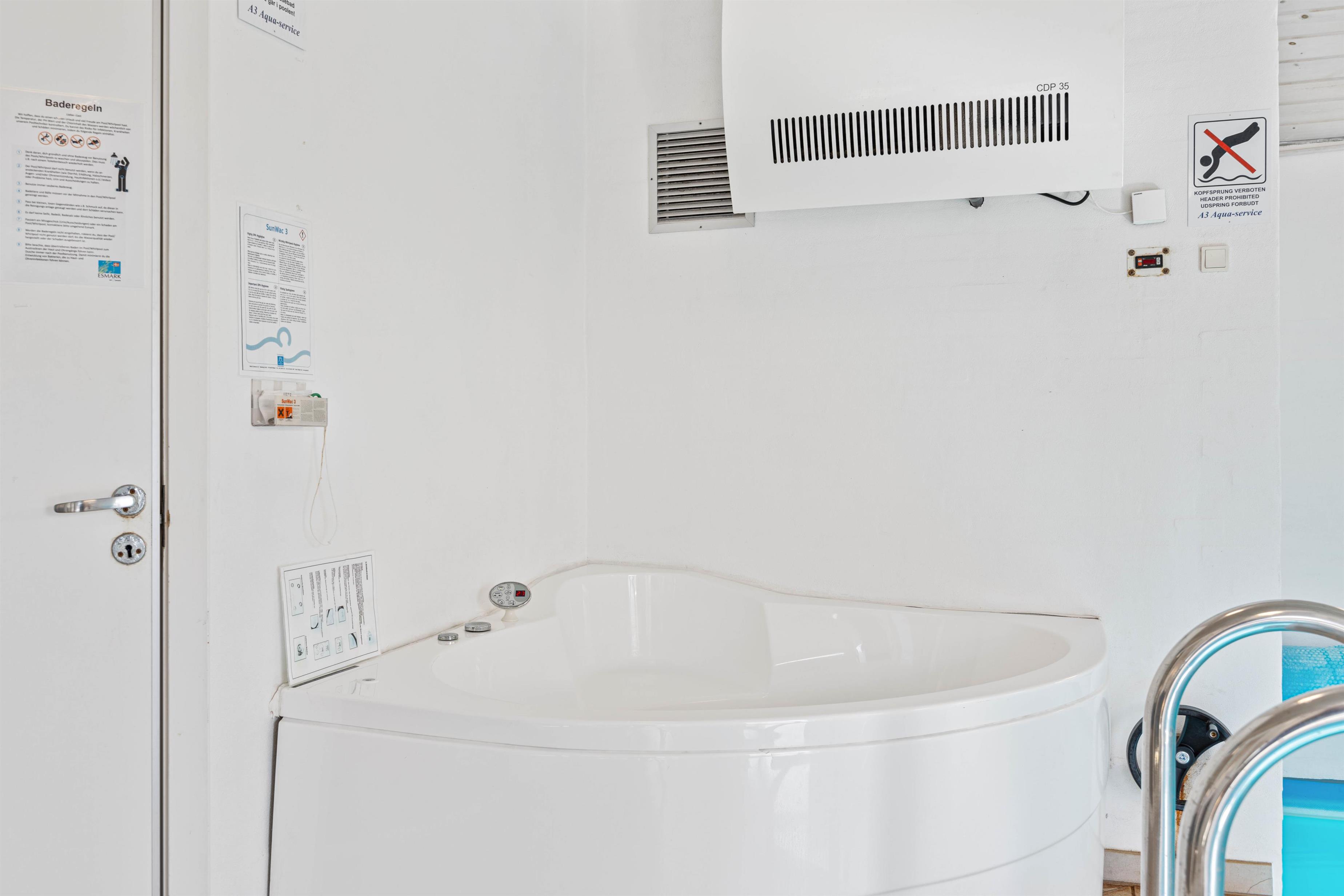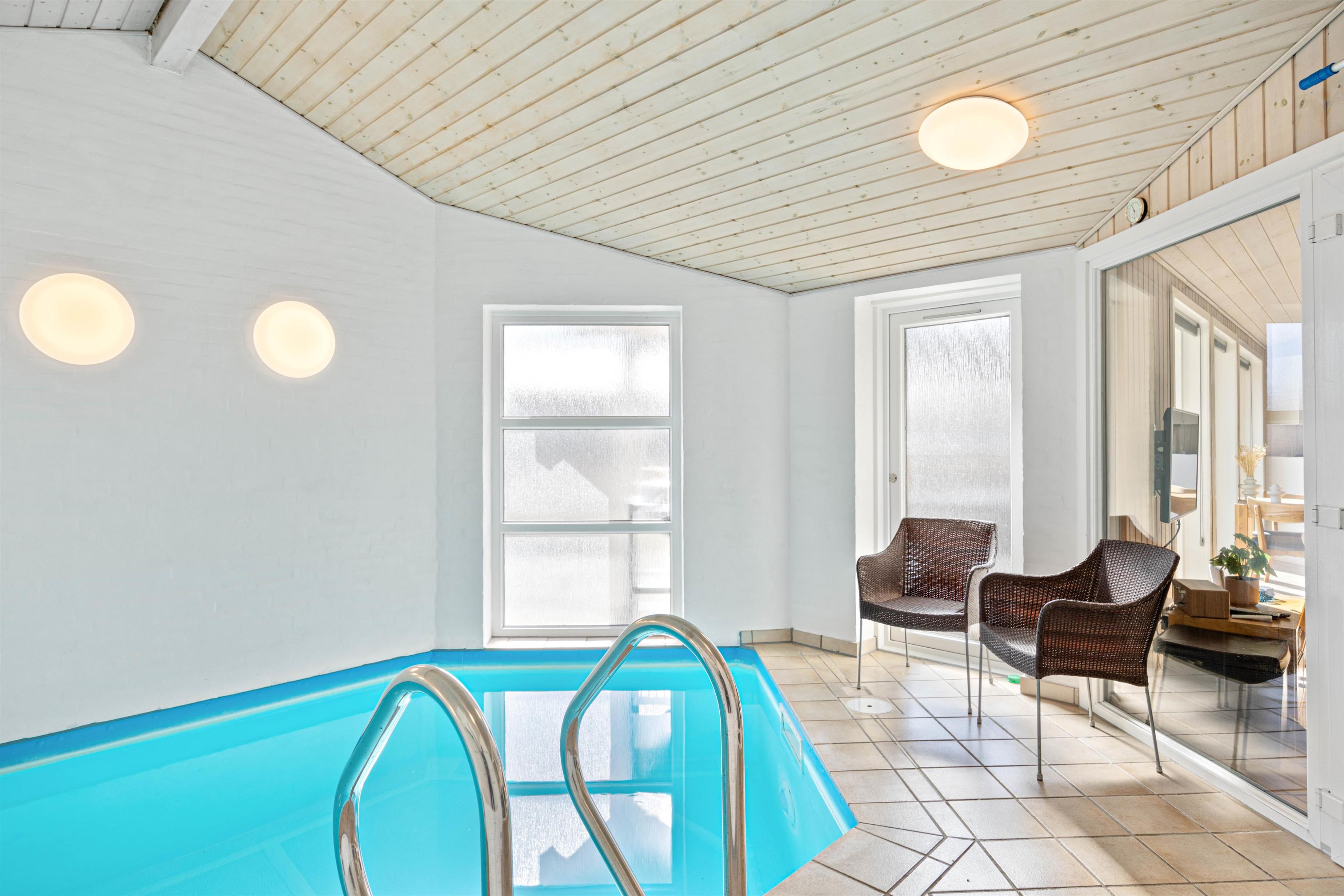 Fra stueafdelingen er der store glaspartier ind til poolafdelingen, så man på afstand kan holde øje med børnenes leg. Poolen og spaen er perfekt til en lidt køligere dag, eller efter en lang dag i naturen. Her kan der tilbringes mange timer med sjov og leg i vandet.