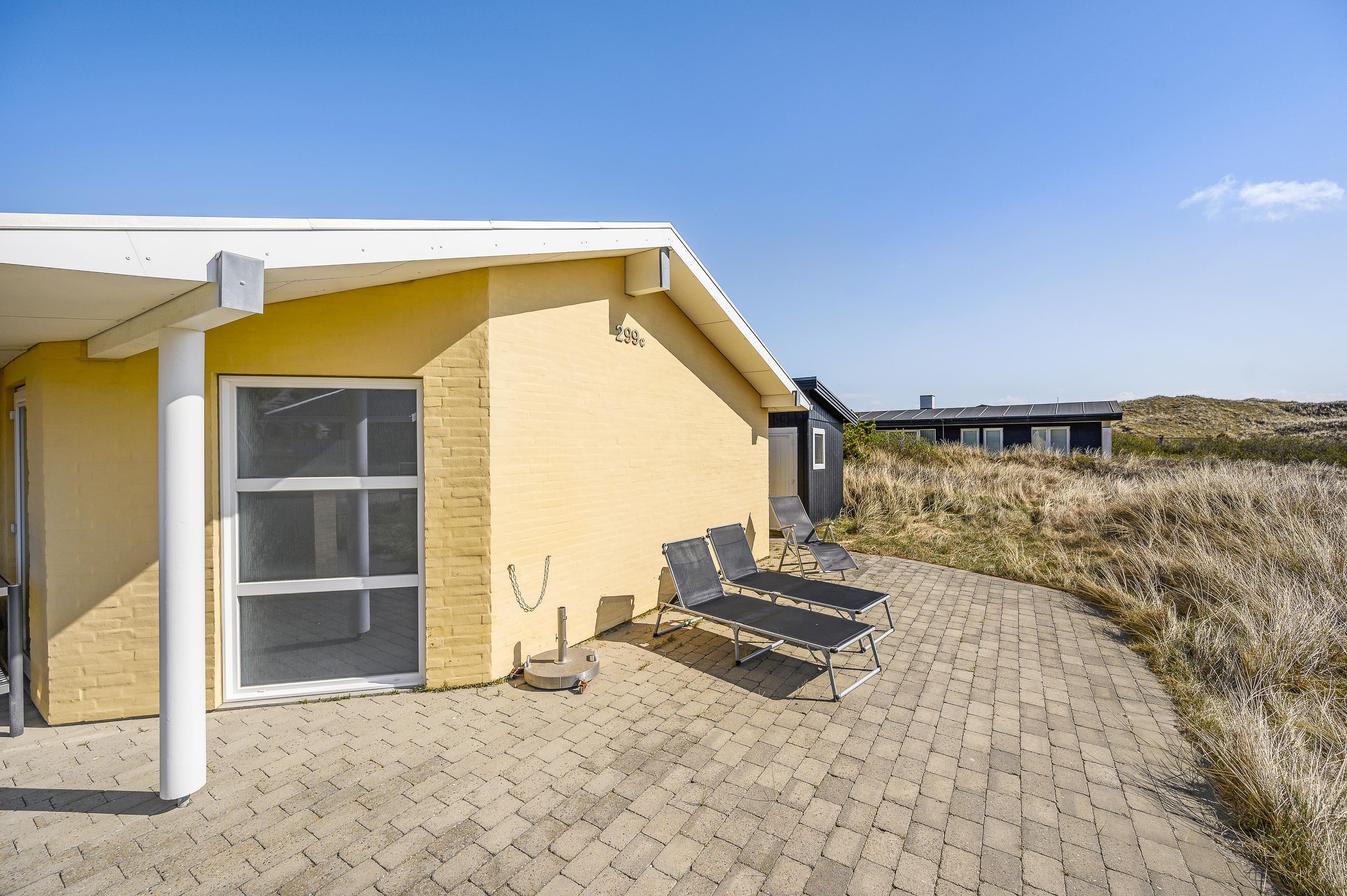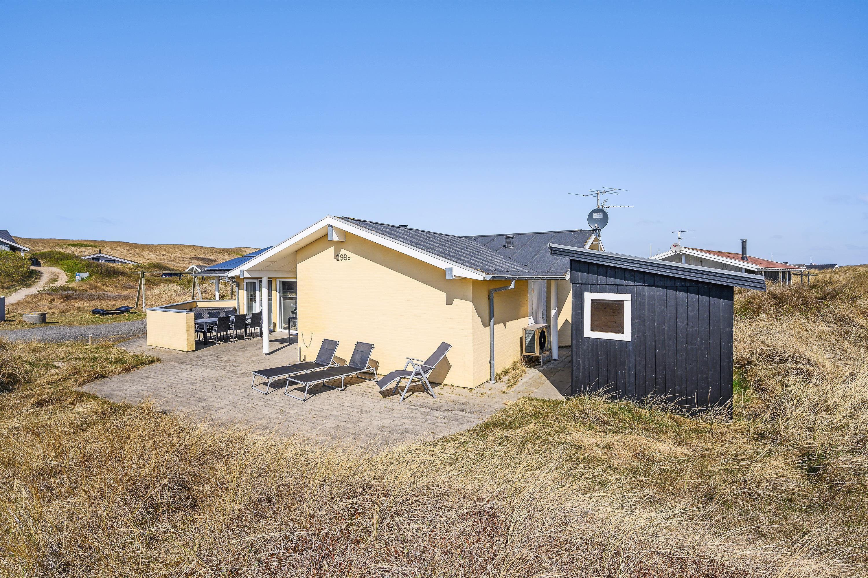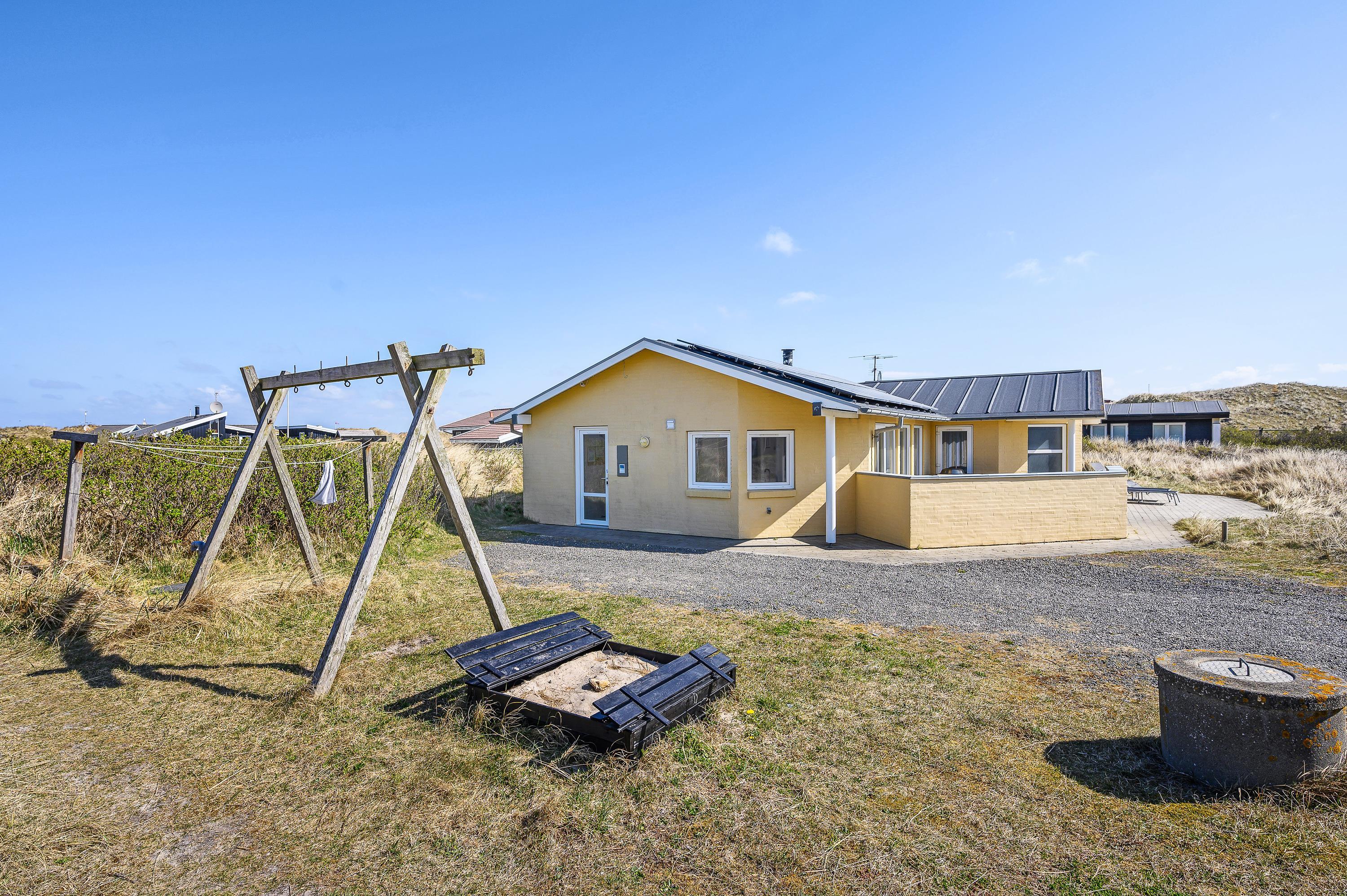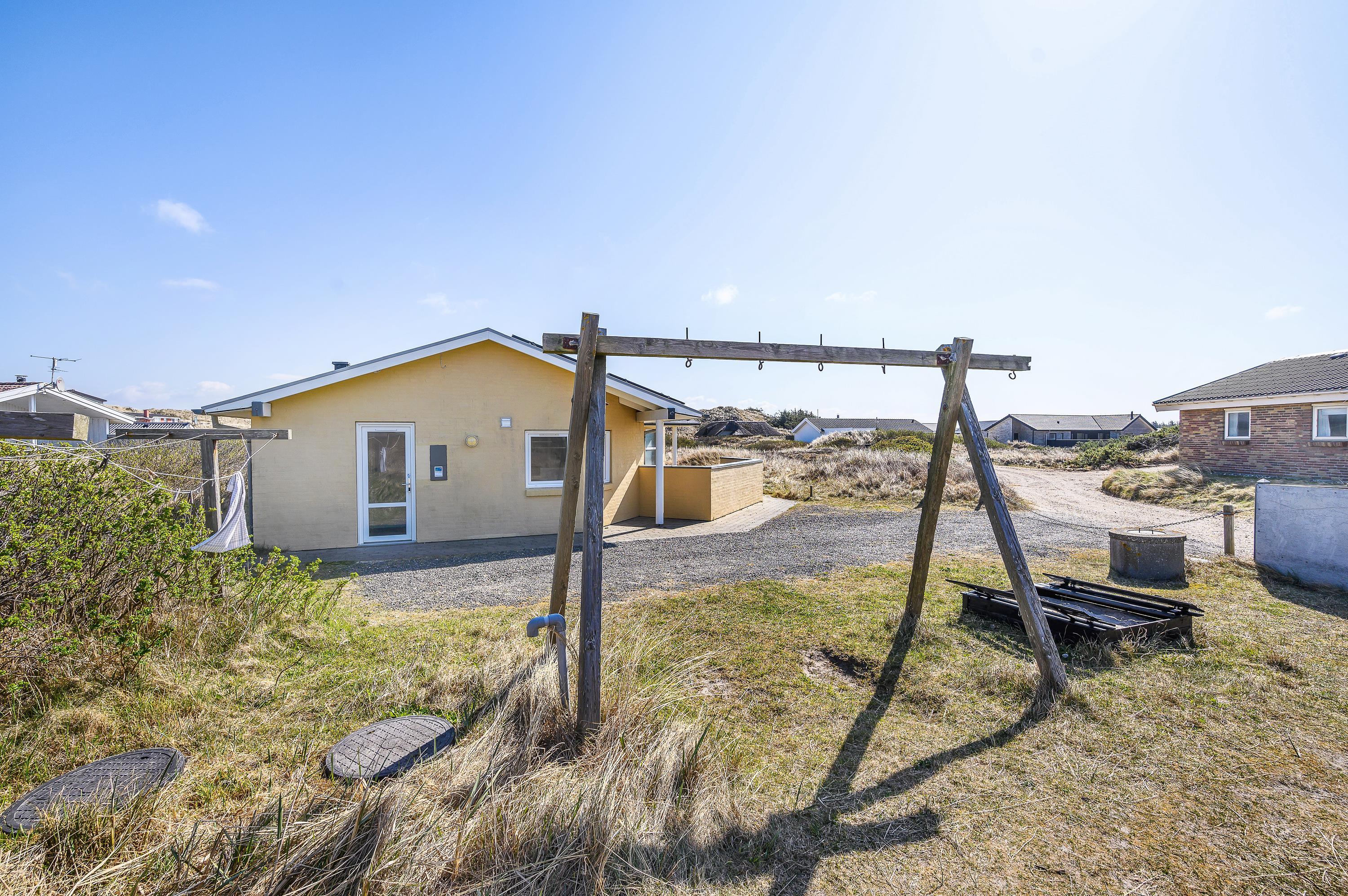 Poolhuset på Tingodden 299C i Årgab ligger kun 100 meter fra den hvide sandstrand og de vilde bølger – lige inden for den yderste klitrække. Hyg jer med terrasselivet på den sydvestvendte terrasse, mens I nyder børnenes leg med gynger og sandkasse.