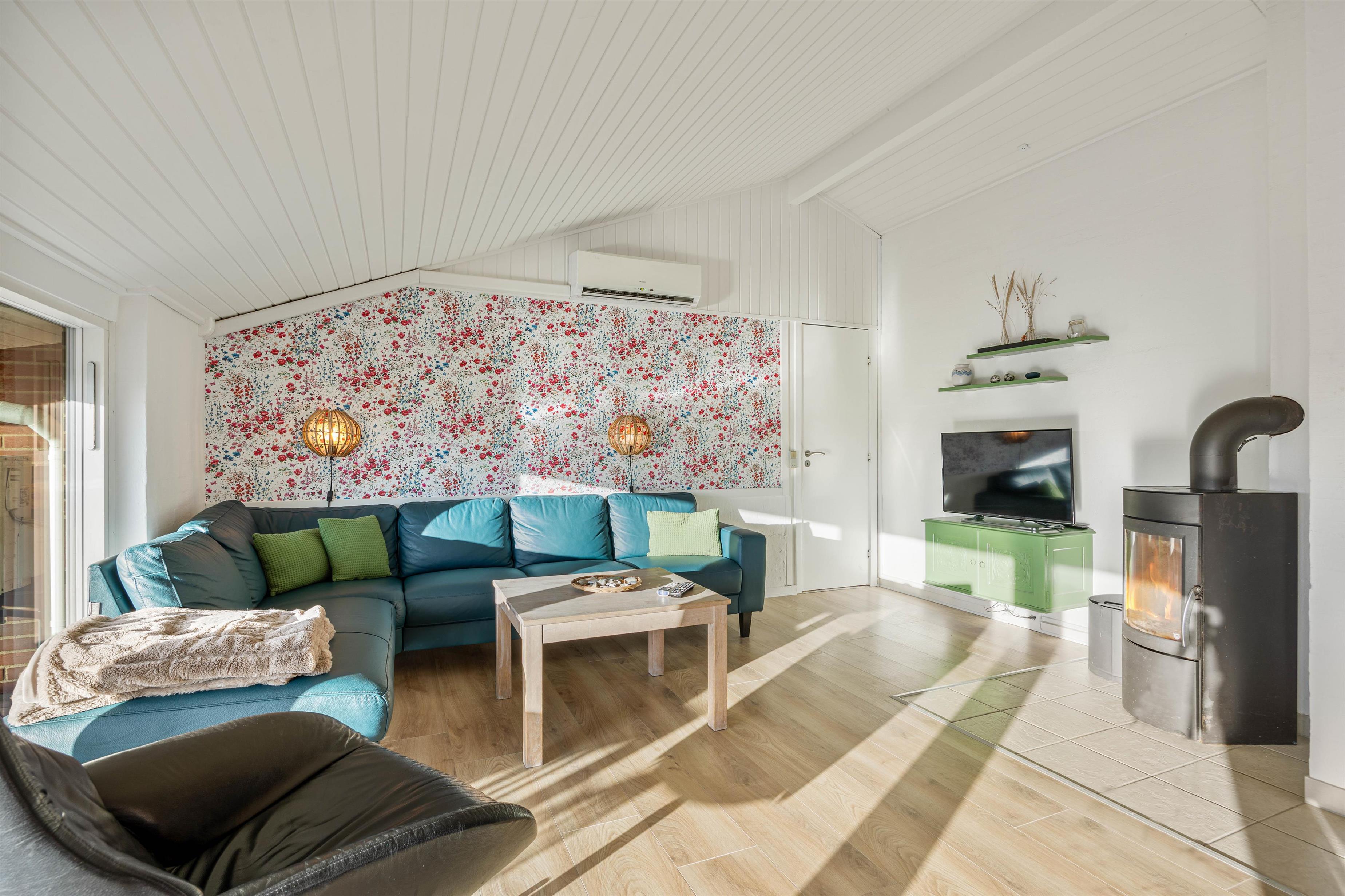 I dette skønne sommerhus finder I et stort køkken/alrum, hvor der er plads til mange hyggelige stunder. Her er der plads til, at I kan sidde og spille spil eller se en god film, imens brændeovnen sørger for, at I har en dejlig temperatur i sommerhuset. På de kolde dage er der også en varmepumpe i sommerhuset, som er med til at give en dejlig varme.