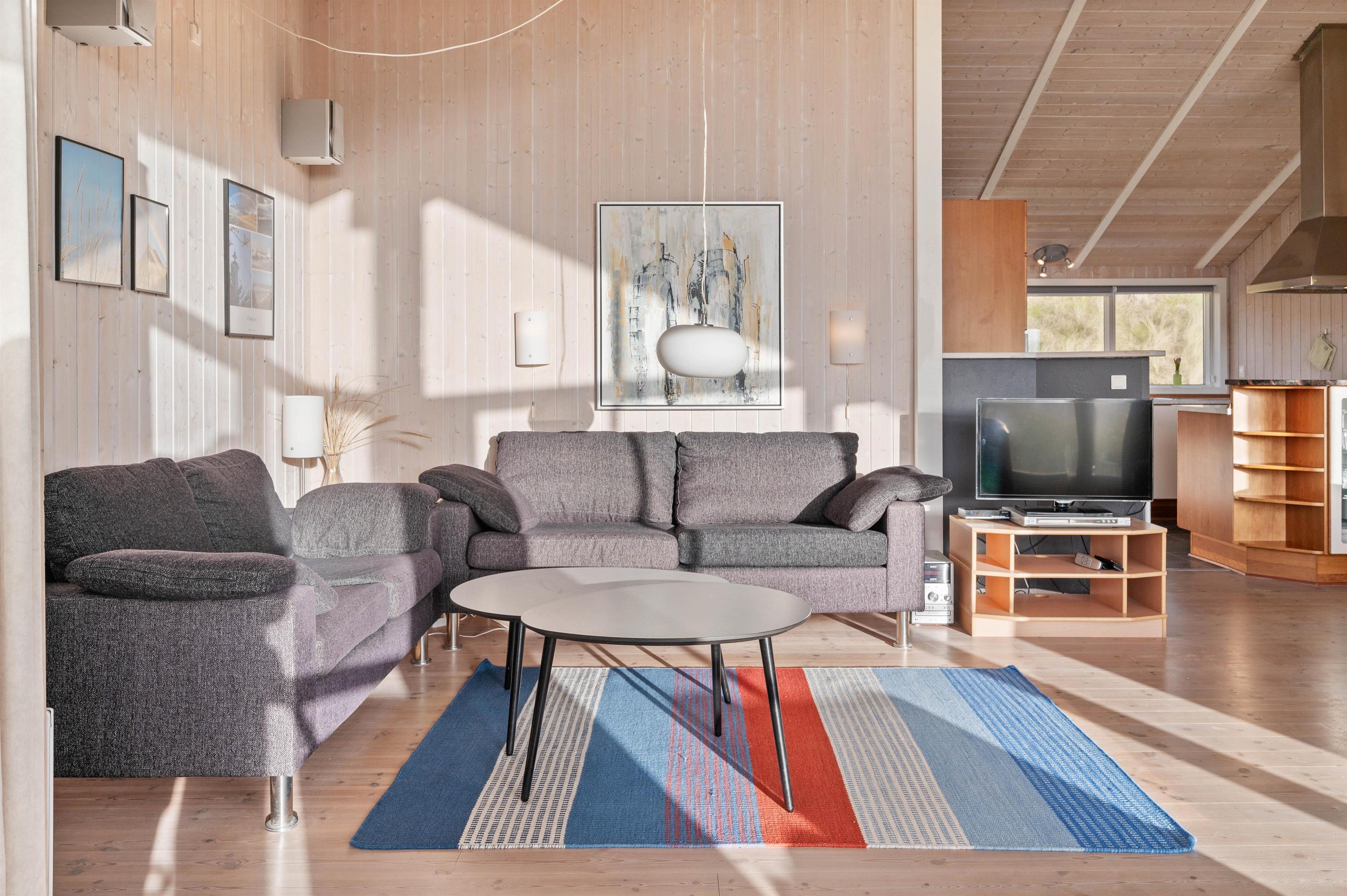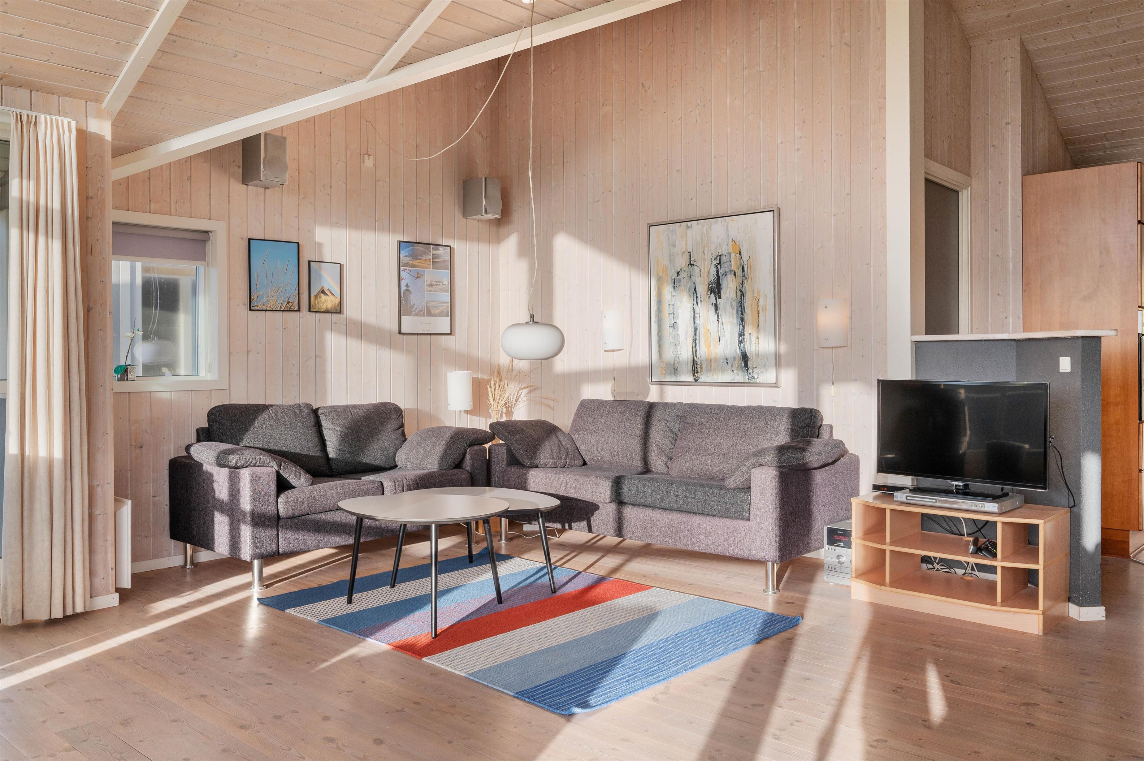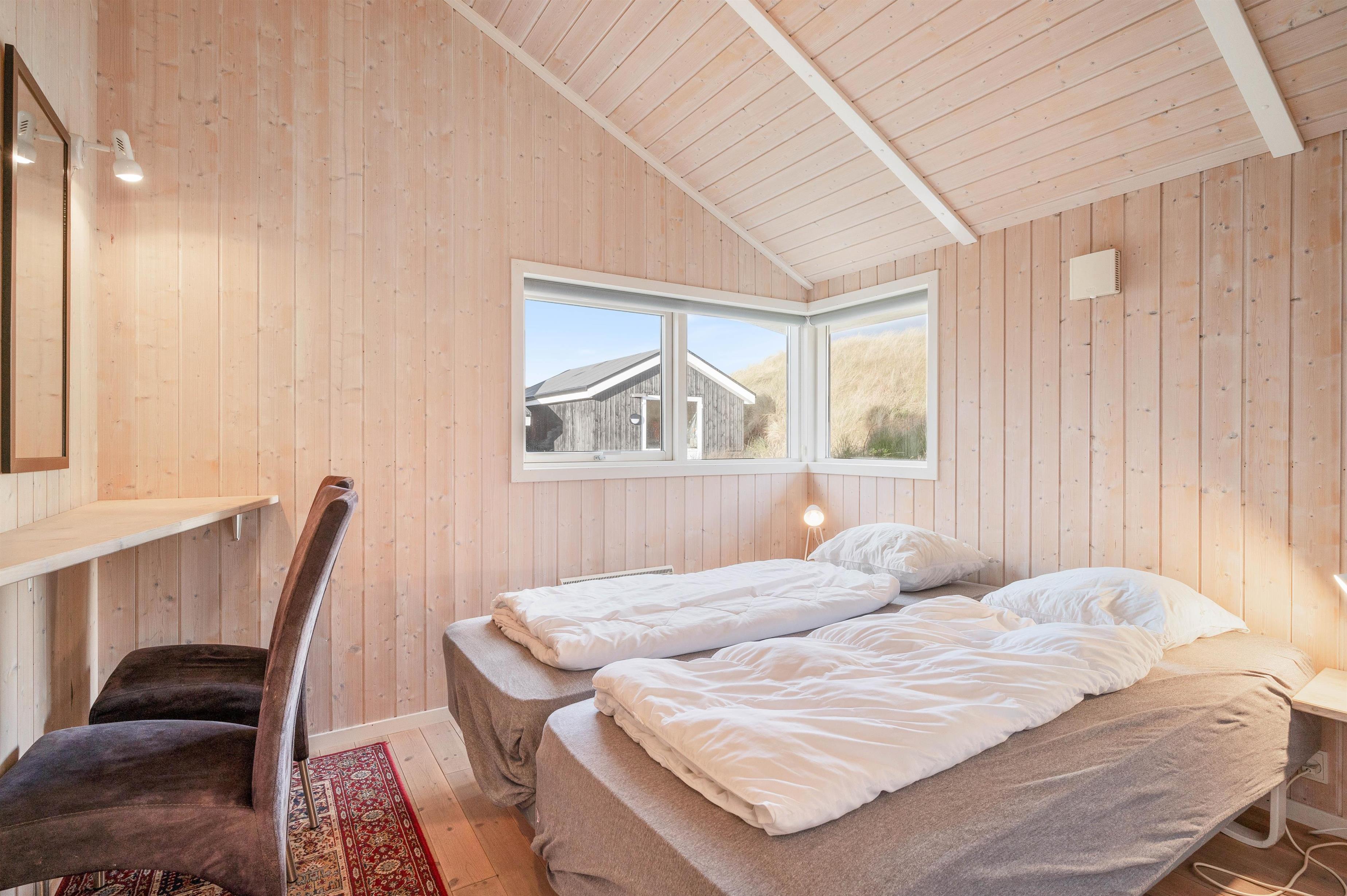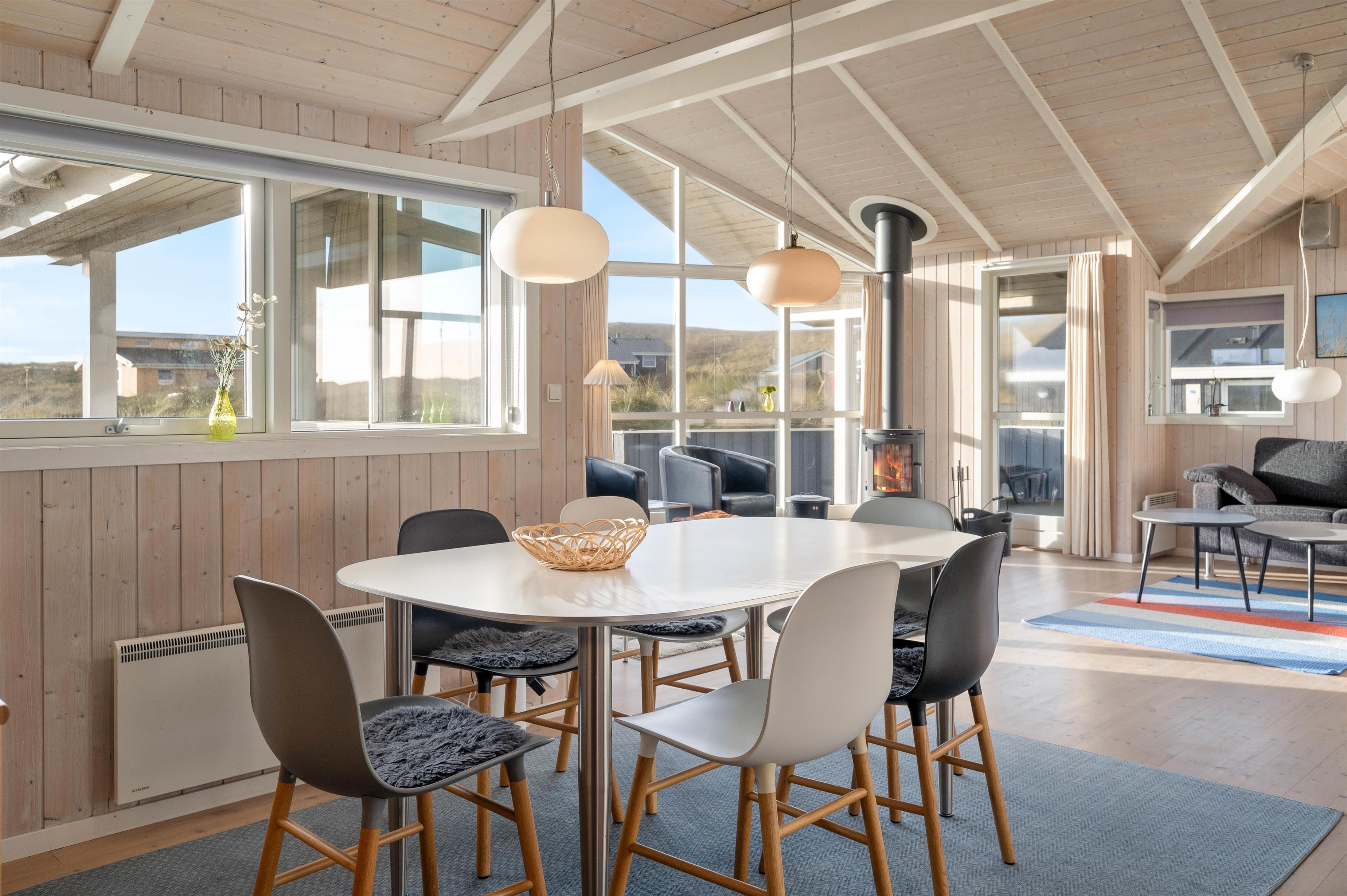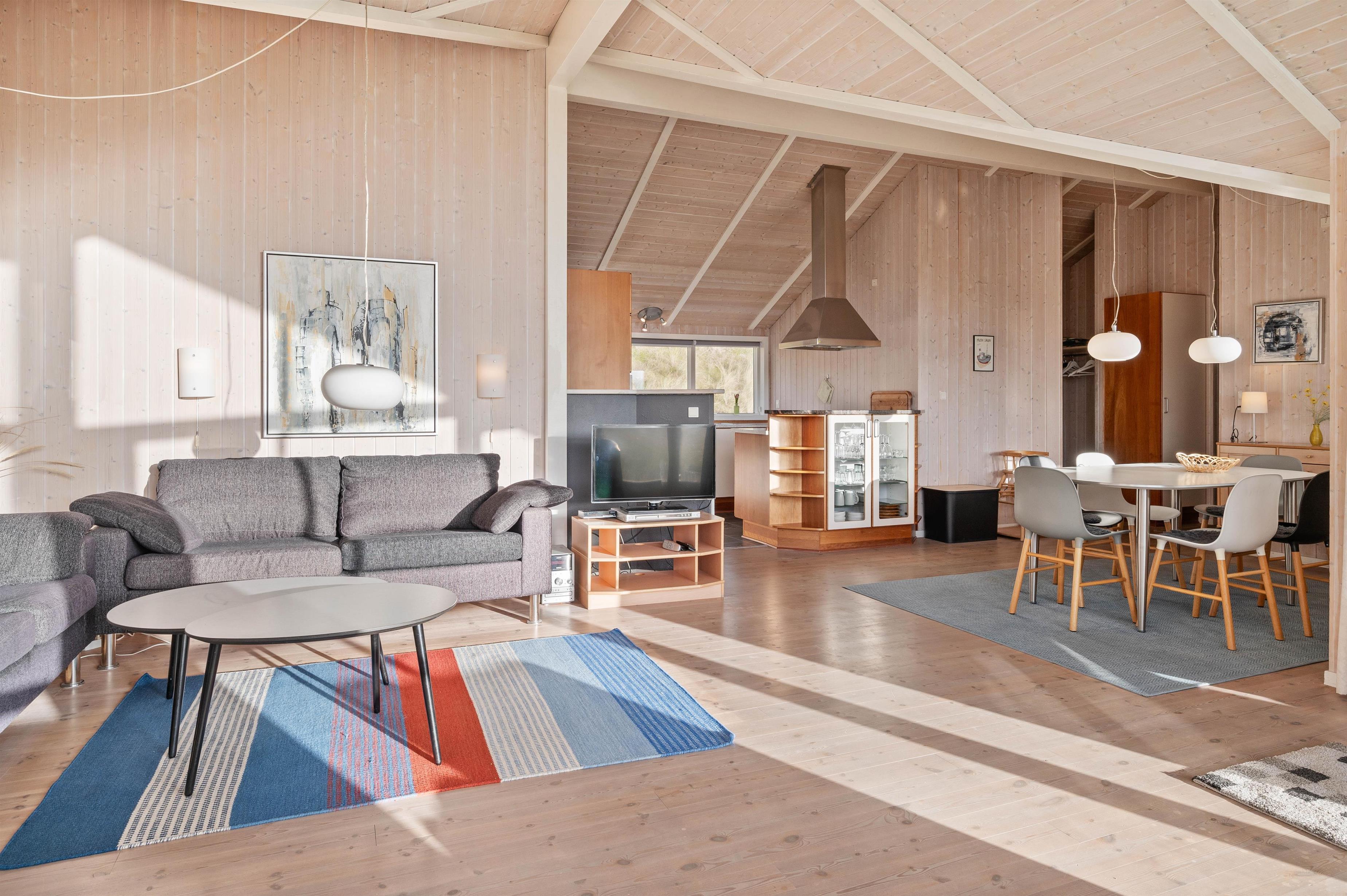 I sommerhuset er der et stort køkkenalrum, som byder til samling af hele familien. Her kan alle være, hvad enten man laver et lækkert måltid, klarer dagens opvask, spiller brætspil ved køkkenbordet eller ser en god film på fjernsynet. Derudover er er der 3 gode og komfortable soveværelser. 2 værelser med dobbeltsenge og et værelse med 2 enkeltsenge.
