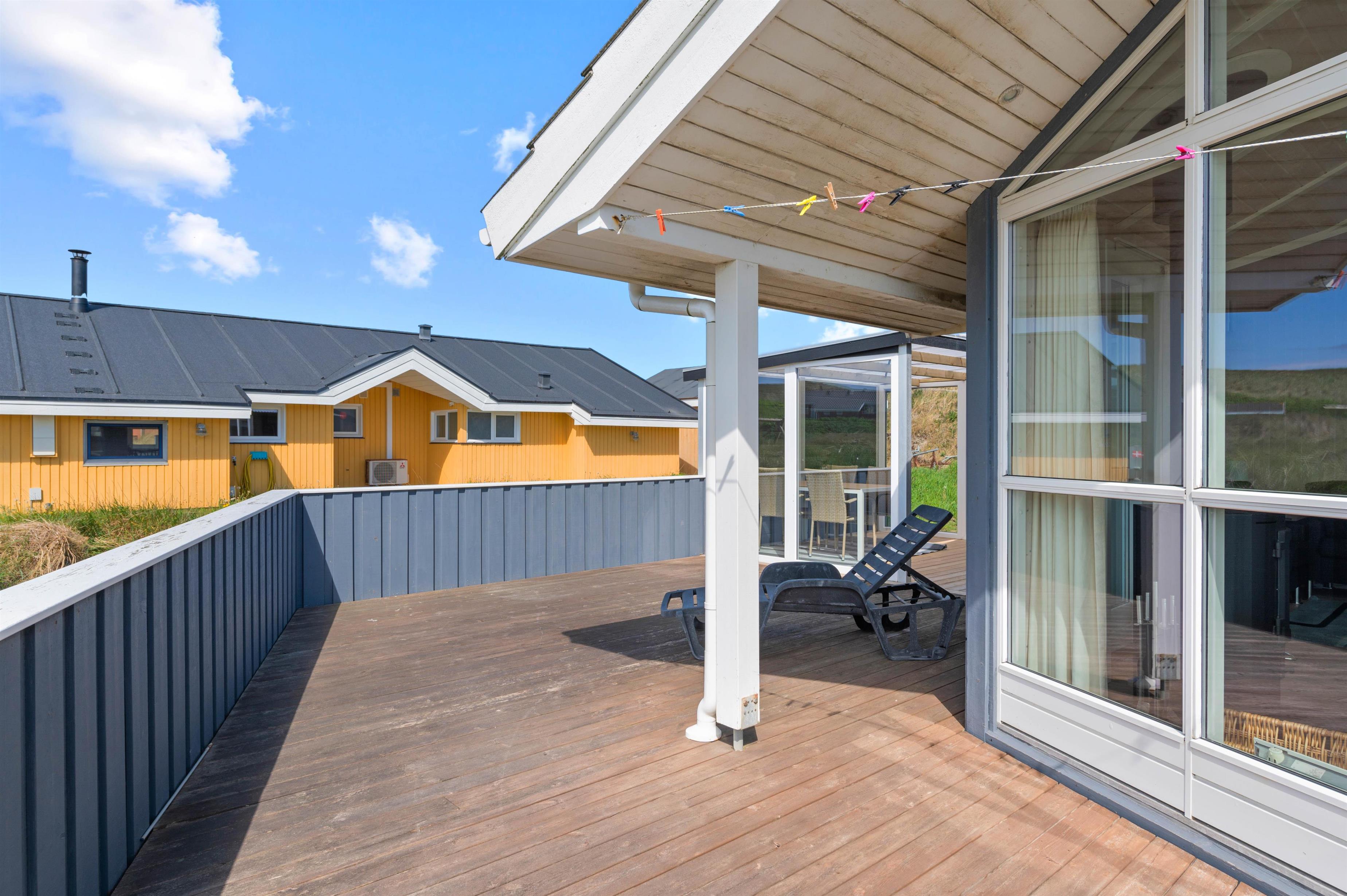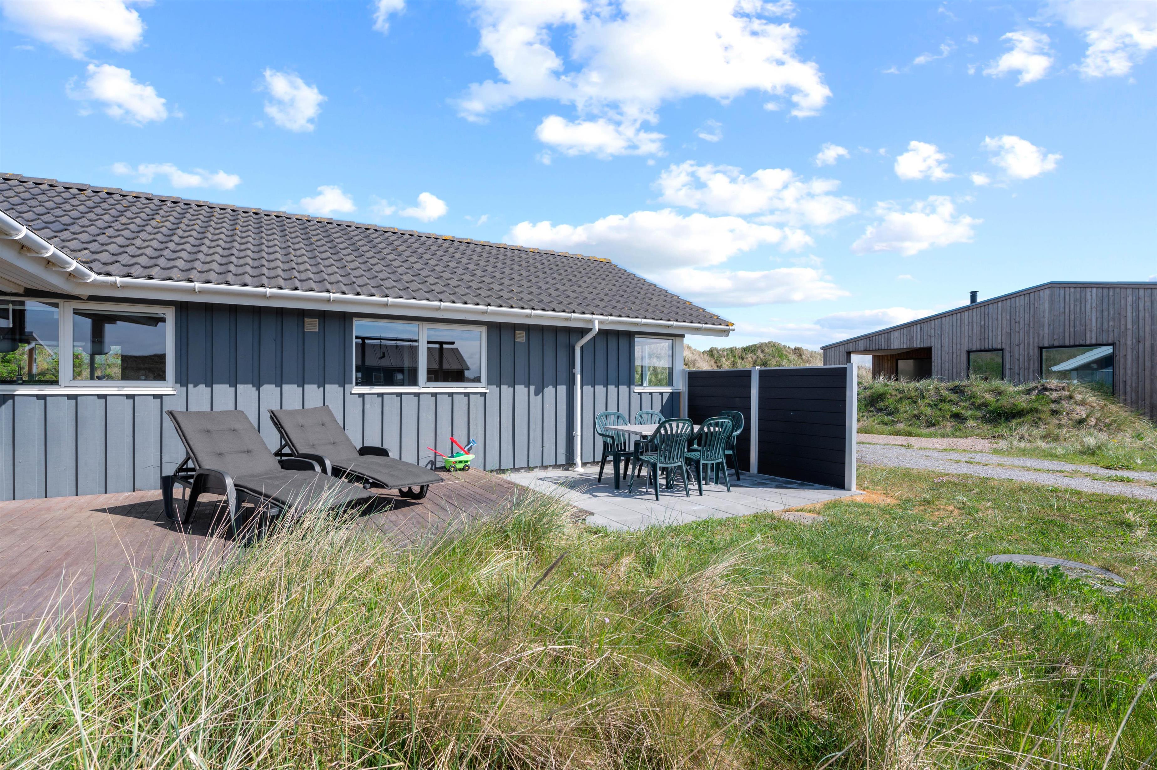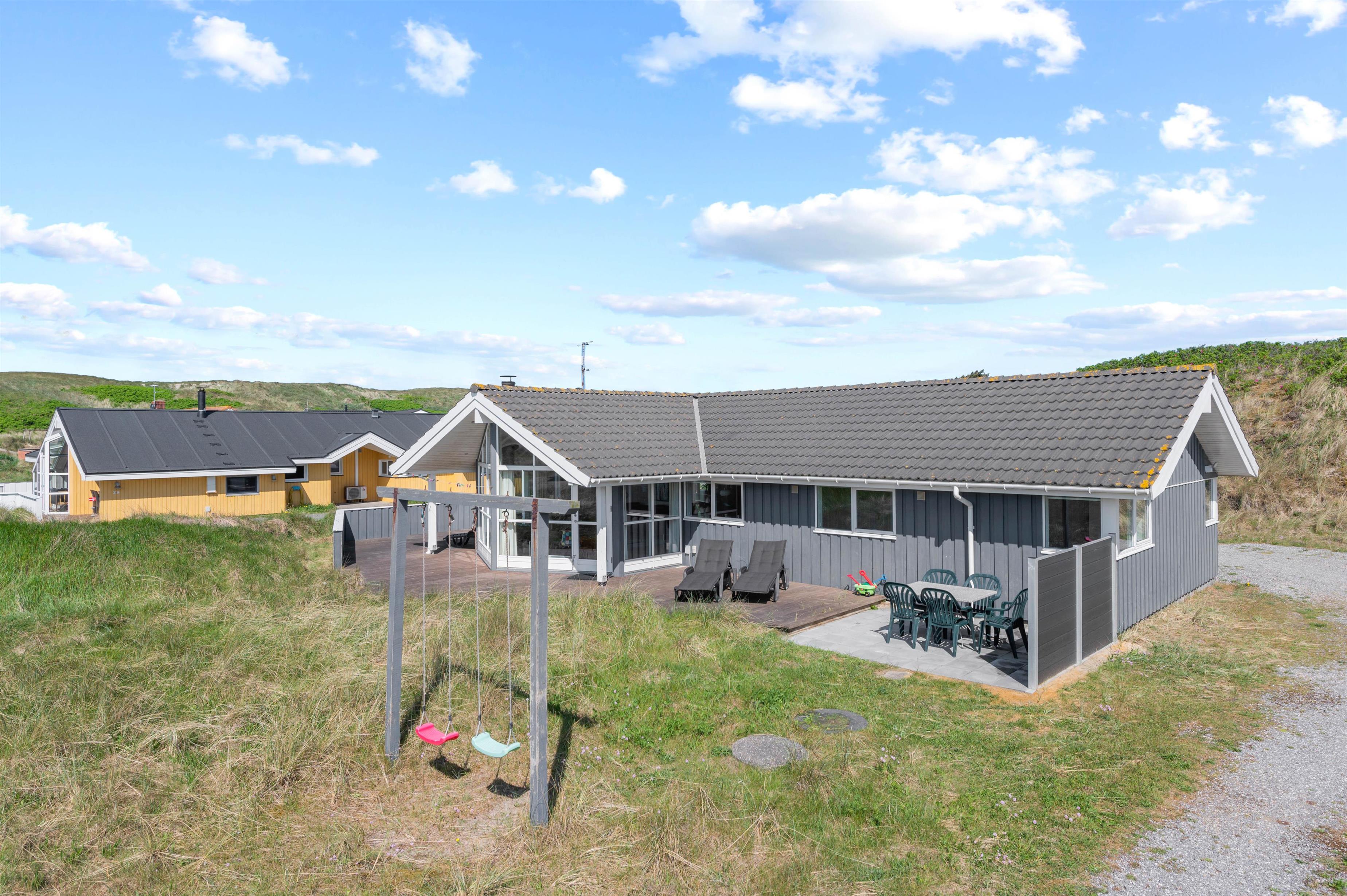 På terrassen er der mulighed for at afholde en hyggelig grillaften med hele familien, som I kan nyde i havemøblerne. Desuden er der også et gyngestativ til at underholde de mindste feriegæster, mens I kan slappe helt af i liggestolene.