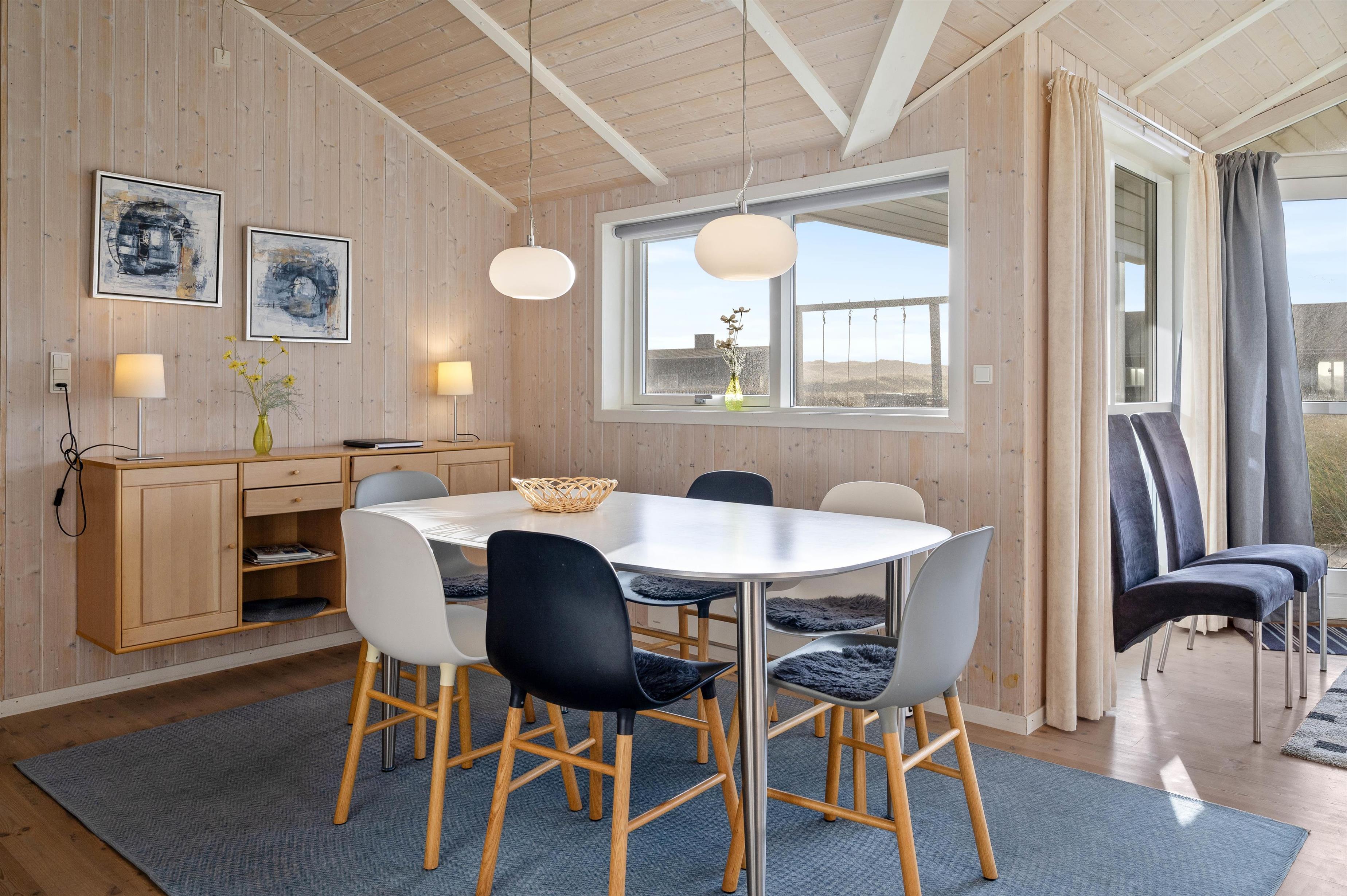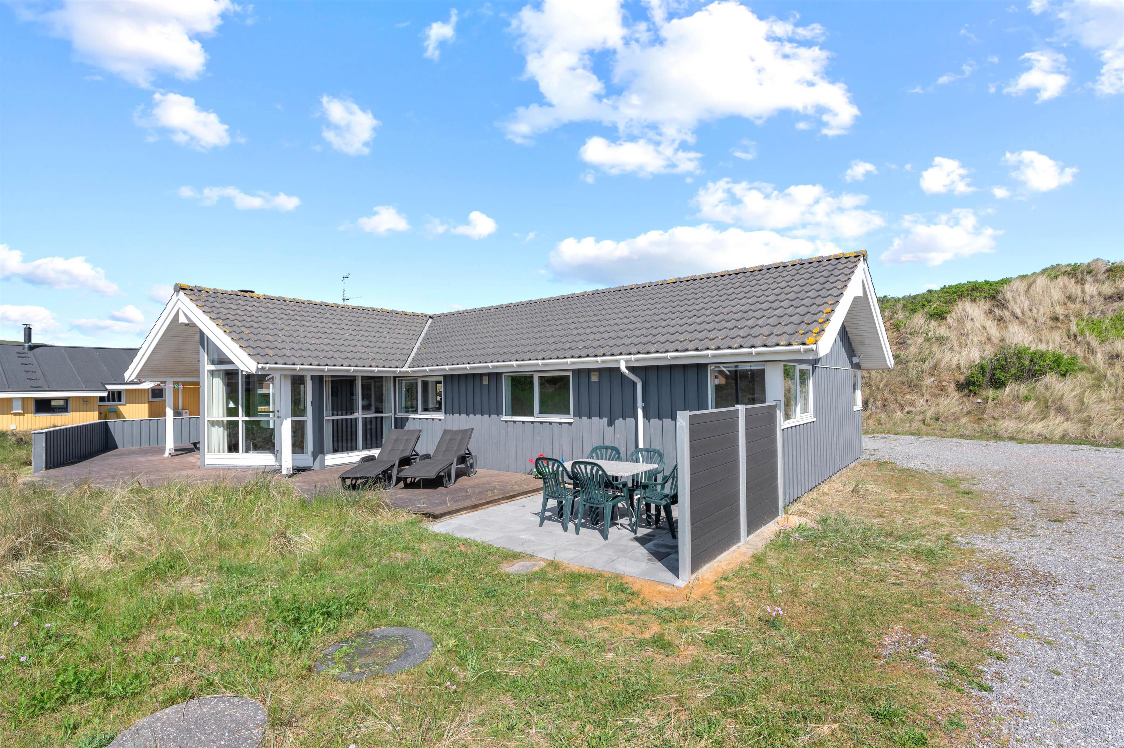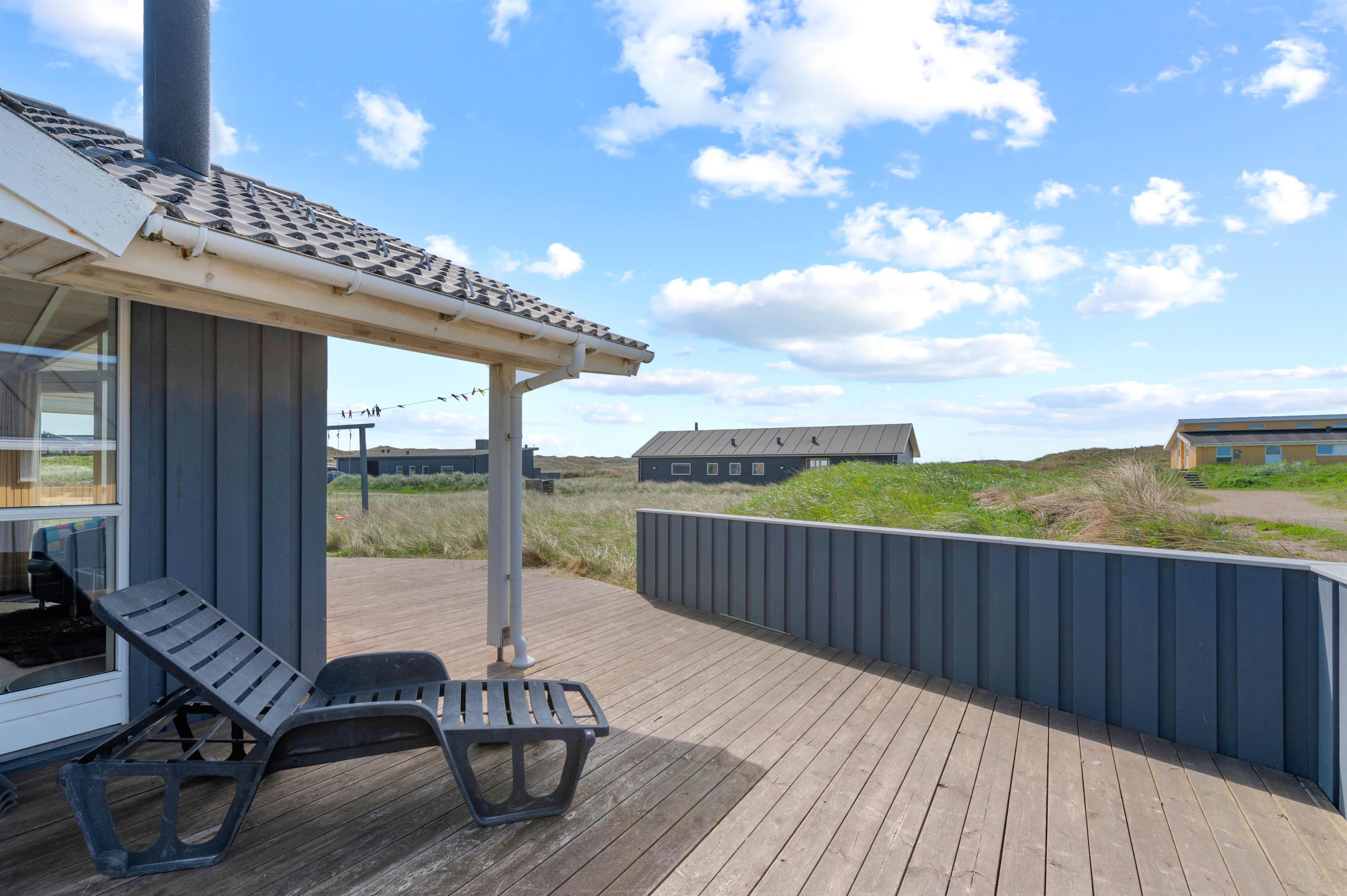Sommerhuset på Mettes Bjerg 26 har en rigtig god beliggenhed. Her er der nemlig blot 200 meter til Vesterhavet med de smukke hvide sandstrande og det dejlige hav. På den sydvendte terrasse kan I nyde den friske havduft og den smukke natur, der omgiver sommerhuset.
