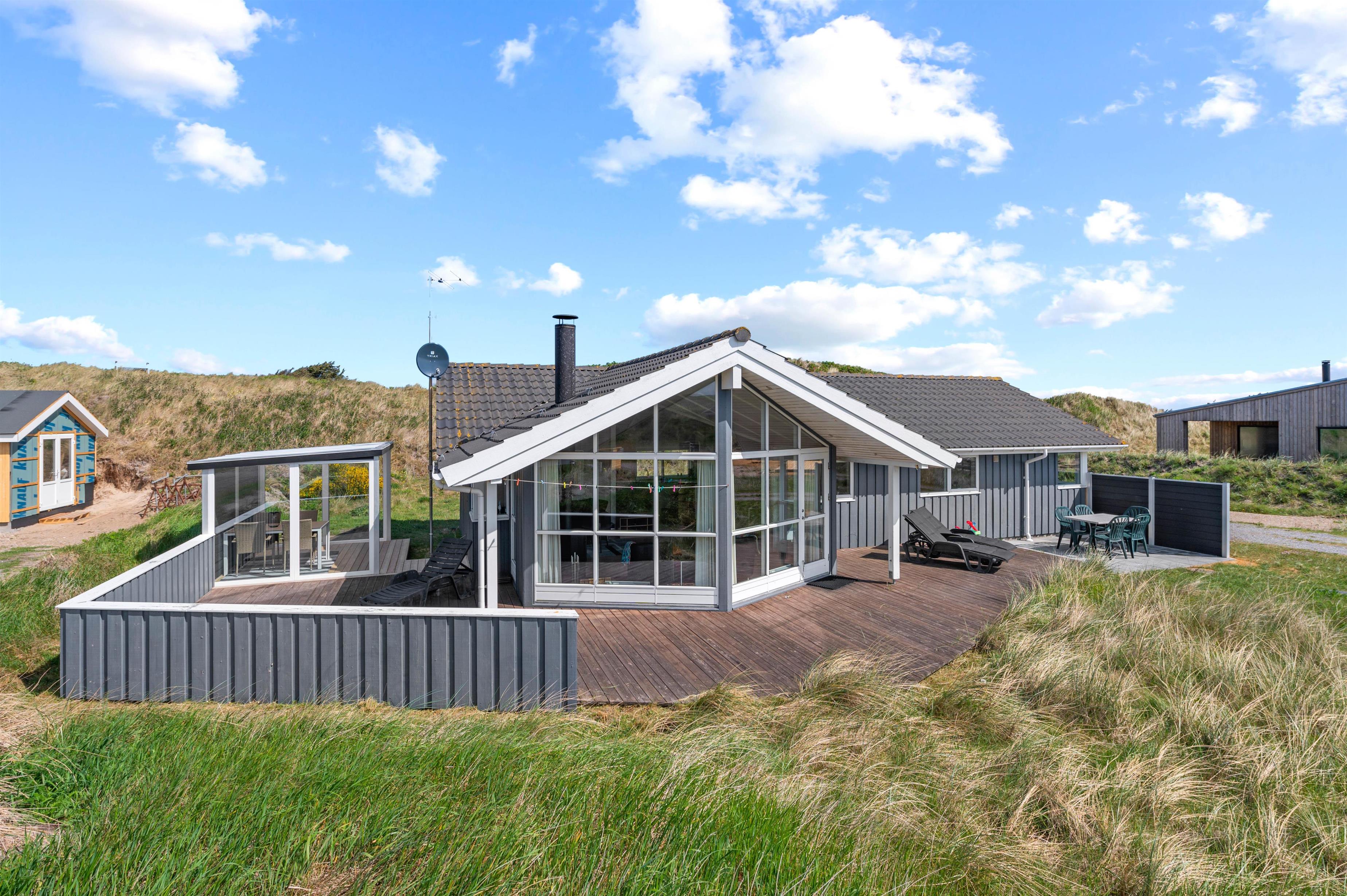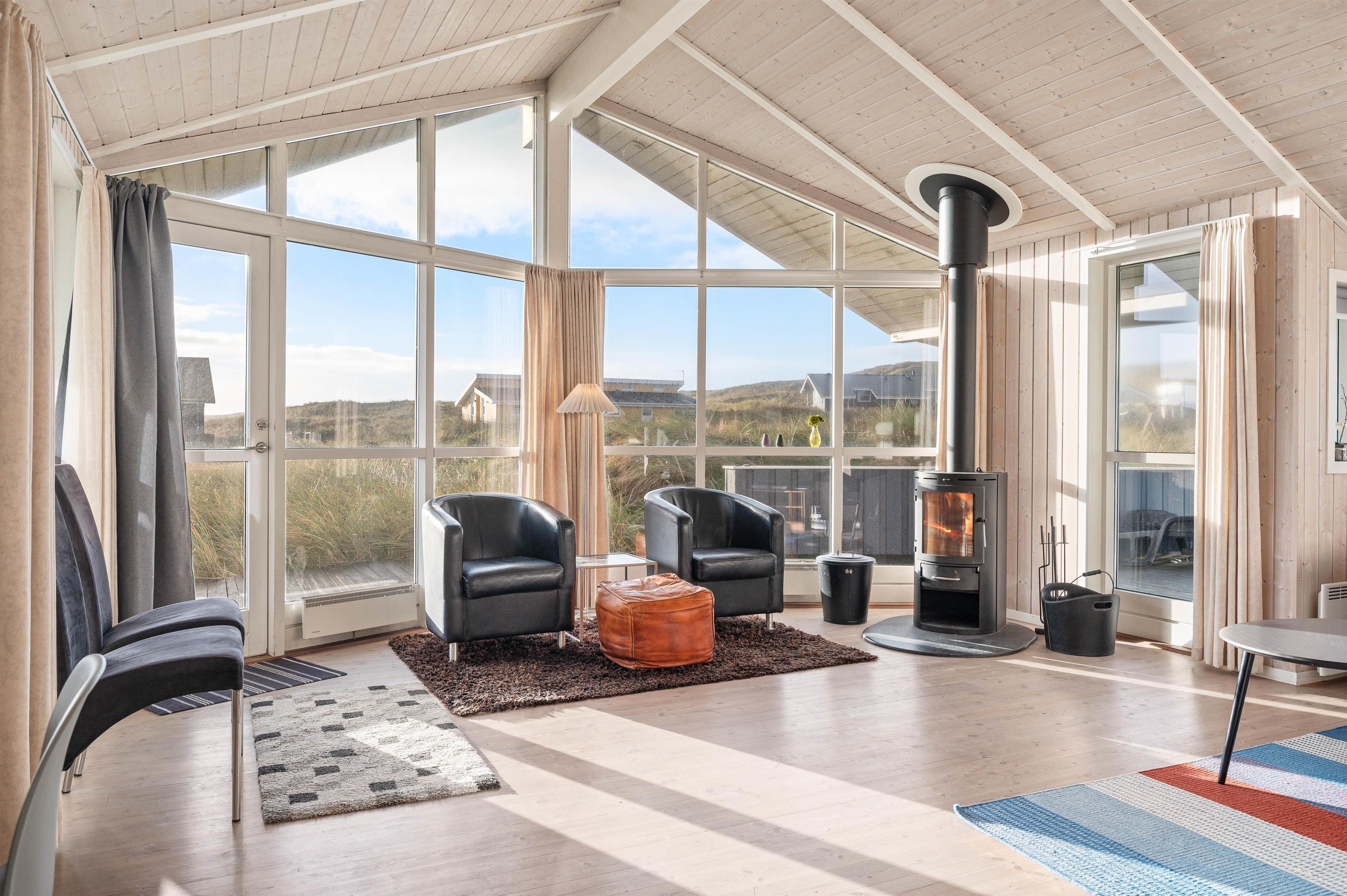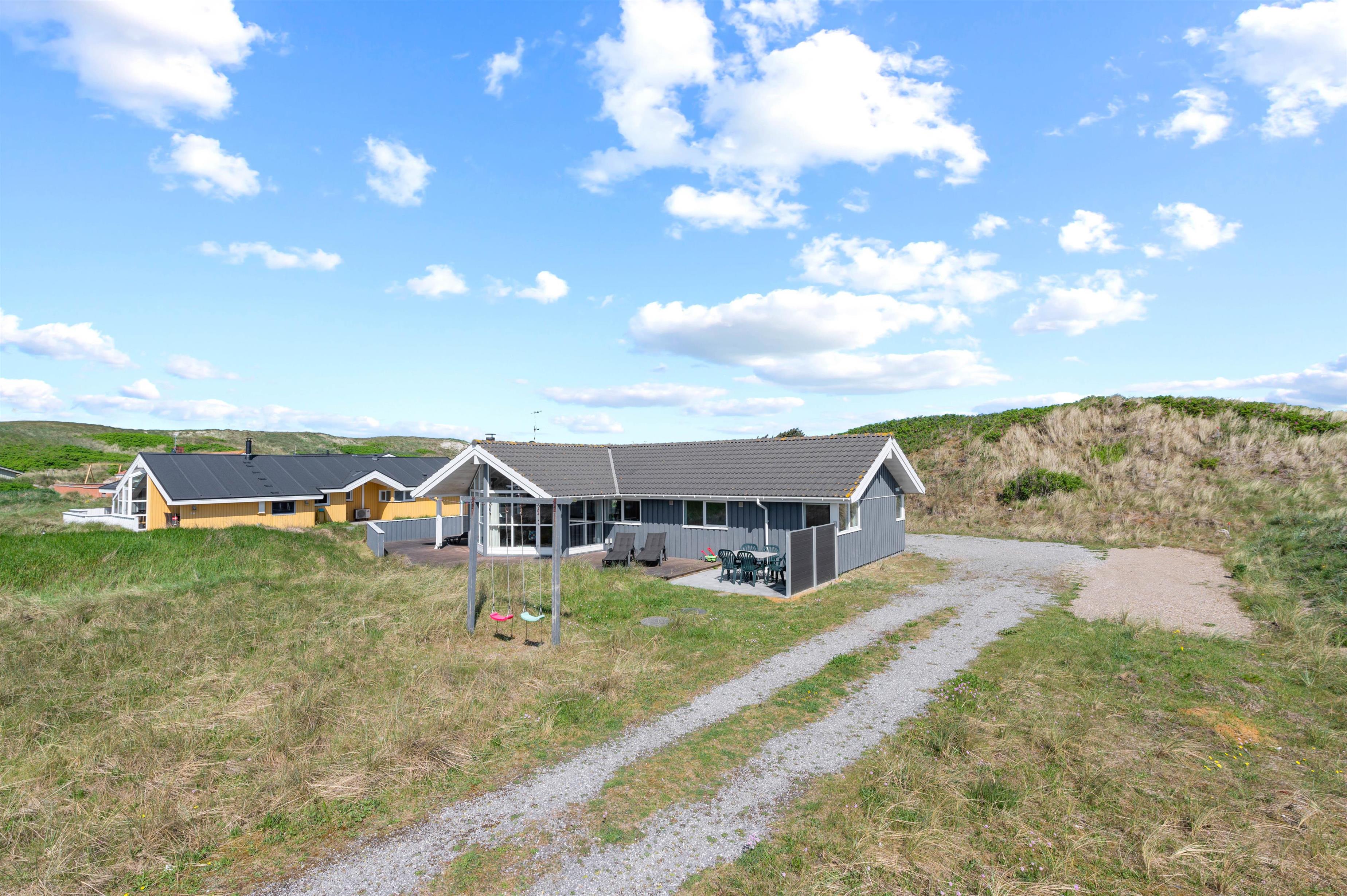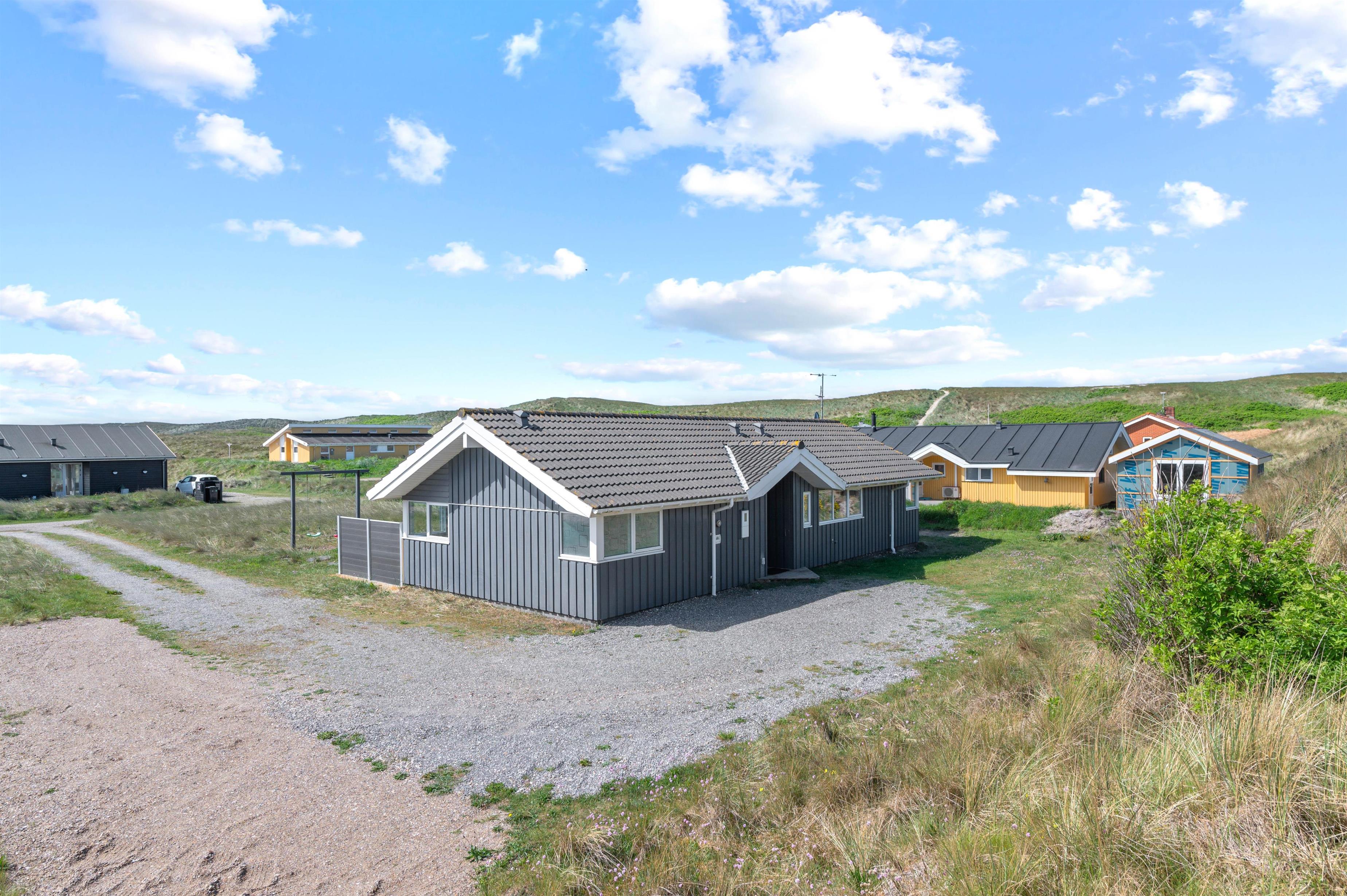 Sommerhuset på Mettes Bjerg 26 har en rigtig god beliggenhed. Her er der nemlig blot 200 meter til Vesterhavet med de smukke hvide sandstrande og det dejlige hav. På den sydvendte terrasse kan I nyde den friske havduft og den smukke natur, der omgiver sommerhuset.