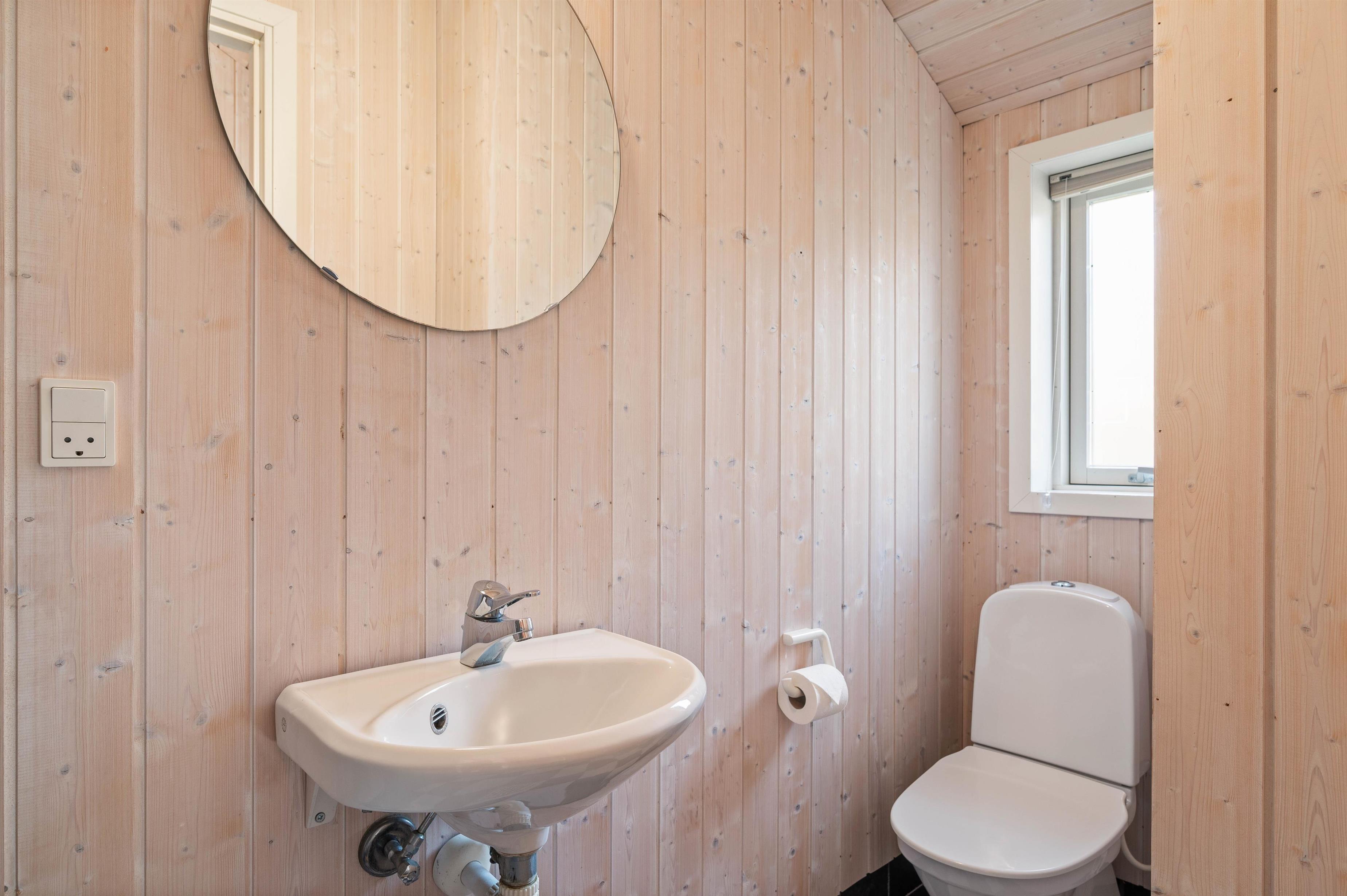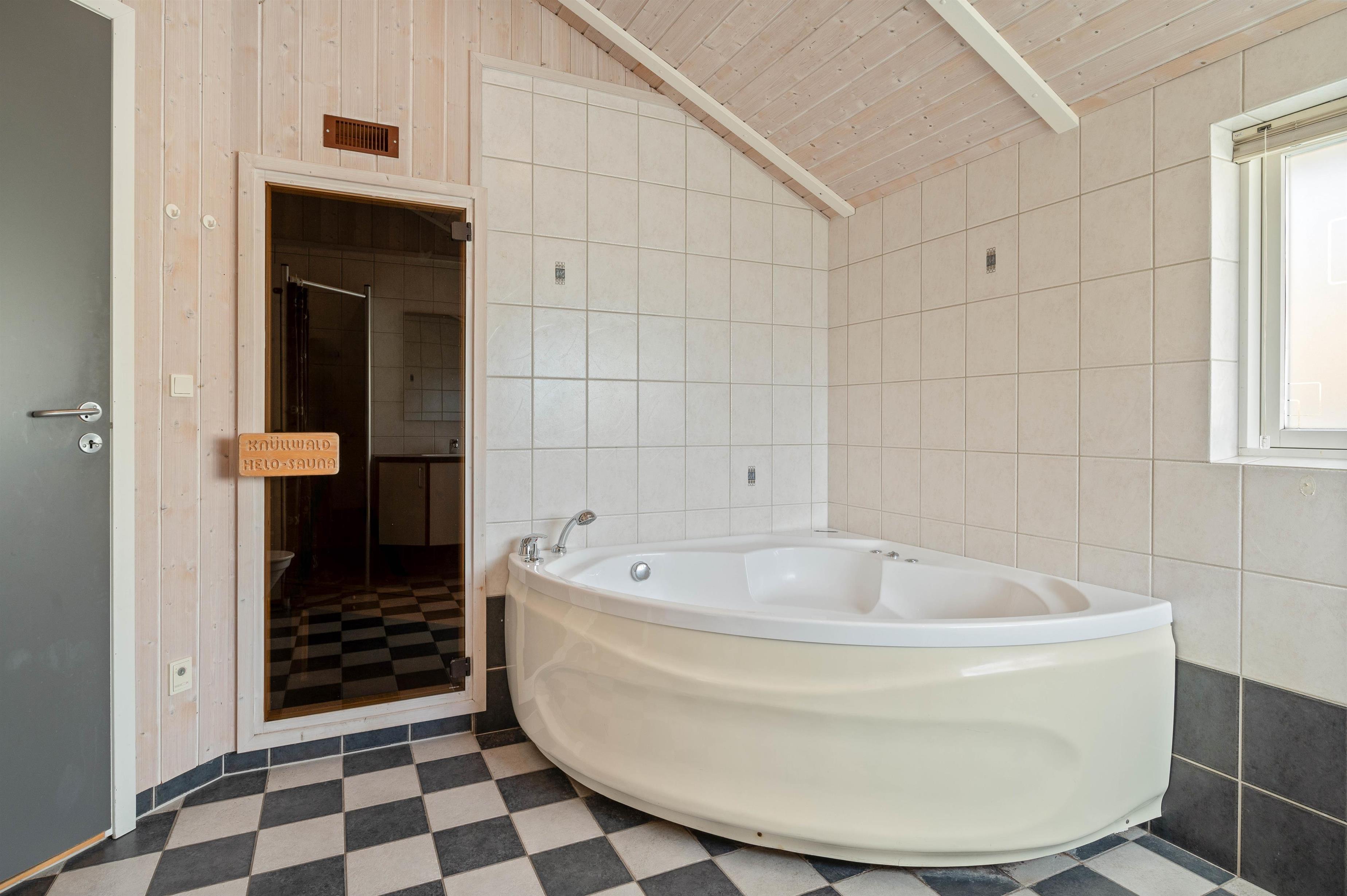 Alle medlemmer af familie vil sætte pris på de gode faciliteter, der er i sommerhus. Her er der nemlig, i tilfælde af dårligt vejr, mulighed for at kunne benytte spabadet og saunaen, hvor I kan nyde lidt ekstra feriehygge. Desuden er der også et gæstetoilet, og begge rum er med gulvvarme.