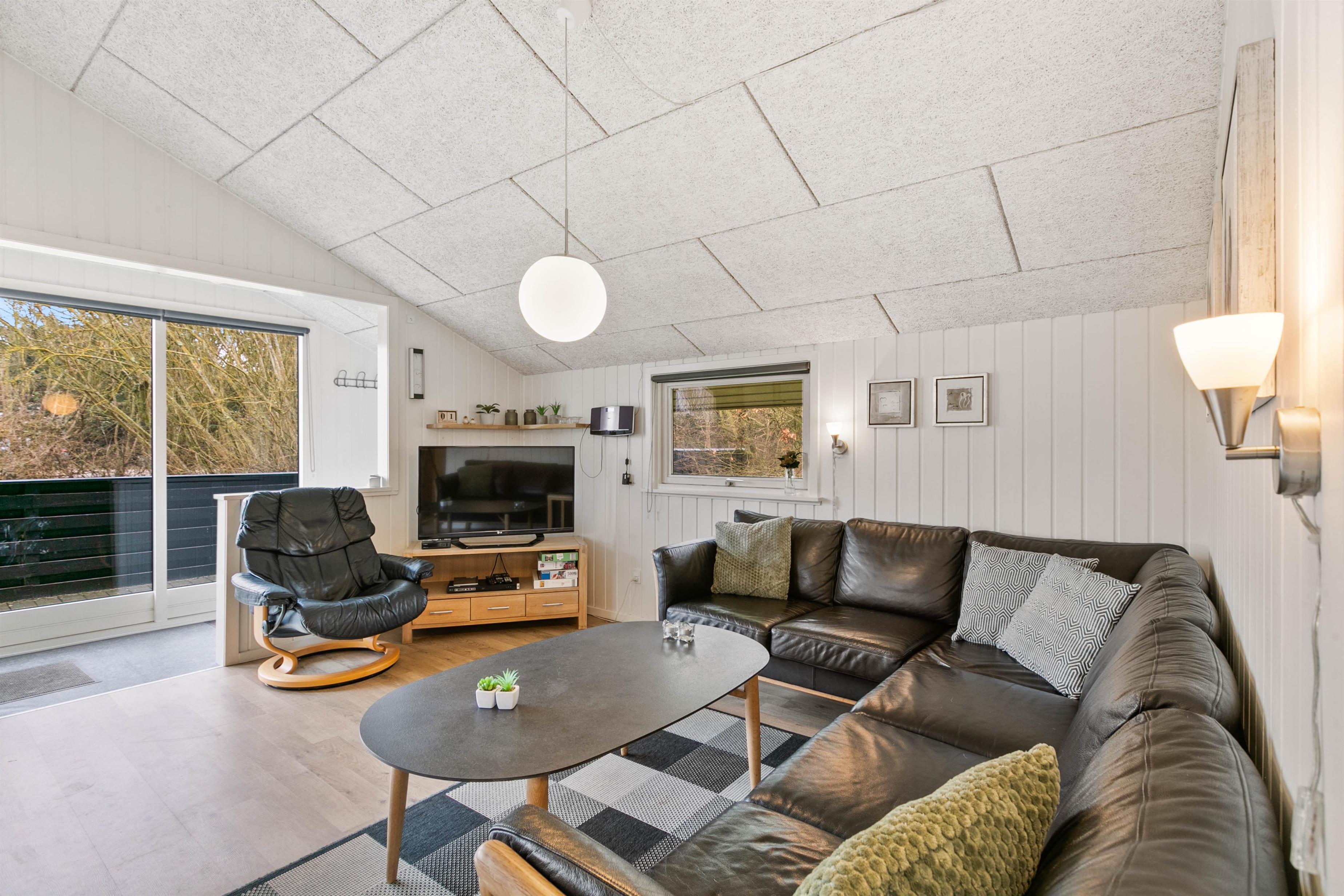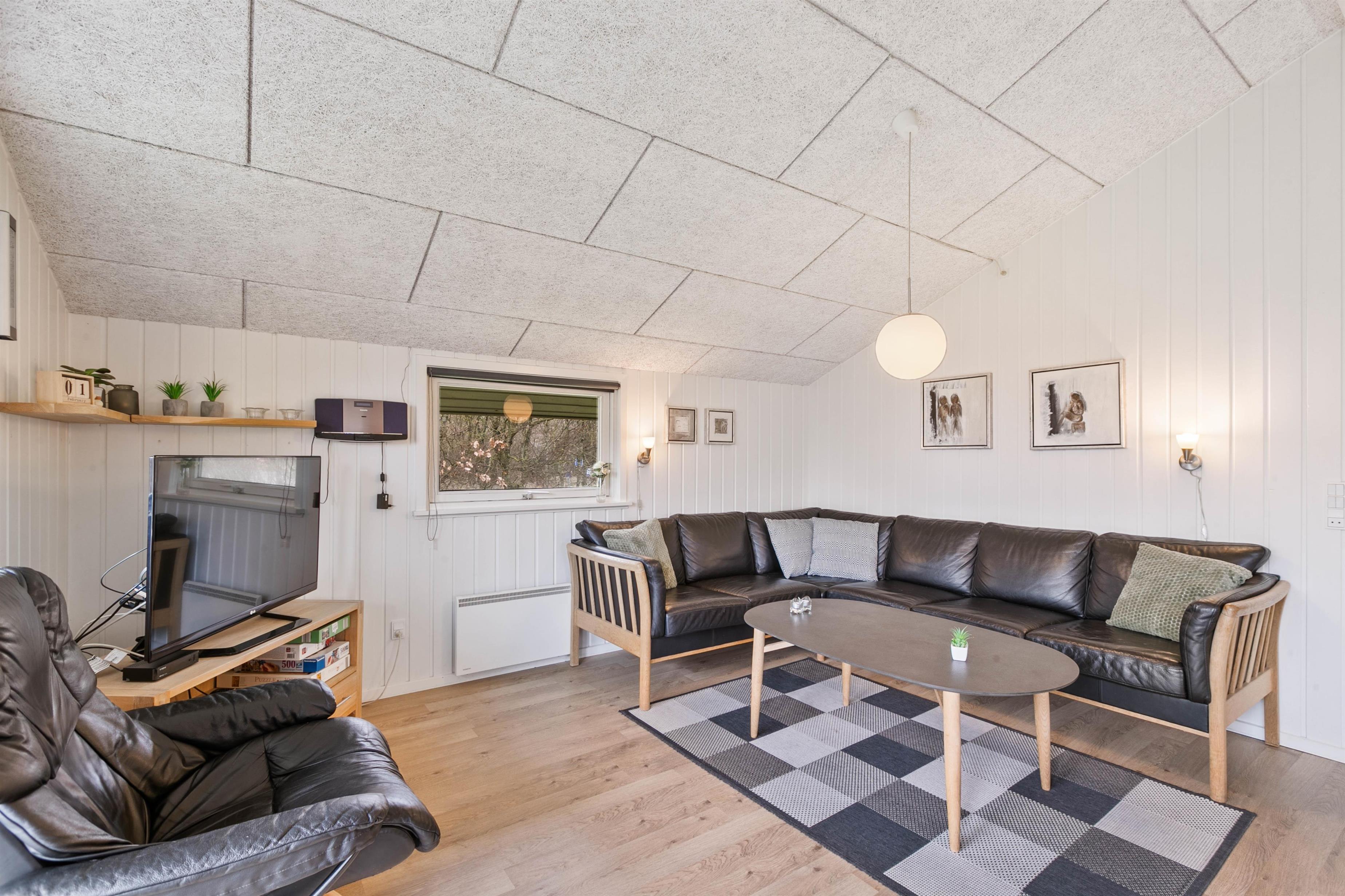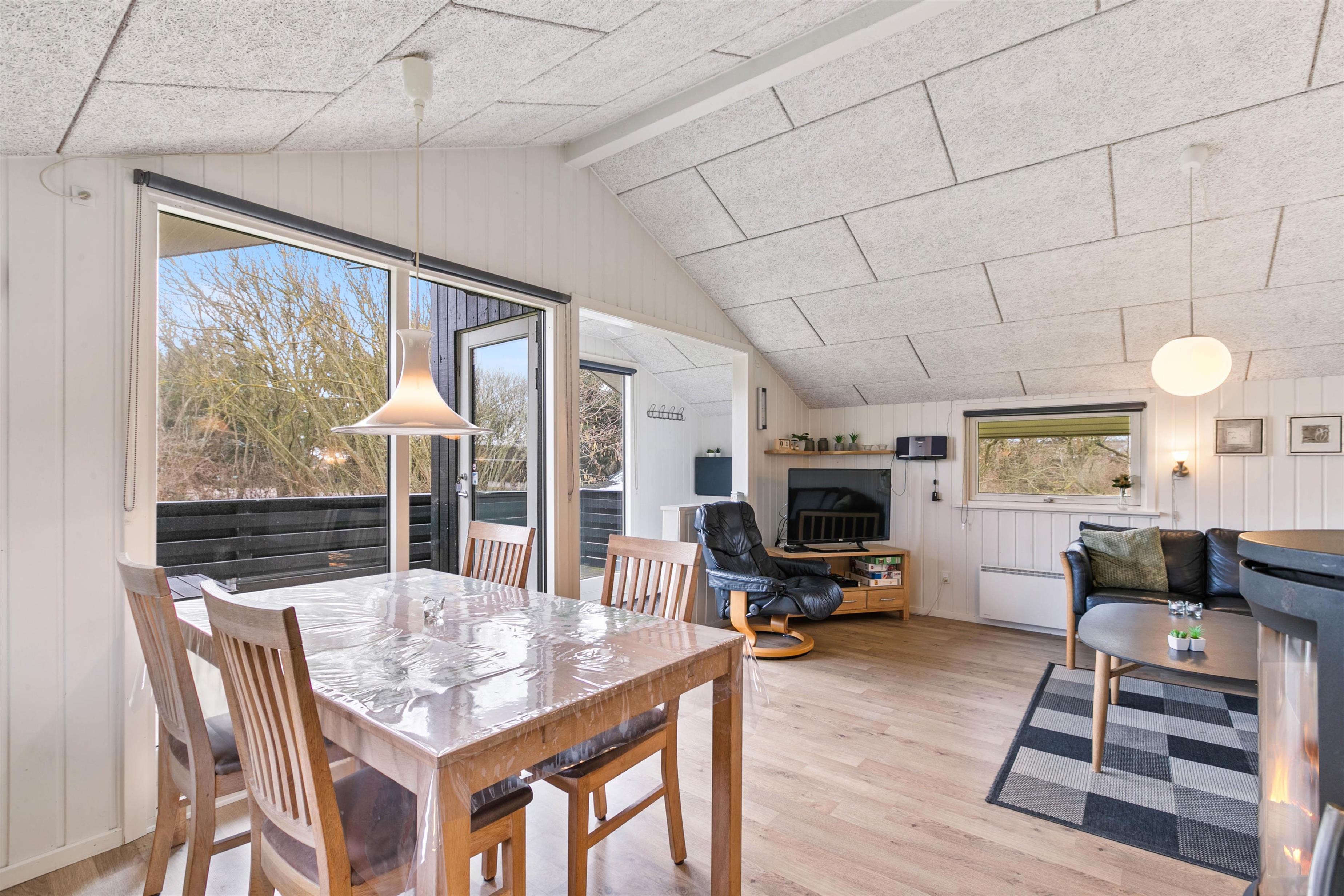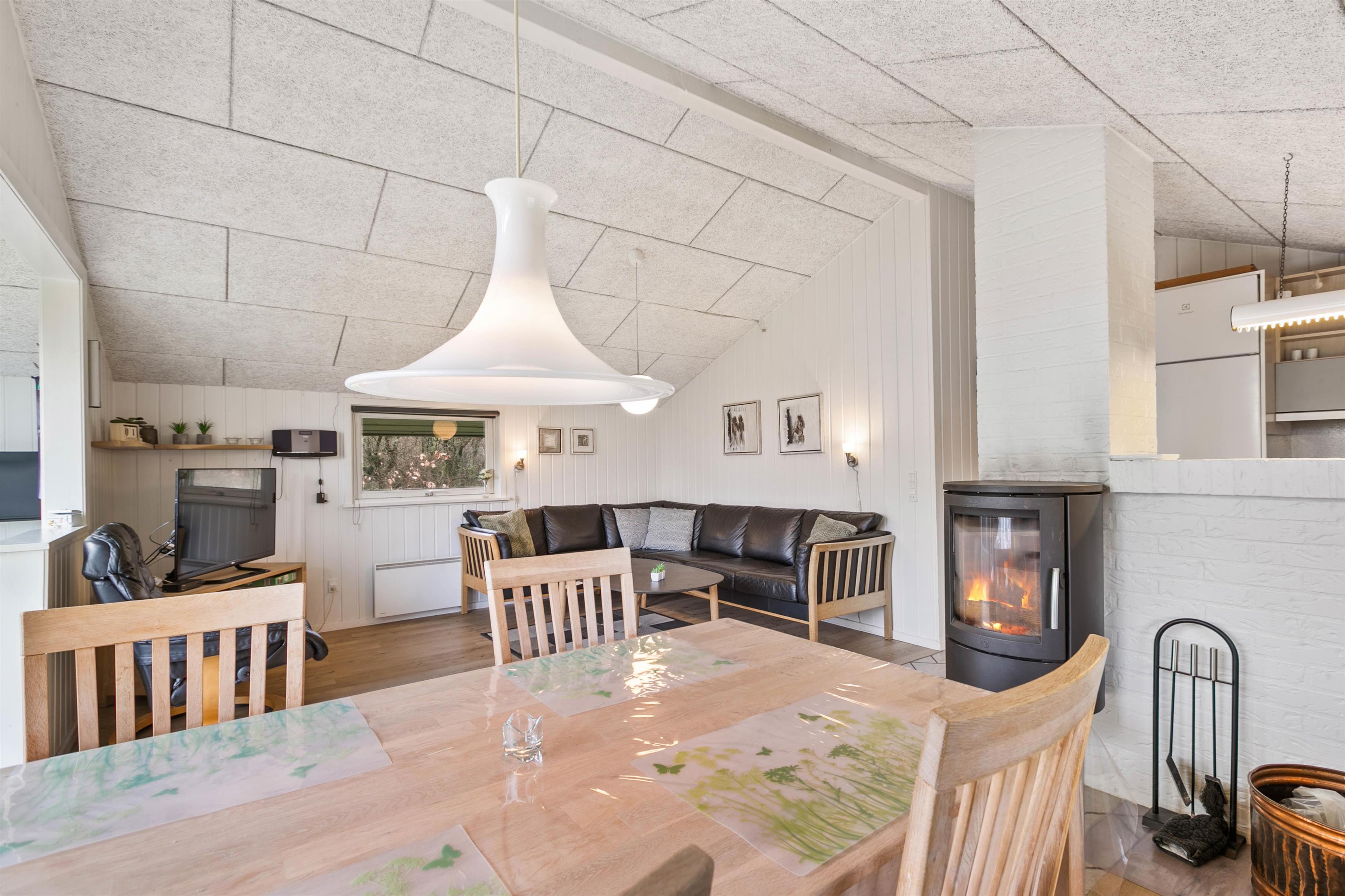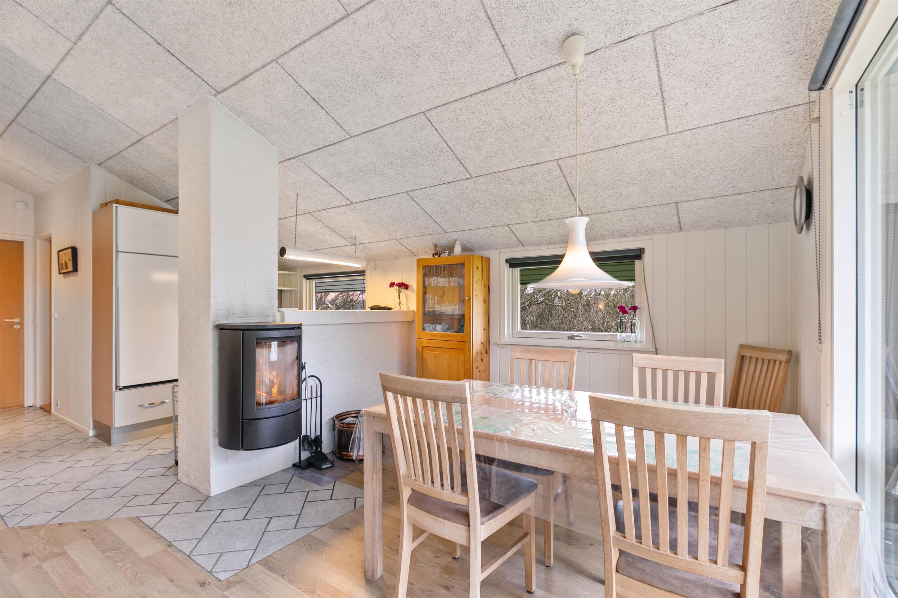 Feriehuset er enkelt og traditionelt, men hyggeligt indrettet, så du blot skal koncentrere dig om at slappe af og nyde ferien. Her er der plads til nærvær og samvær på terrasserne eller foran brændeovnen efter en frisk tur ved stranden. I stuen kan I samles om en hyggelig film eller spille brætspil ved spisebordet, mens brændeovnen knitrer i baggrunden.