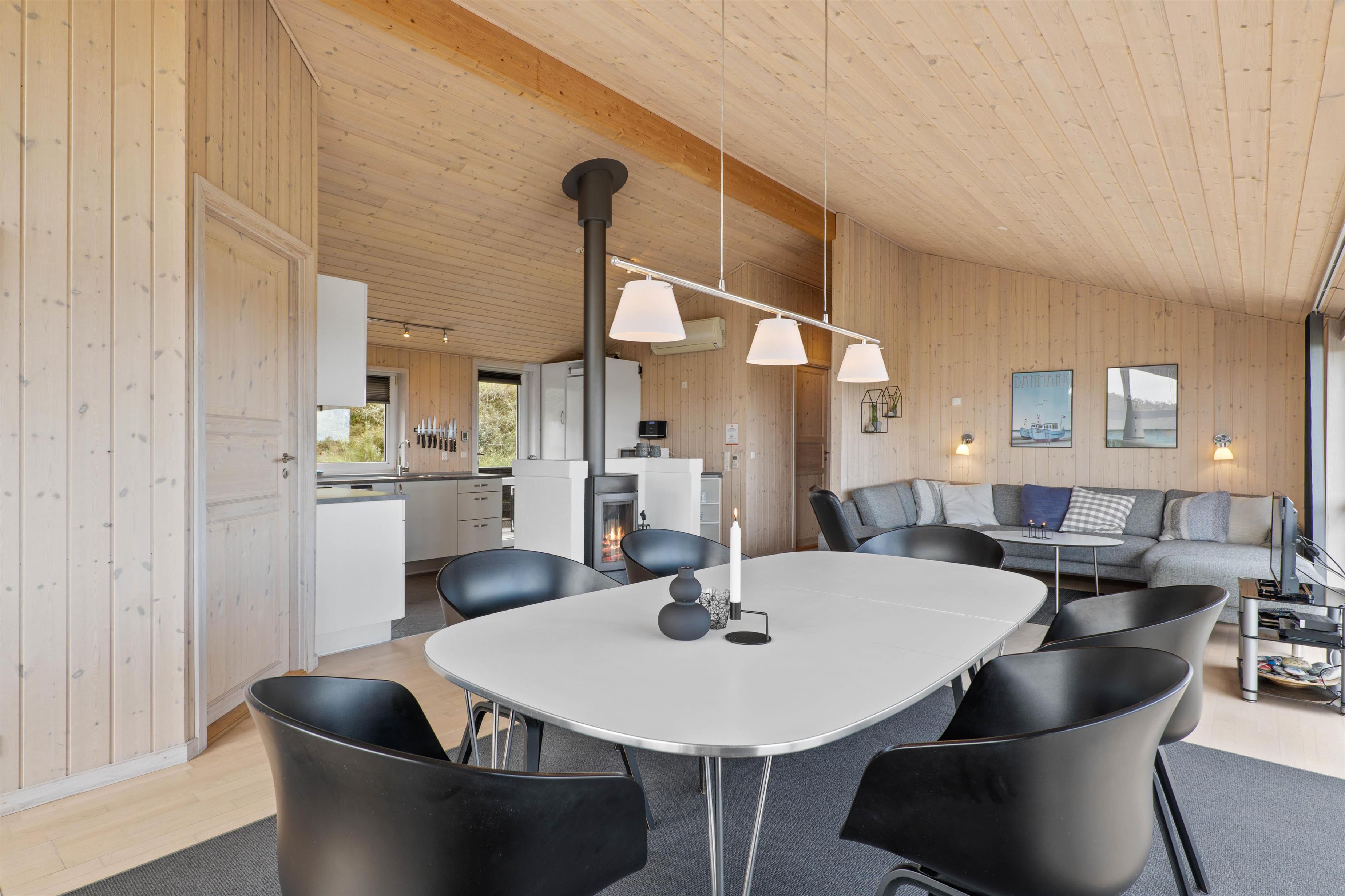 Den typiske skandinaviske hygge byder dig velkommen, så snart du træder ind i dette skønne sommerhus. Det åbne stue- og spiseområde har en bred glasfront, der skaber et flot lysinfald. Den hyggelige sofa inviterer til en afslappende filmaften med hele familien. TV'et med chromecast og dvd- afspilller byder på mange muligheder.