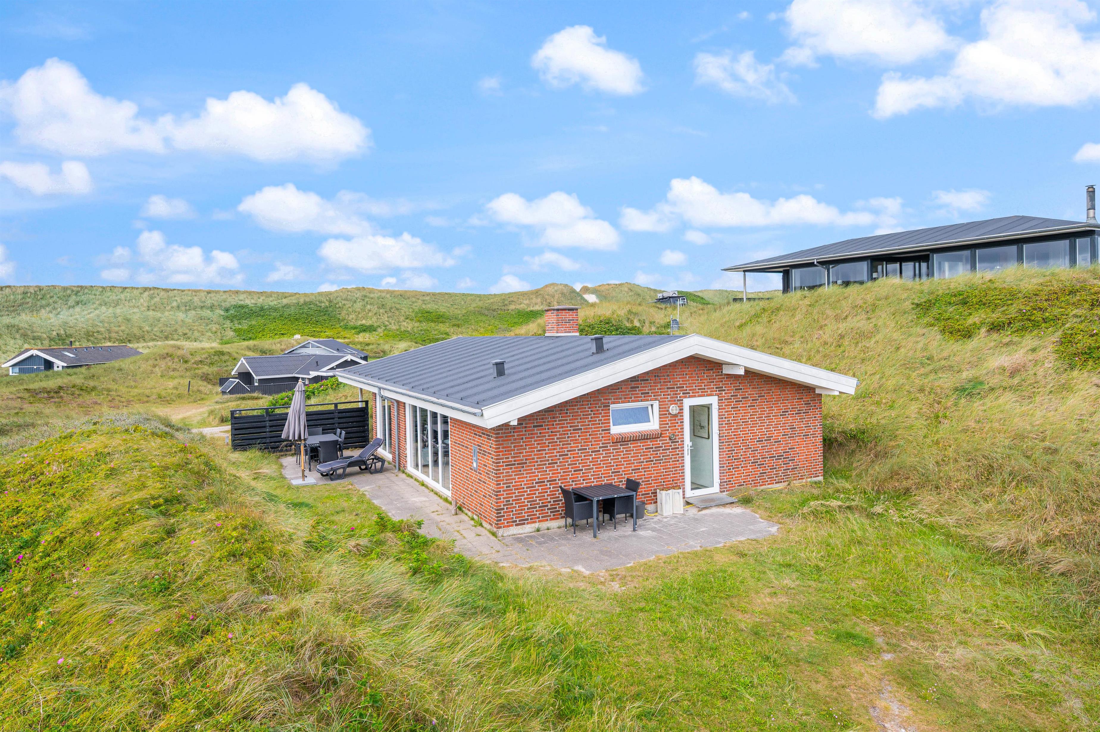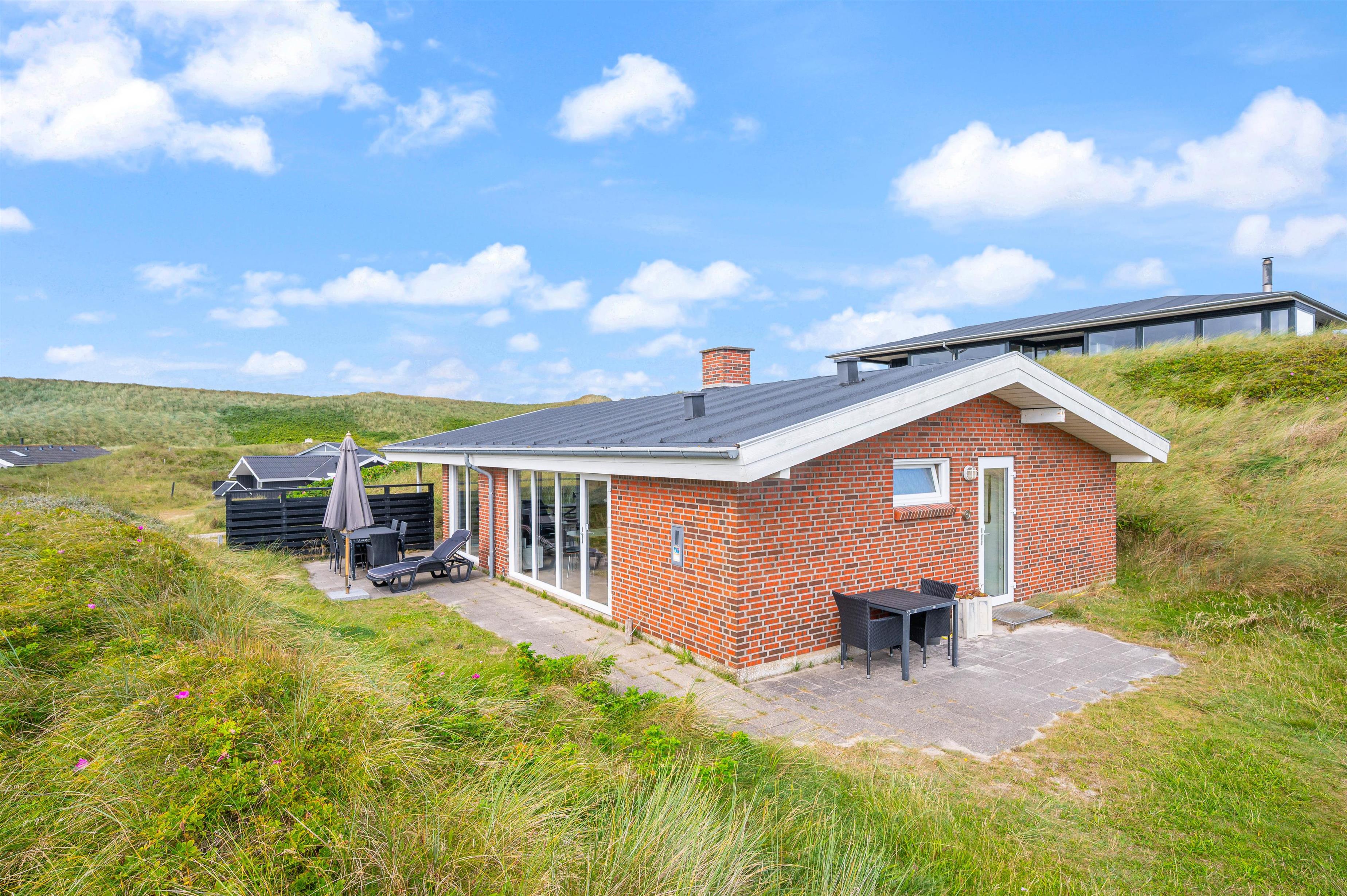 Hyggeligt sommerhus med super beliggenhed tæt på Hvide Sande og stranden. Huset ligger på en kuperet klitgrund i et meget attraktivit feriehusområde. Rundt om huset er der gode afskærmede terrasser, hvor familien kan samles og nyde det smukke uderum og sommerens sol.