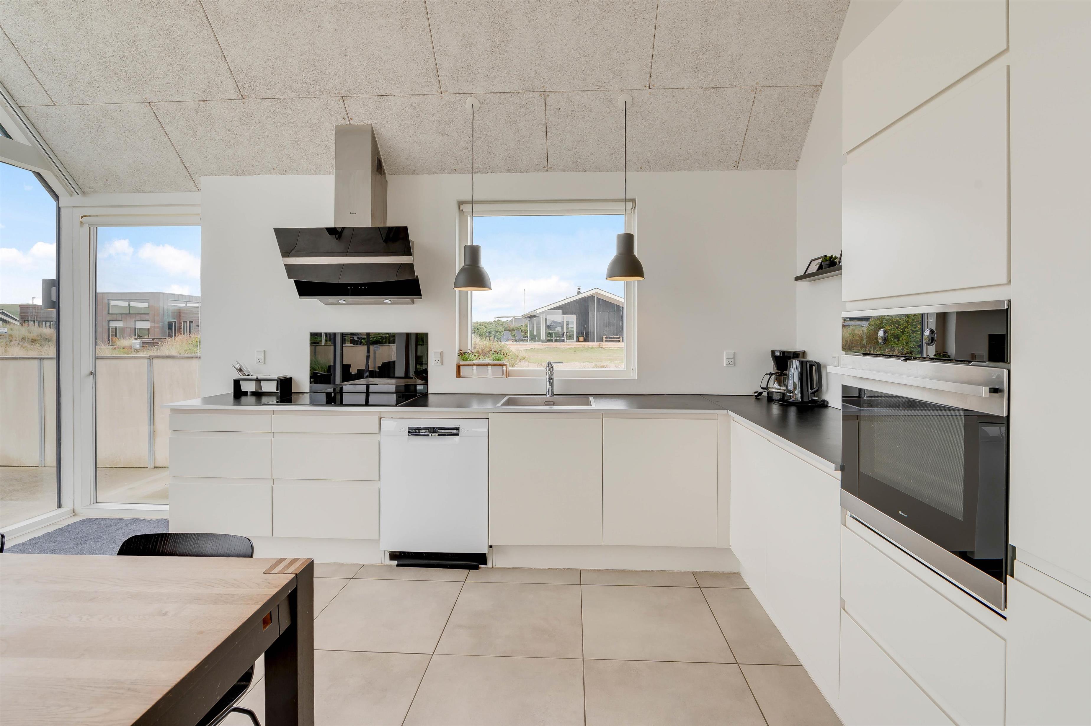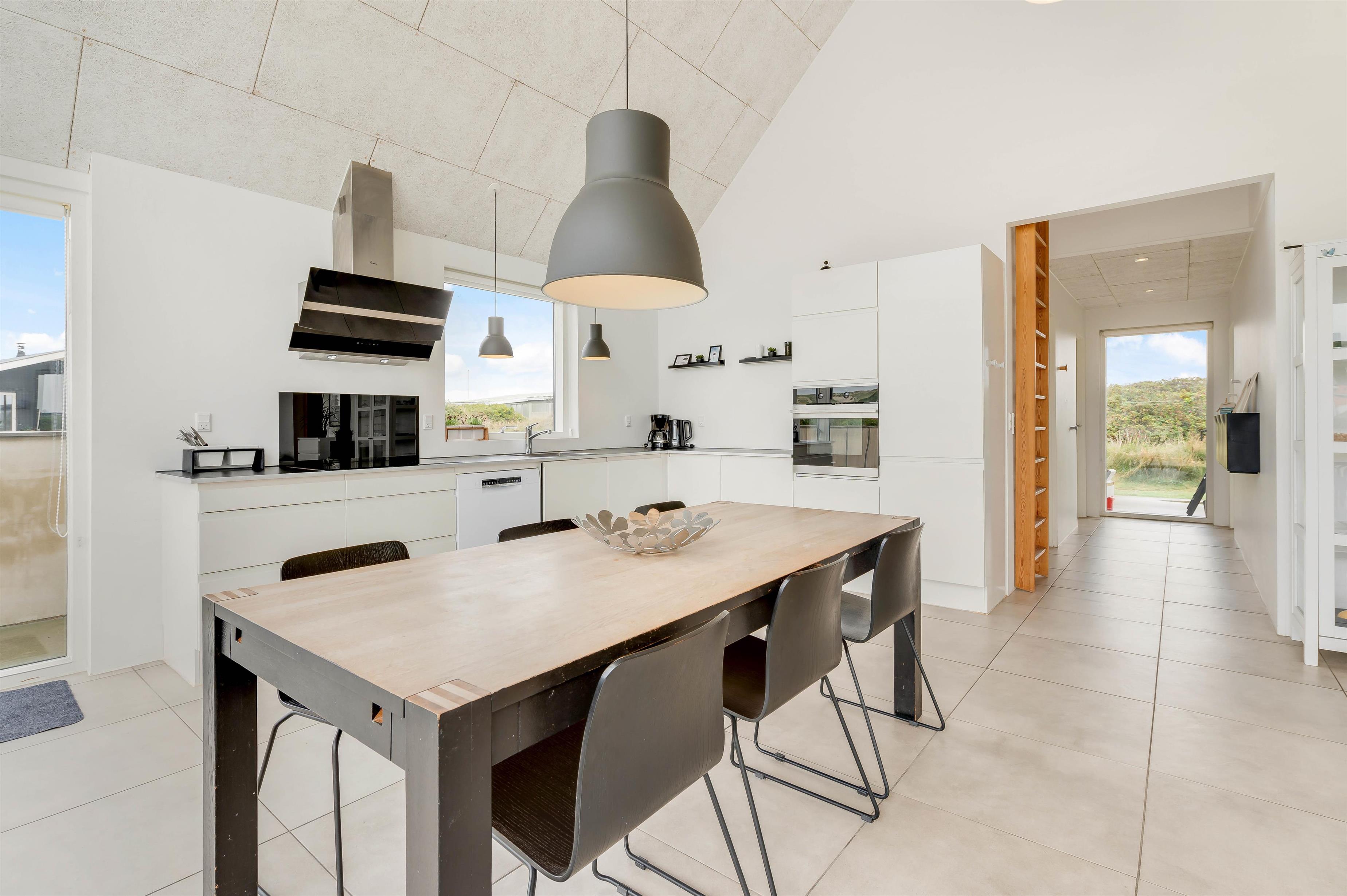 Det skønne sommerhus beliggende i Årgab, blev bygget i 2015 i en moderne og minimalistisk arkitektur. Her er der alle de nødvendige faciliteter og lidt mere til, for at sikre at I får en dejlig ferie. Huset er indrettet moderne med en sans for detaljerne, men har stadig et hyggeligt udtryk. Køkkenalrummet er placeret med store vinduespartier mod vest, som giver et skønt lysindfald i rummet. Her finder I et funktionelt køkken, og en komfortabel stue hvor I kan høre musik fra bluetooth højtaleren.