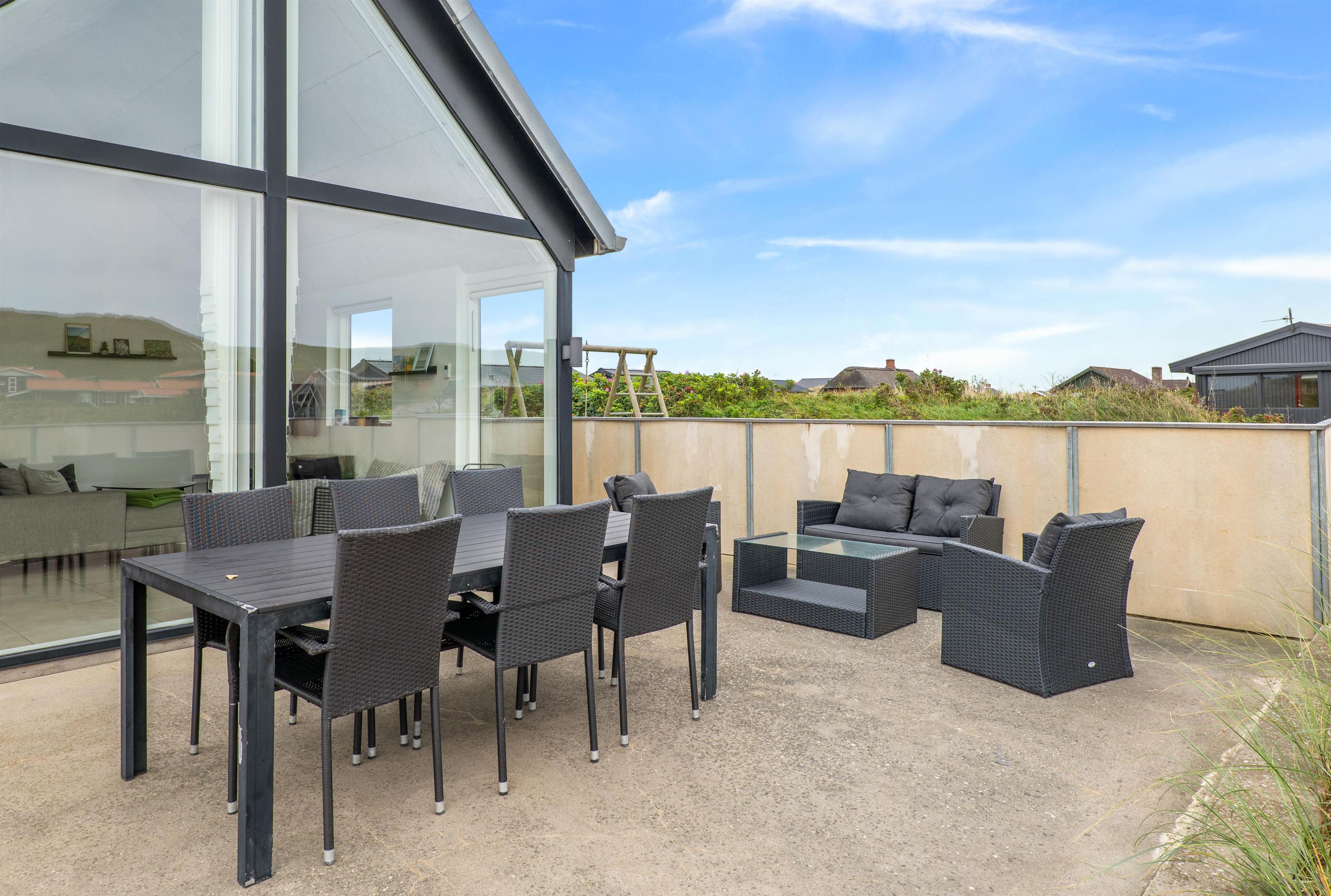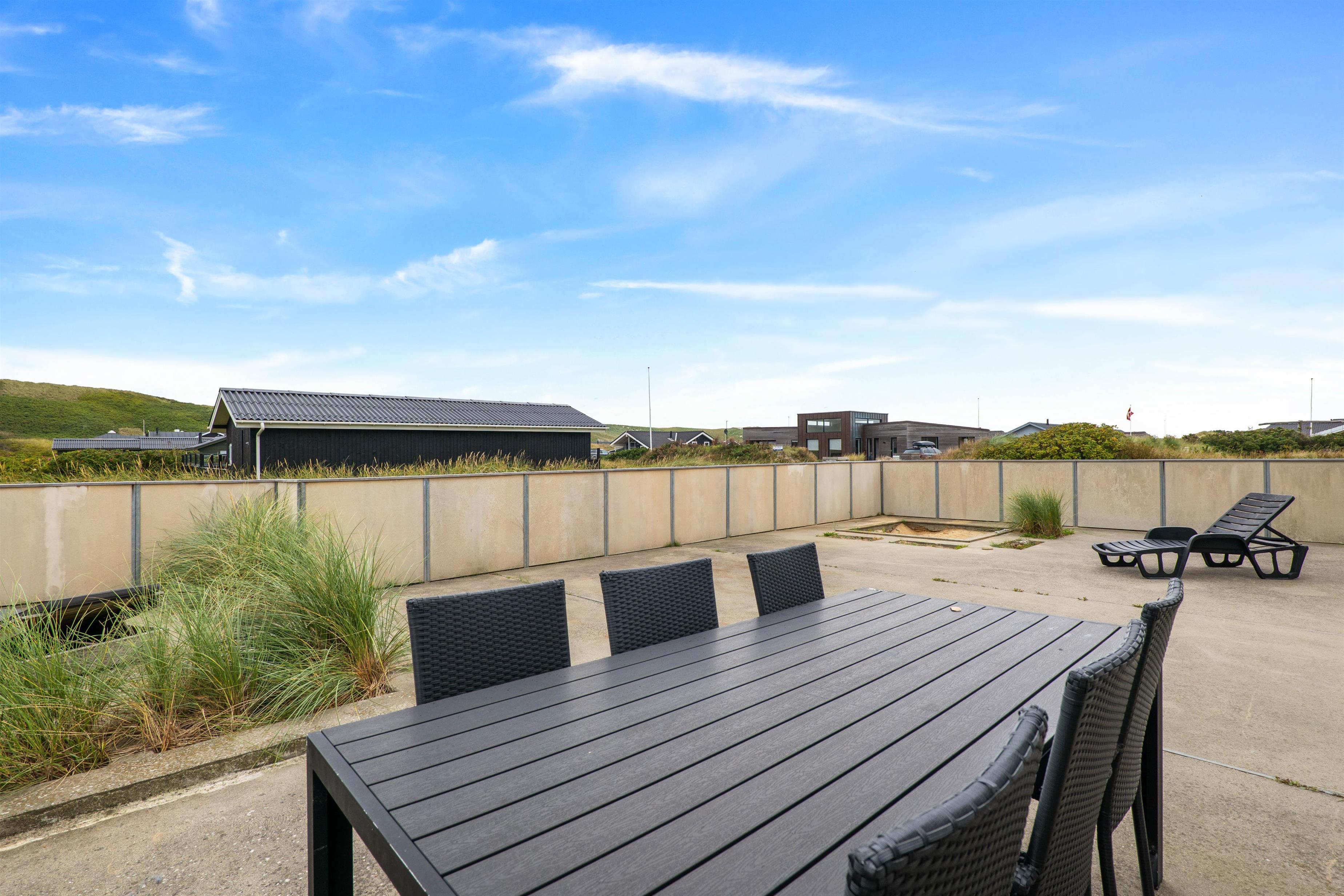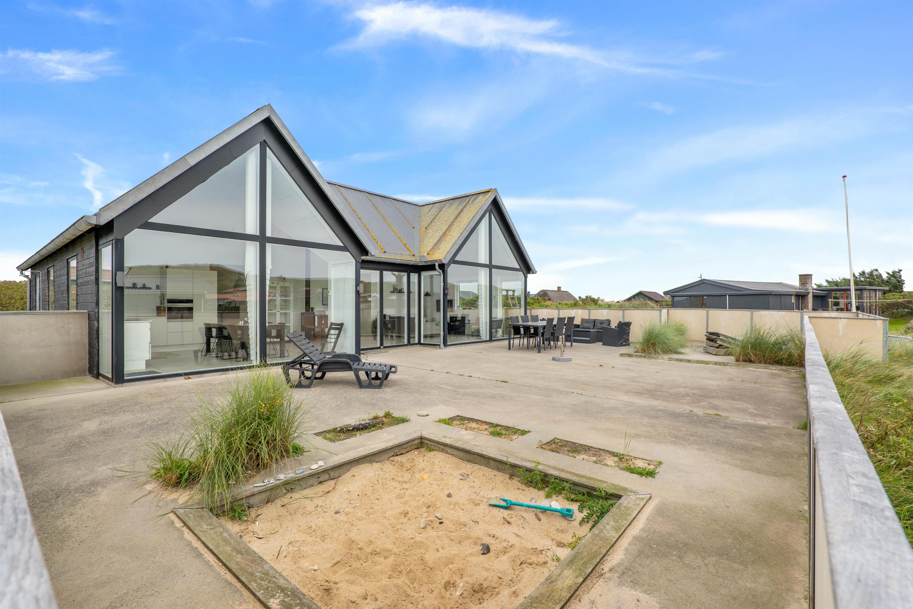 Her finder I også en stor lukket terrasse, som er perfekt til familier med hunde eller små børn som ikke skal løbe for langt væk. Her er der potentiale for at have en hyggelig sommerdag. I kan nyde solens stråler i solvognene, mens børnene er underholdt i sandkassen. Eller I kan lave et lækkert grillmåltid til aftensmad på grillen.