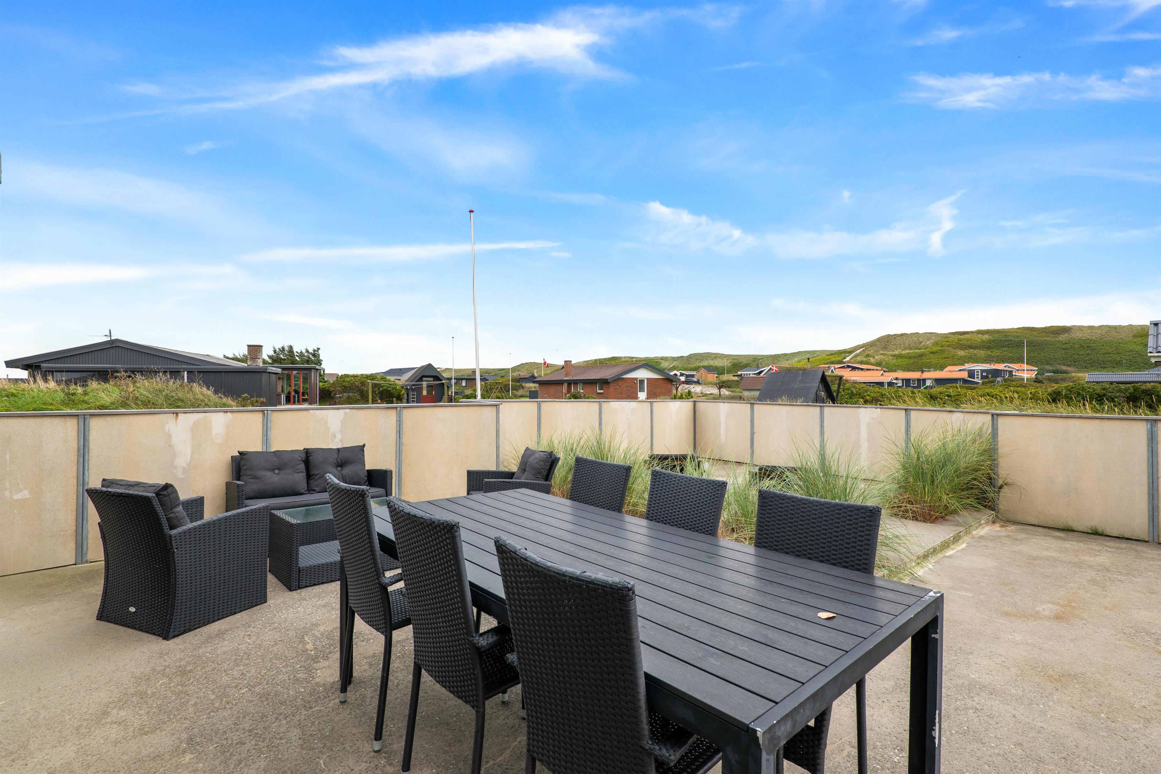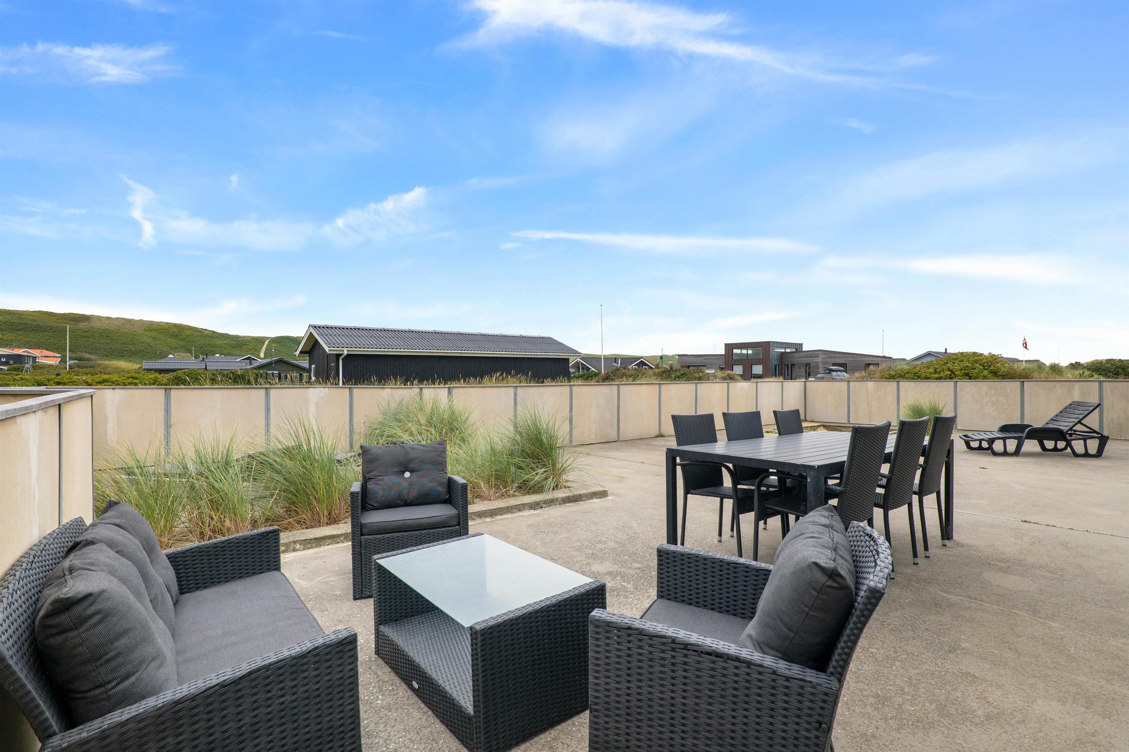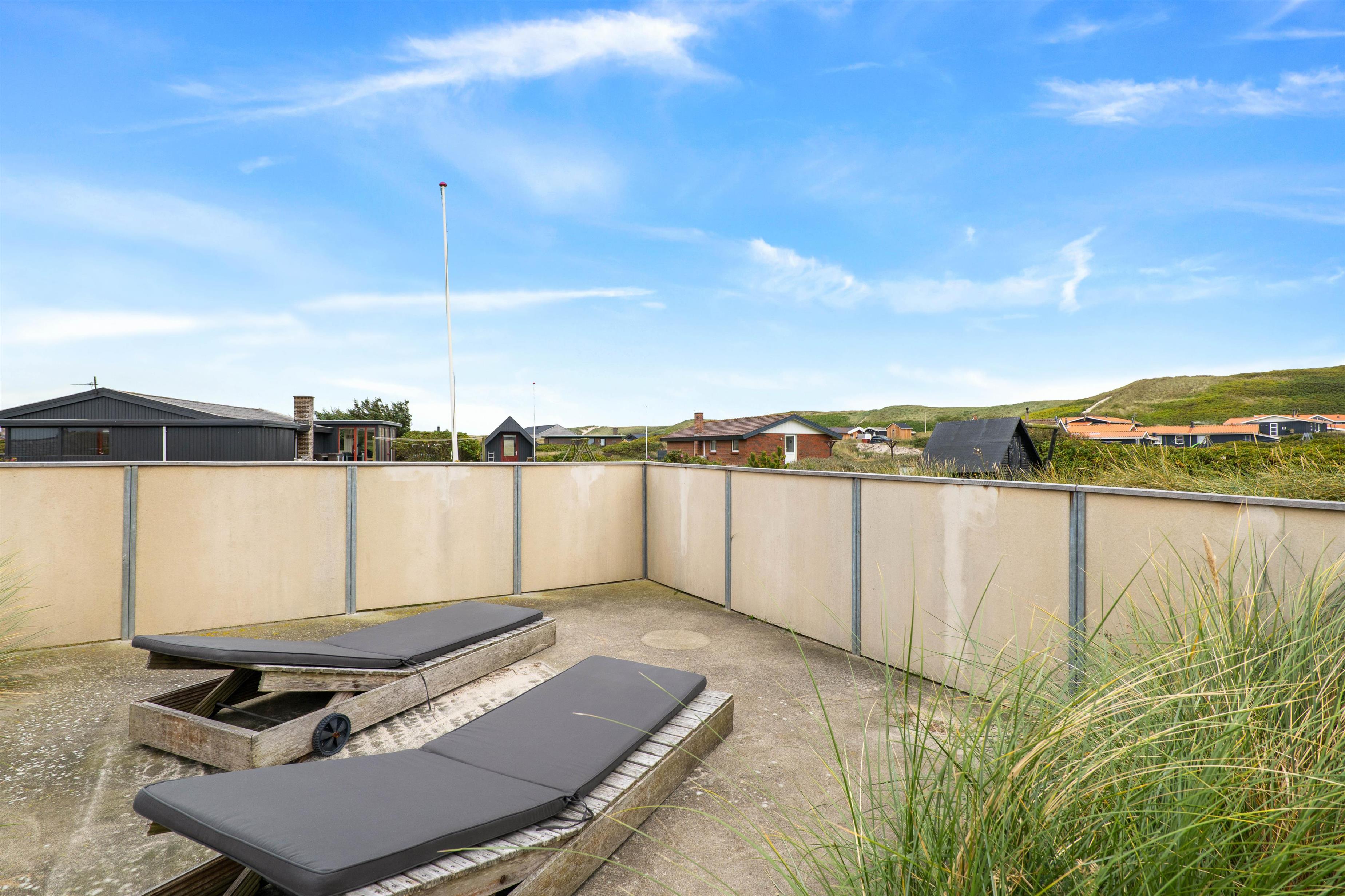 Her finder I også en stor lukket terrasse, som er perfekt til familier med hunde eller små børn som ikke skal løbe for langt væk. Her er der potentiale for at have en hyggelig sommerdag. I kan nyde solens stråler i solvognene, mens børnene er underholdt i sandkassen. Eller I kan lave et lækkert grillmåltid til aftensmad på grillen.