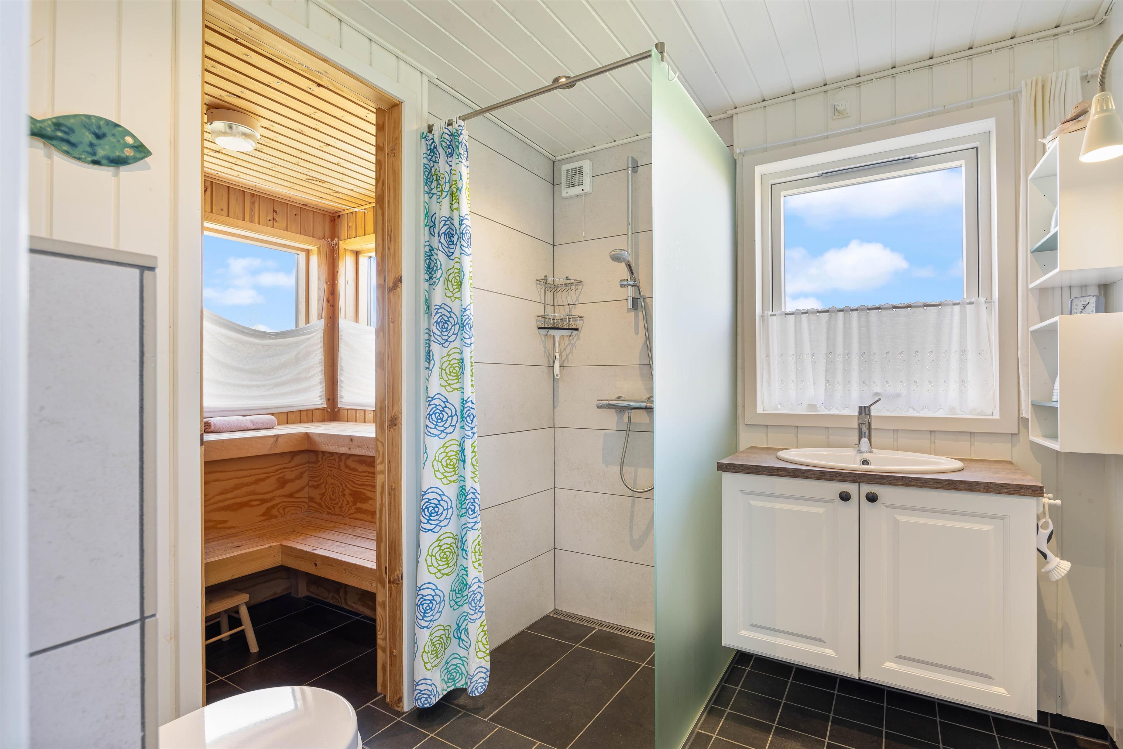 De 5 sovepladser fordeler sig på 3 soveværelser, hvor I kan finde til ro efter en dejlig dag. Derudover er der to rummelige badeværelser og i forbindelse med det ene badeværelse, er der en sauna med udsigt til klitlandskabet, hvor I kan nyde roen.