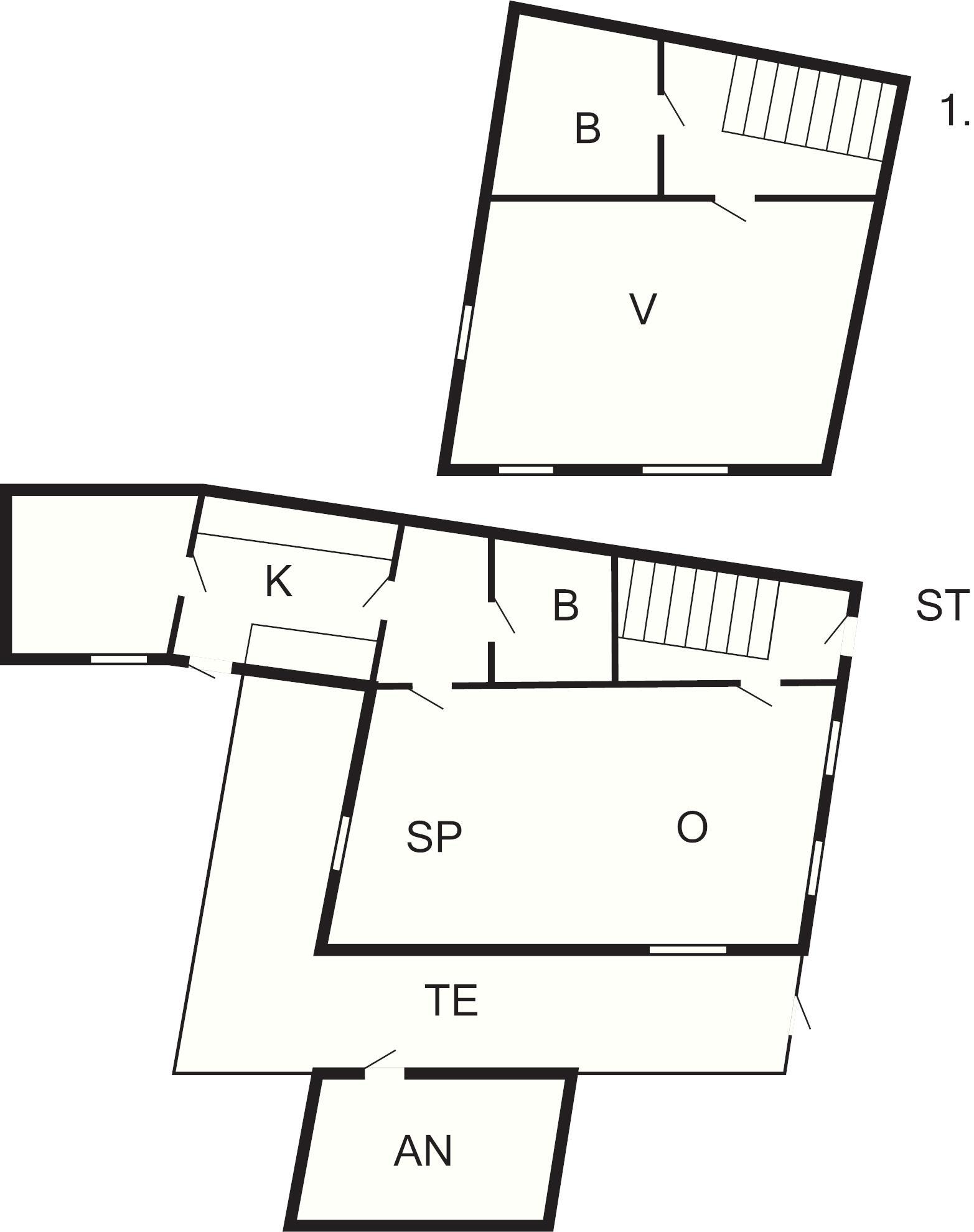 1 Opholdsstue: (1), brændeovn, radio, dvd-afspiller, tv, kabel-tv, høj stol