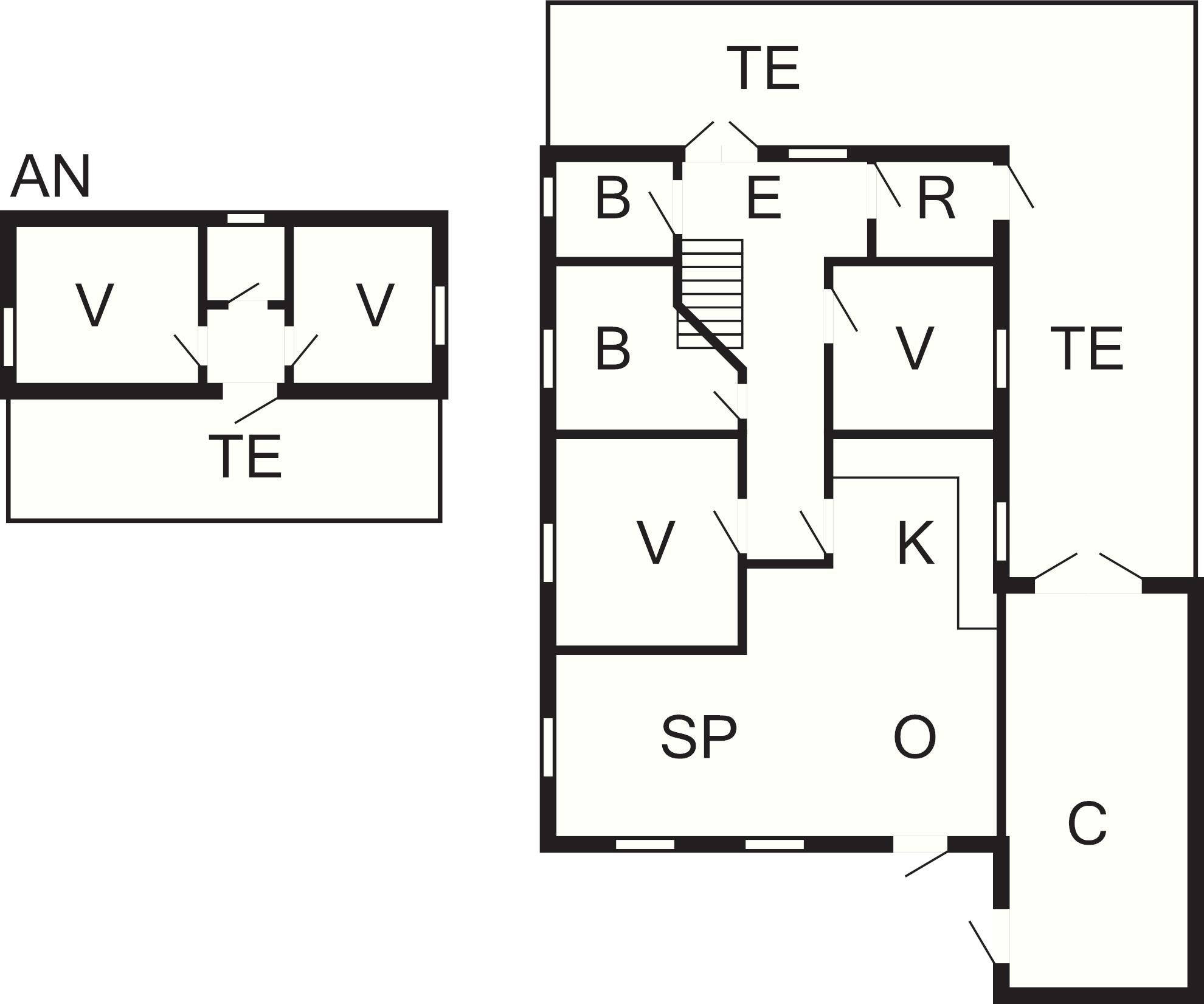 1 Anneks: (2S), wc, håndvask