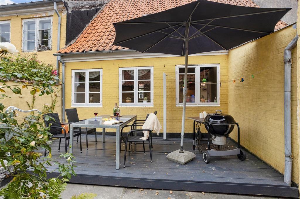 Udgang til lukket solgård samt anlagt have på 180 m2. Havemøbler. Grill. Internet. Barneseng samt barnestol.